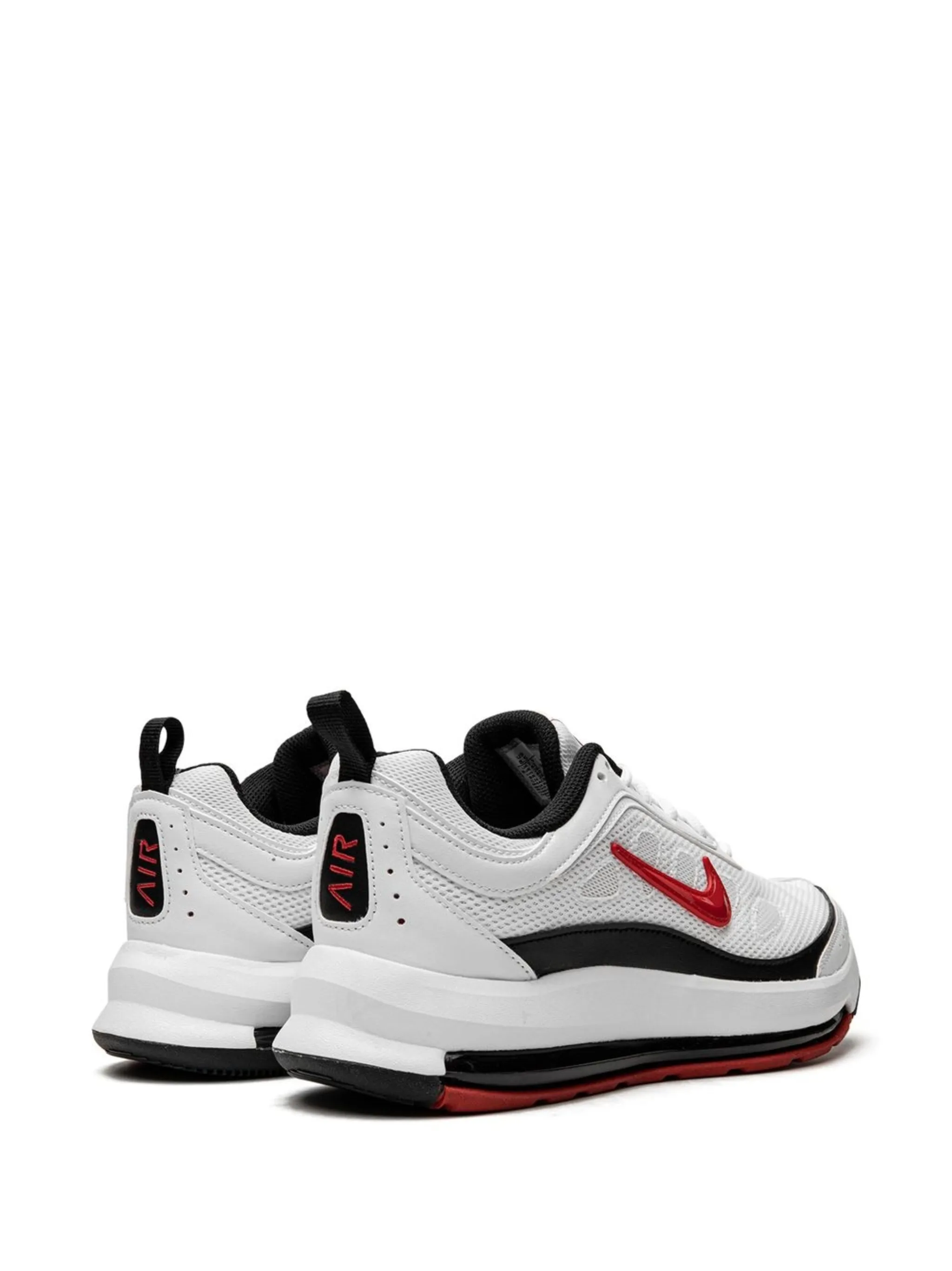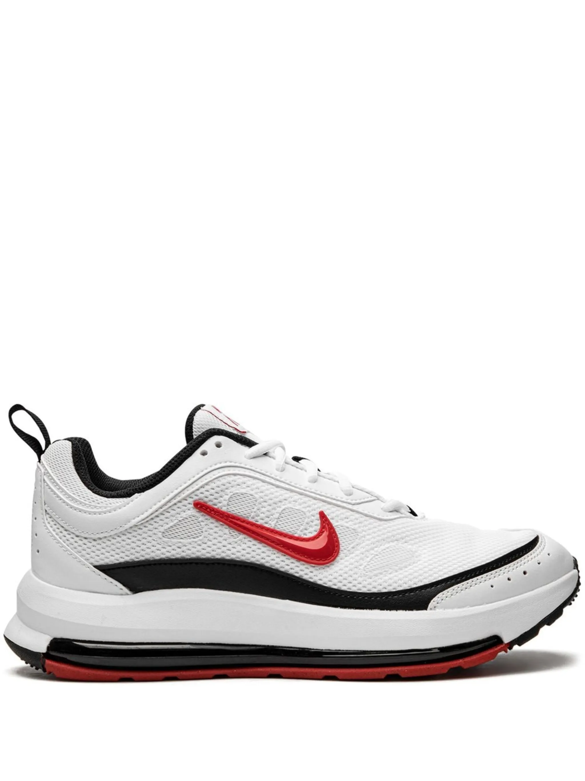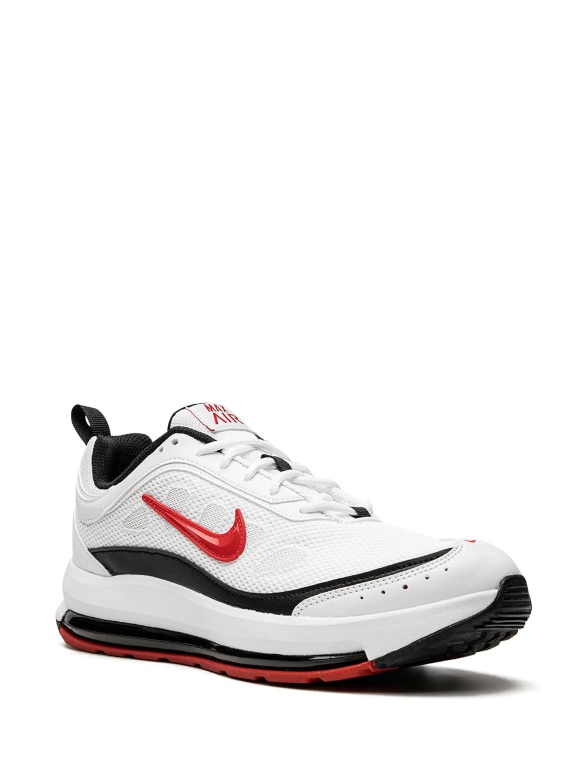 Белый/черный, красный, кожа, логотип Nike Swoosh, сетка, принт с логотипом сзади, петля для подтягивания сзади, нашивка с логотипом на язычке, закругленный носок, шнуровка спереди и подошва Air Max.
