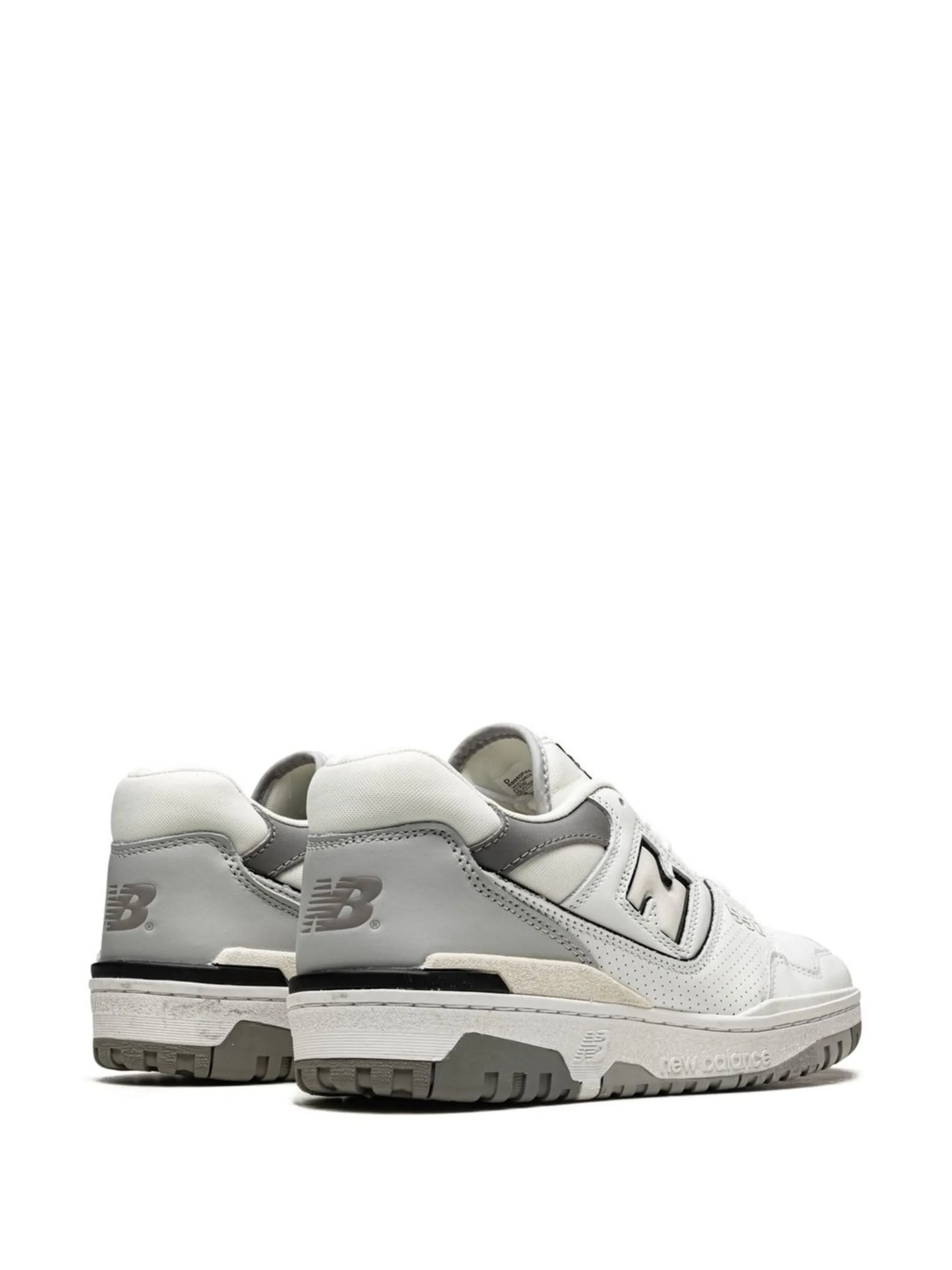 Белый, серый, телячья кожа, вставки, перфорация, нашивка с логотипом сбоку, принт с логотипом сзади, язычок с логотипом, закругленный носок, шнуровка спереди, стелька с логотипом и плоская резиновая подошва.