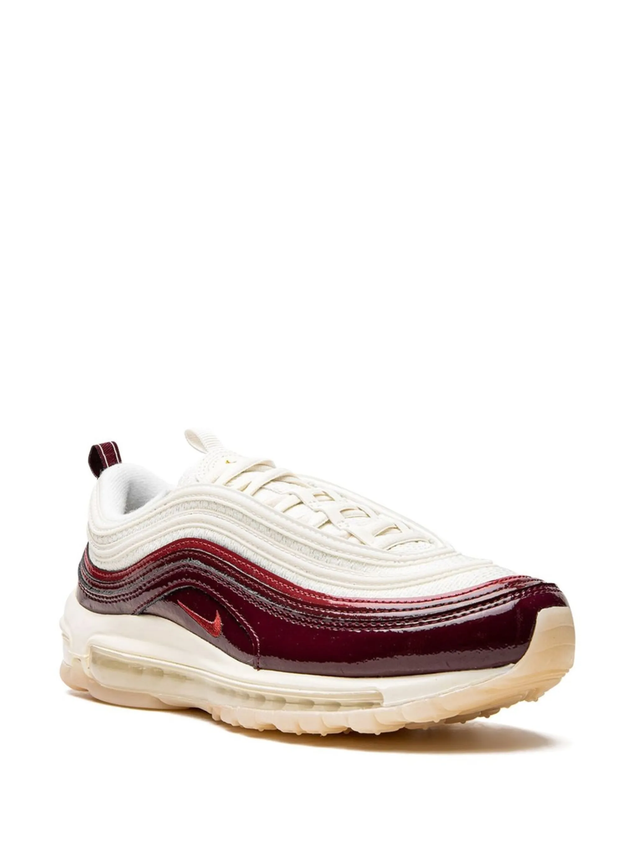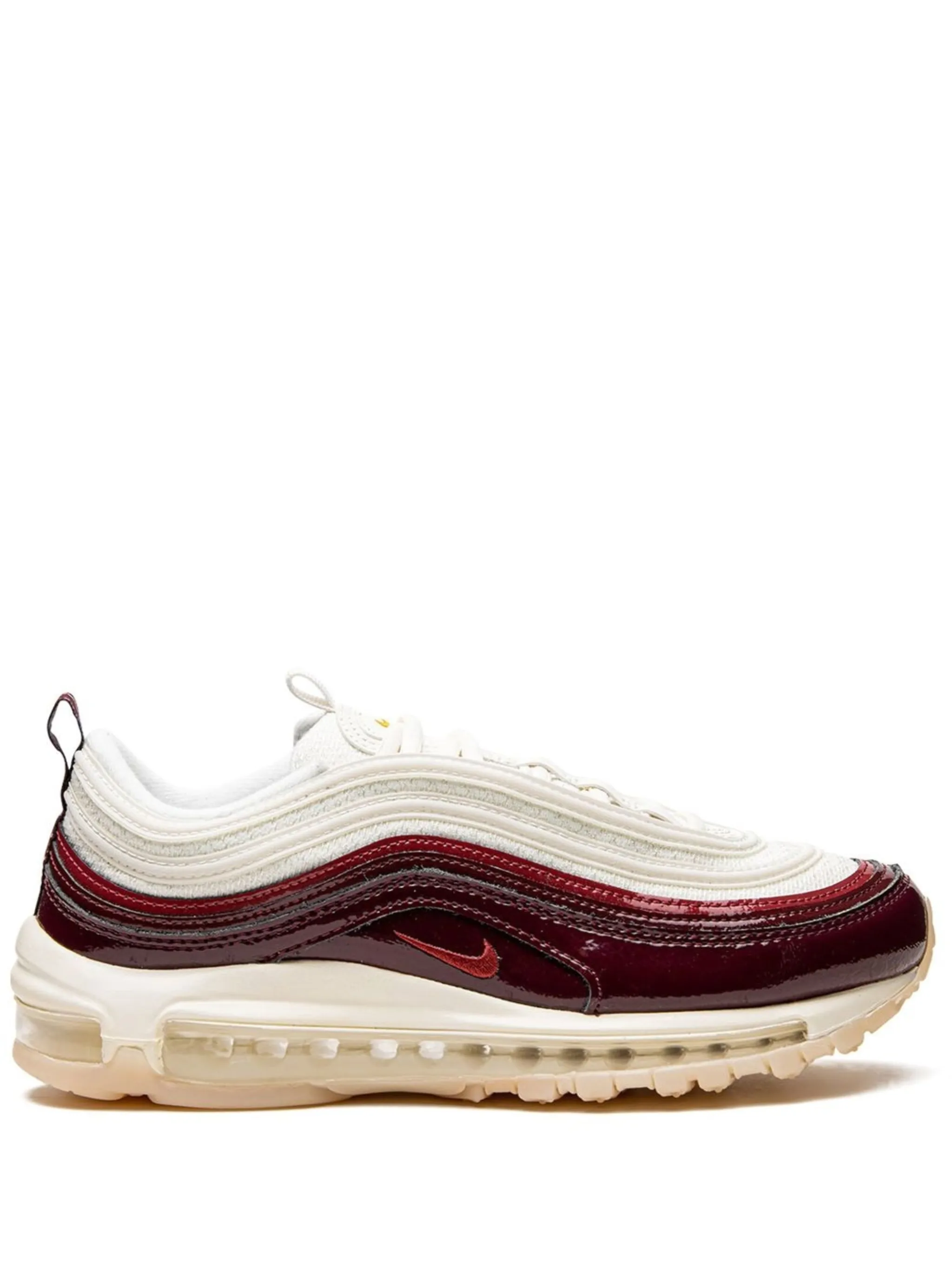 Бордовый, кремово-белый, кожа, логотип Nike Swoosh, закругленный носок, шнуровка спереди, двойная петля для подтягивания, стелька с логотипом и подошва Air Max.
