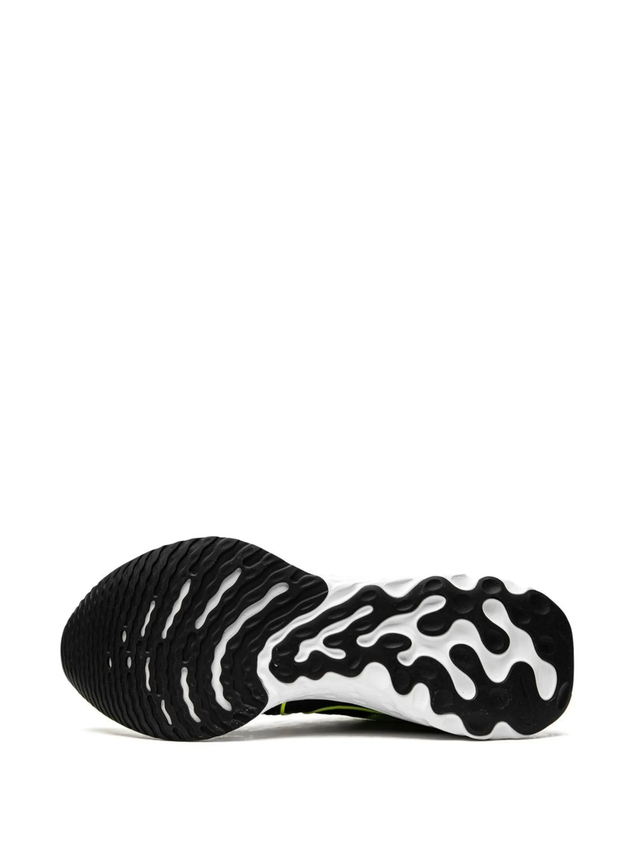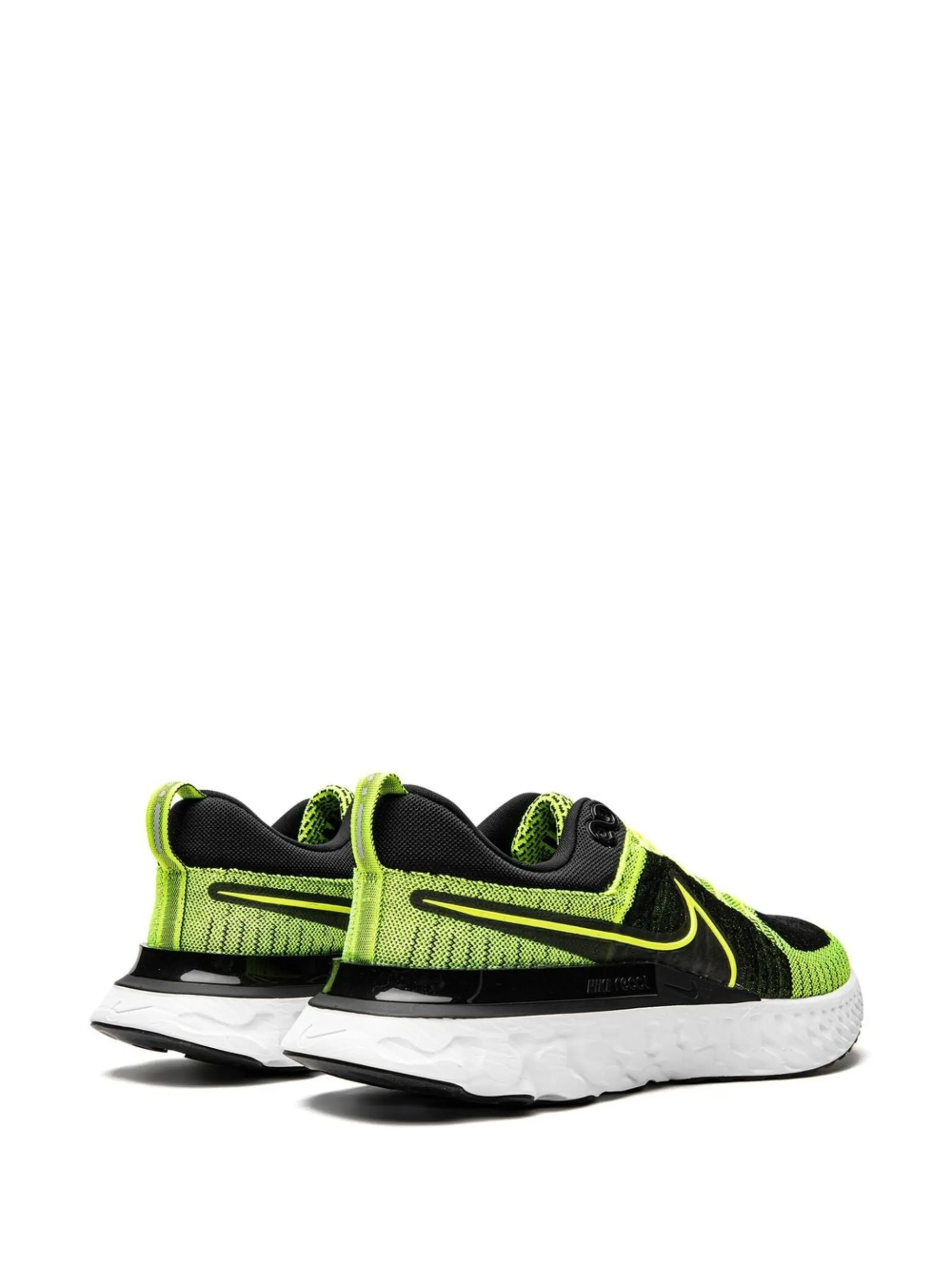 Черный, ярко-зеленый, технология Flyknit, логотип Nike Swoosh, нашивка с логотипом на язычке, закругленный носок, шнуровка спереди, резиновая подошва и промежуточная подошва с технологией React.