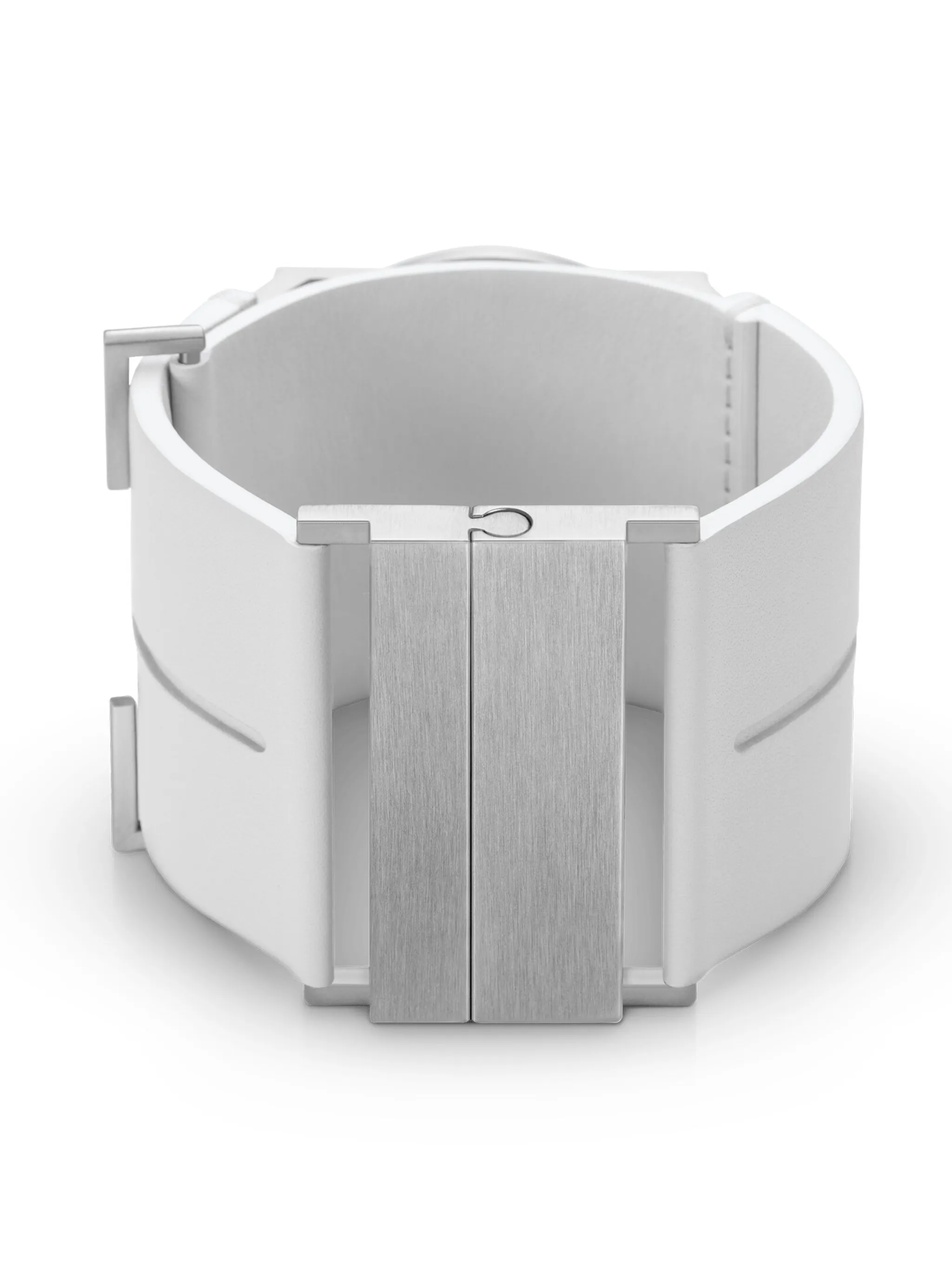 Корпус из нержавеющей стали, автоматический механизм, серебристый, прозрачный циферблат, прямоугольные вытянутые стрелки, минеральное стекло, круглый корпус, белый, кожаный ремешок, застежка на пряжке, запас хода - 42 часа и водонепроницаемость до 30 метров/3 АТМ.
