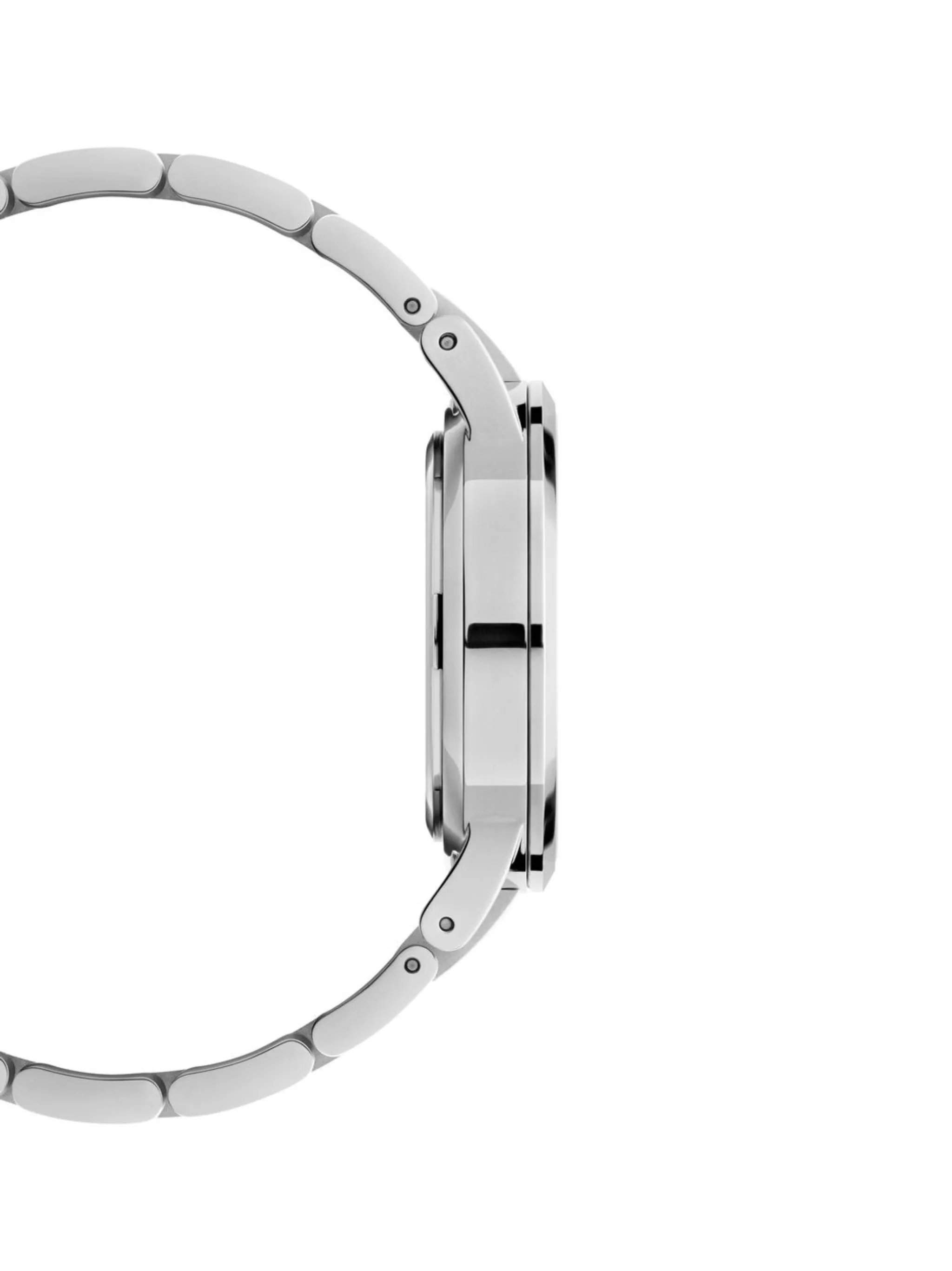 Мятно-зеленый, нержавеющая сталь, круглый корпус, кварцевый механизм, регулируемый браслет со звеньями, застежка на зажиме, заостренные стрелки и завинчивающаяся заводная коронка.
