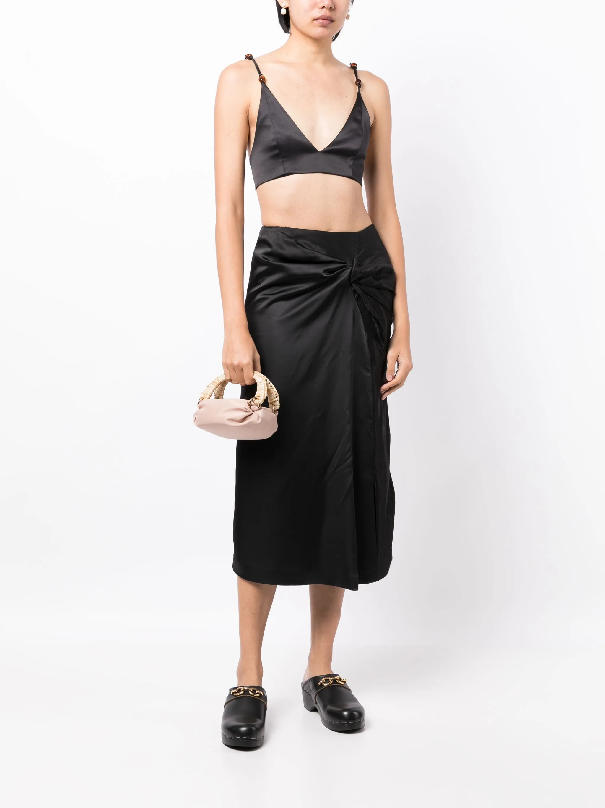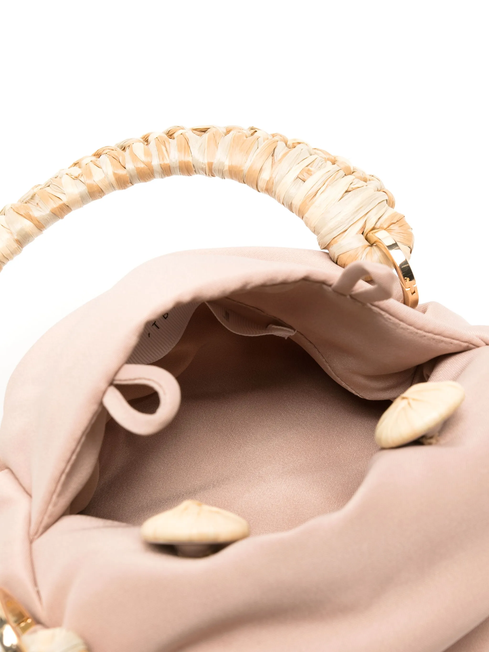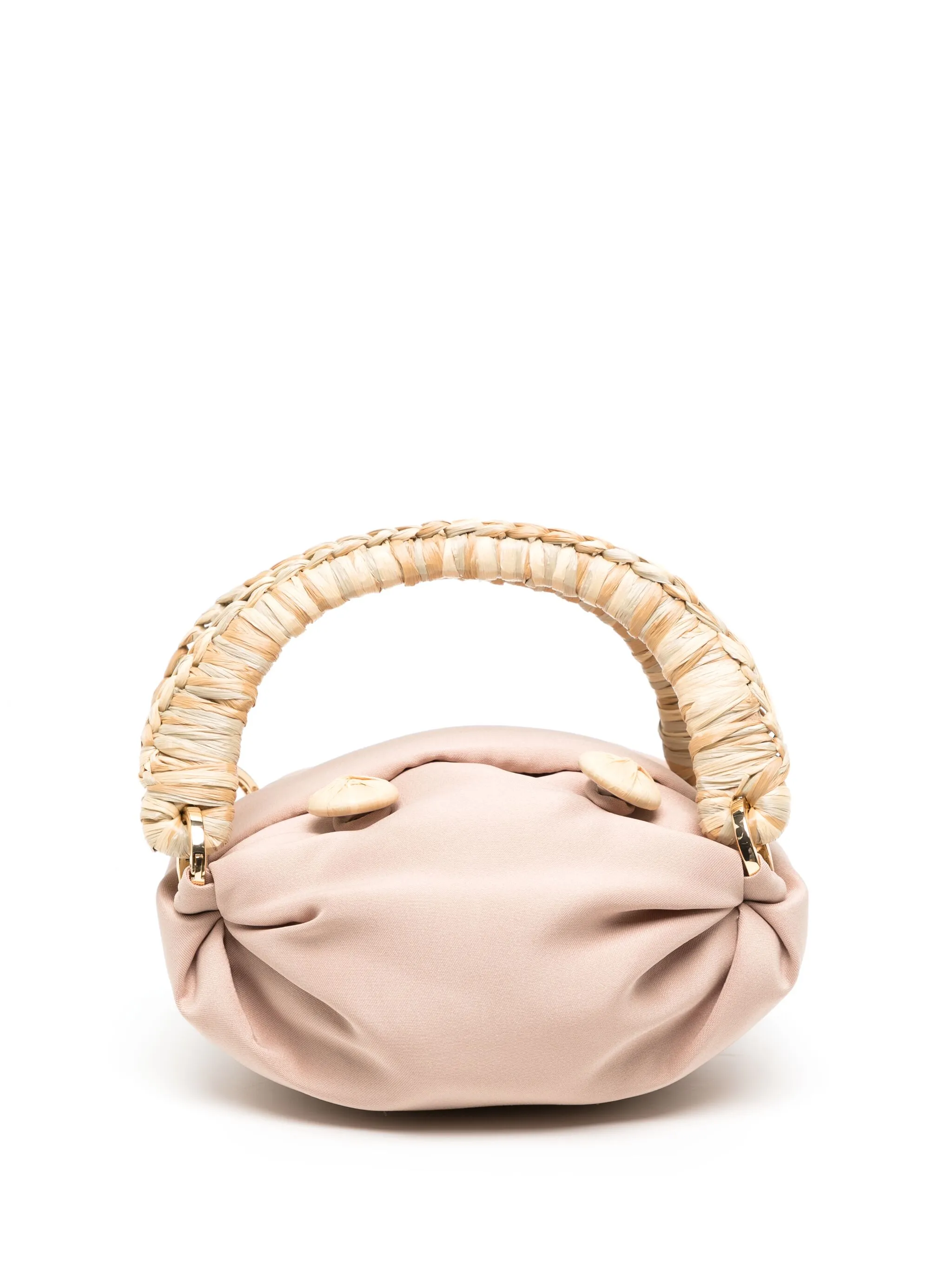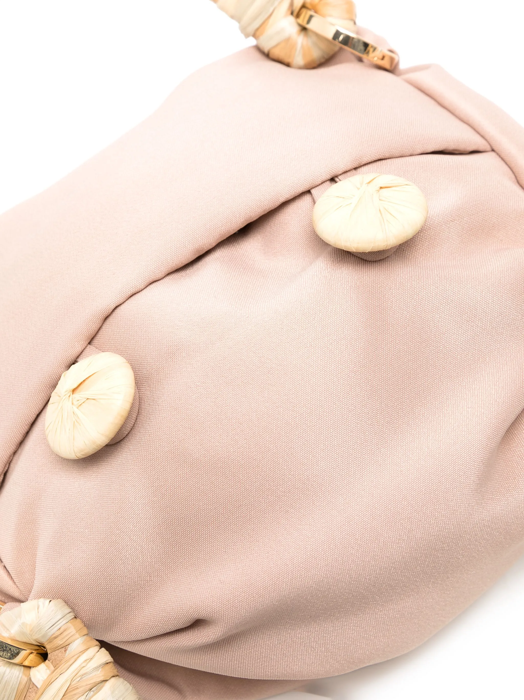 Дизайн со сборками, плетеные лямки, две плоские верхние ручки и застежка на пуговицы.