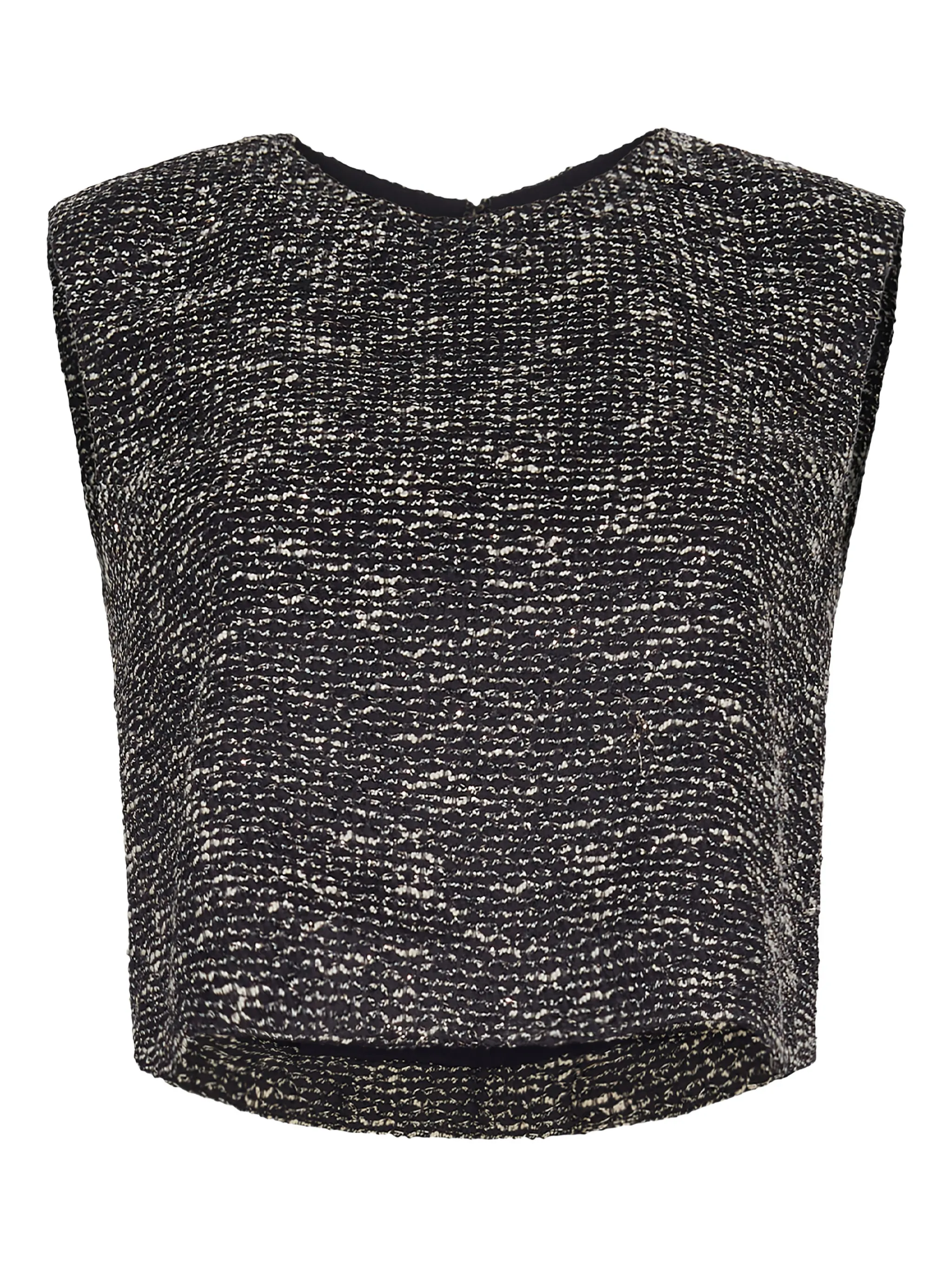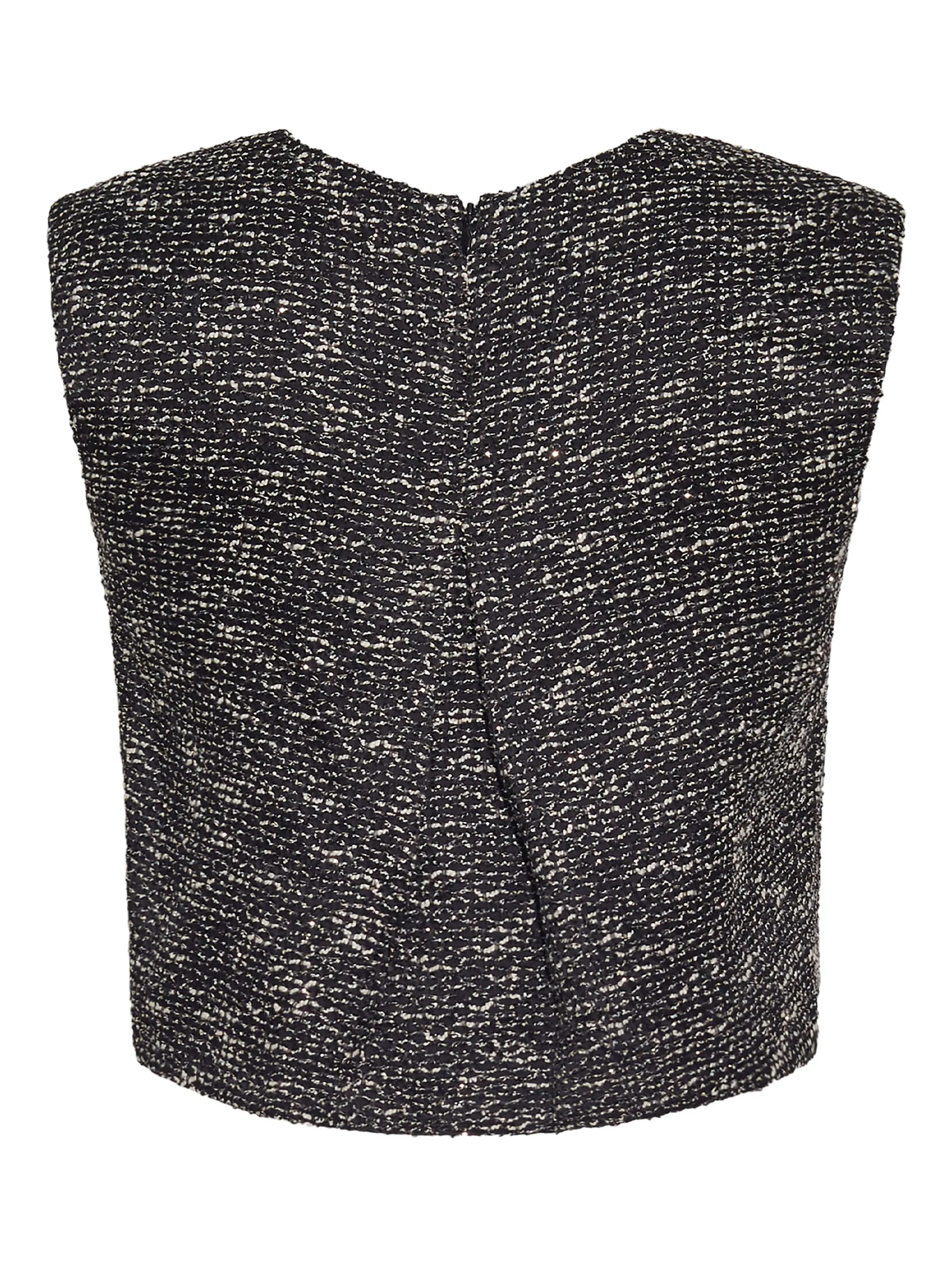 Шелковая безрукавка с эффектом твида черного цвета/ слоновой кости, круглый вырез, застежка на молнию сзади