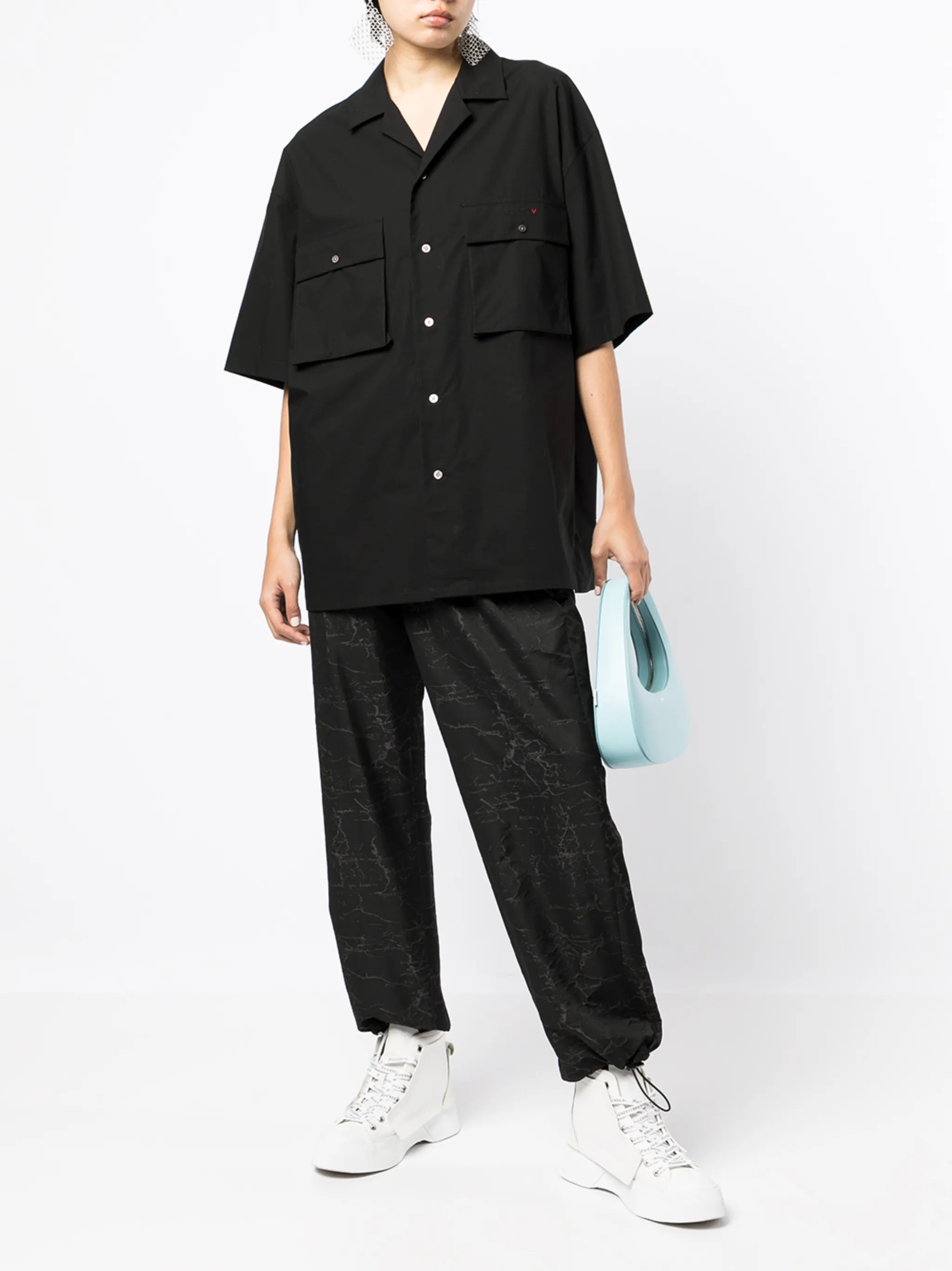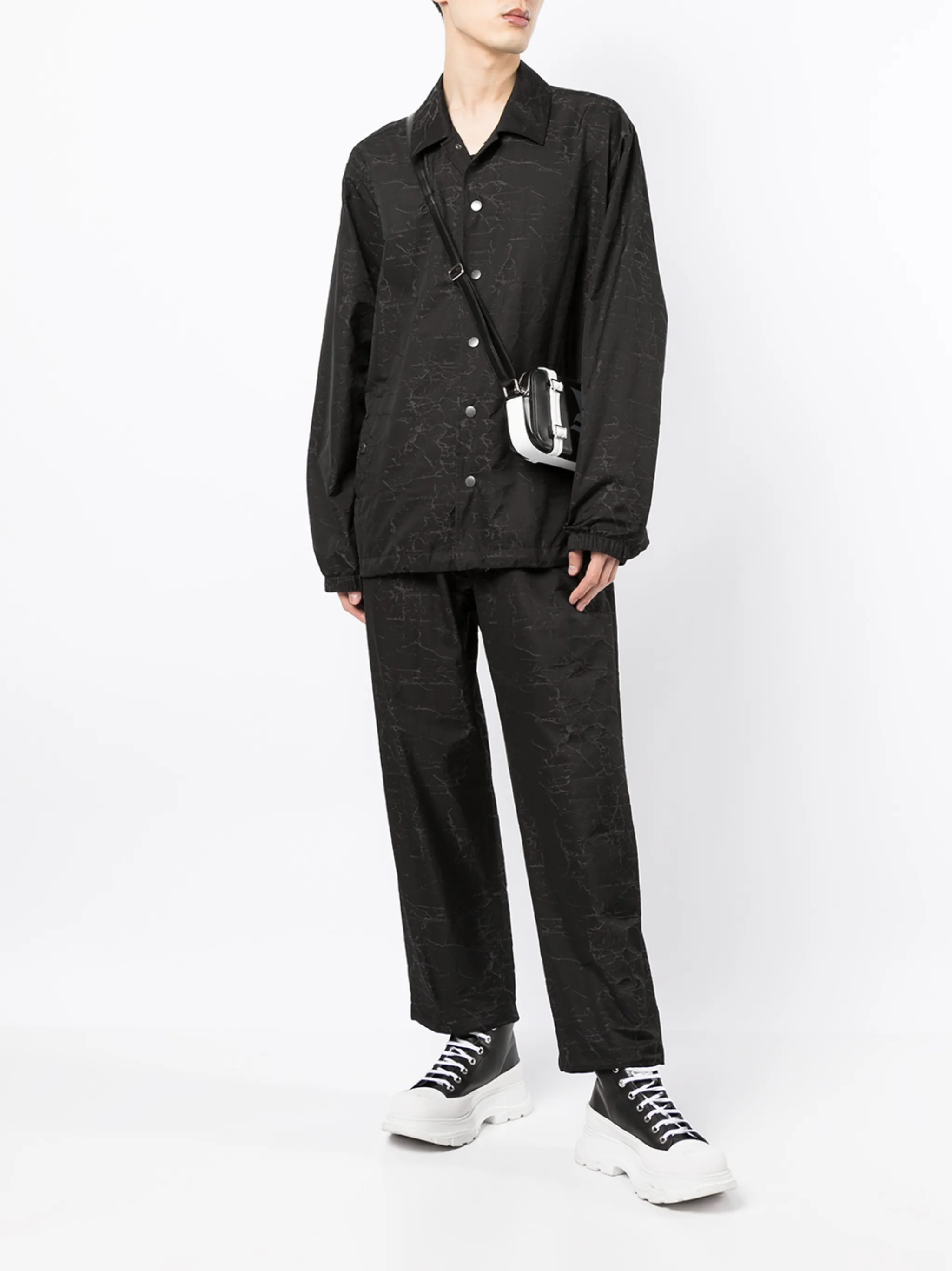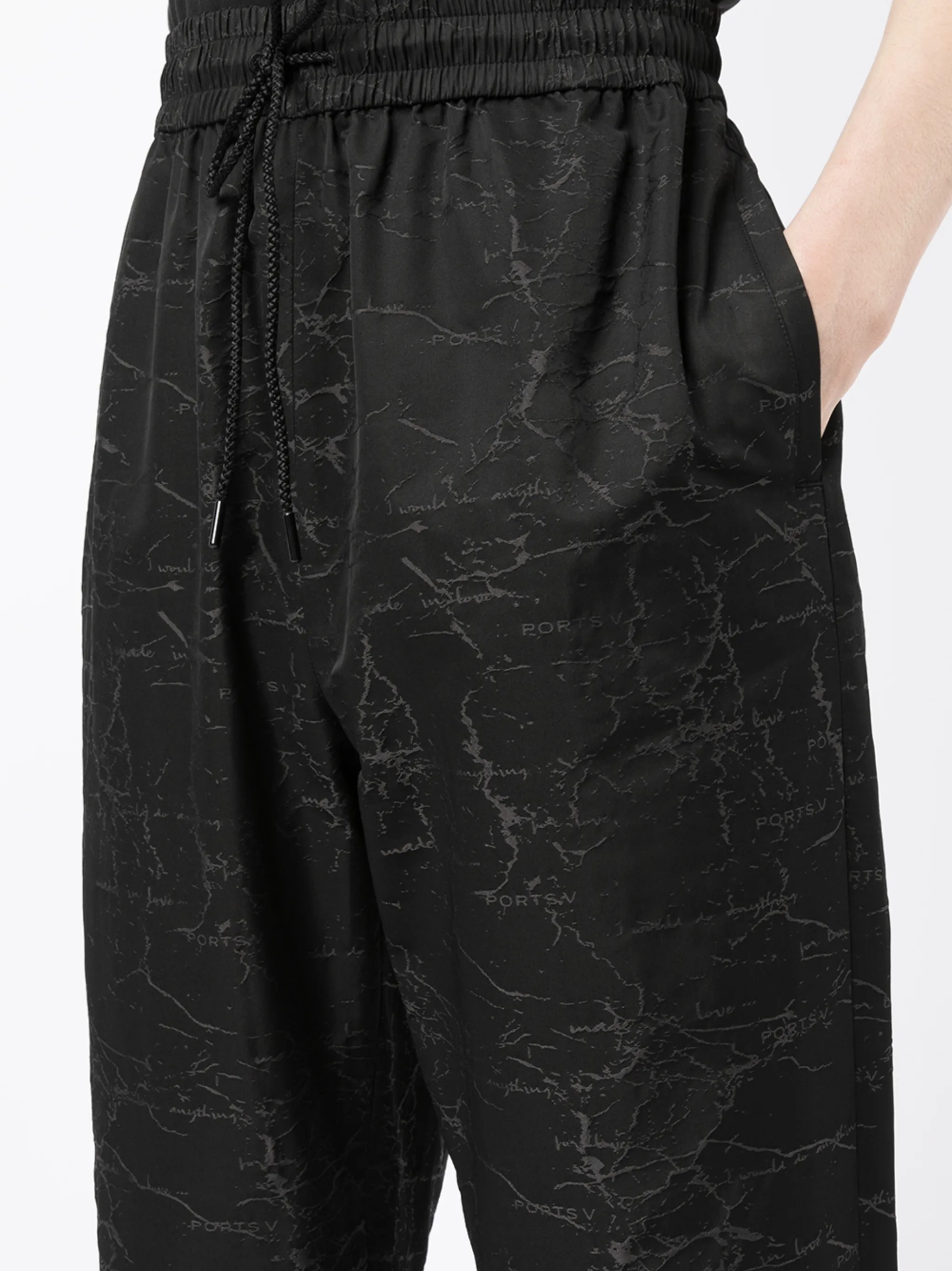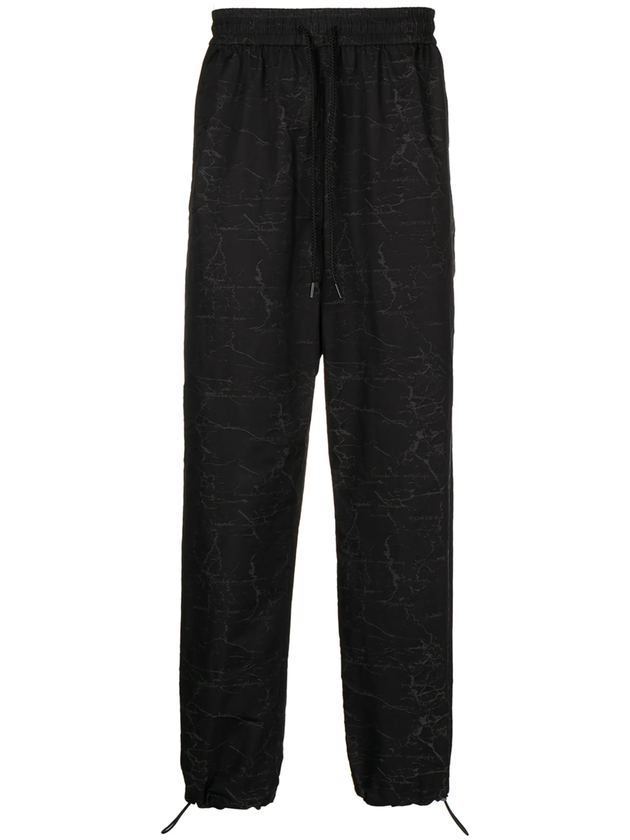 Сплошной принт с логотипом, эластичный пояс на шнурке, прямой крой, эластичные манжеты и два прорезных кармана по бокам. Цвет: черный.