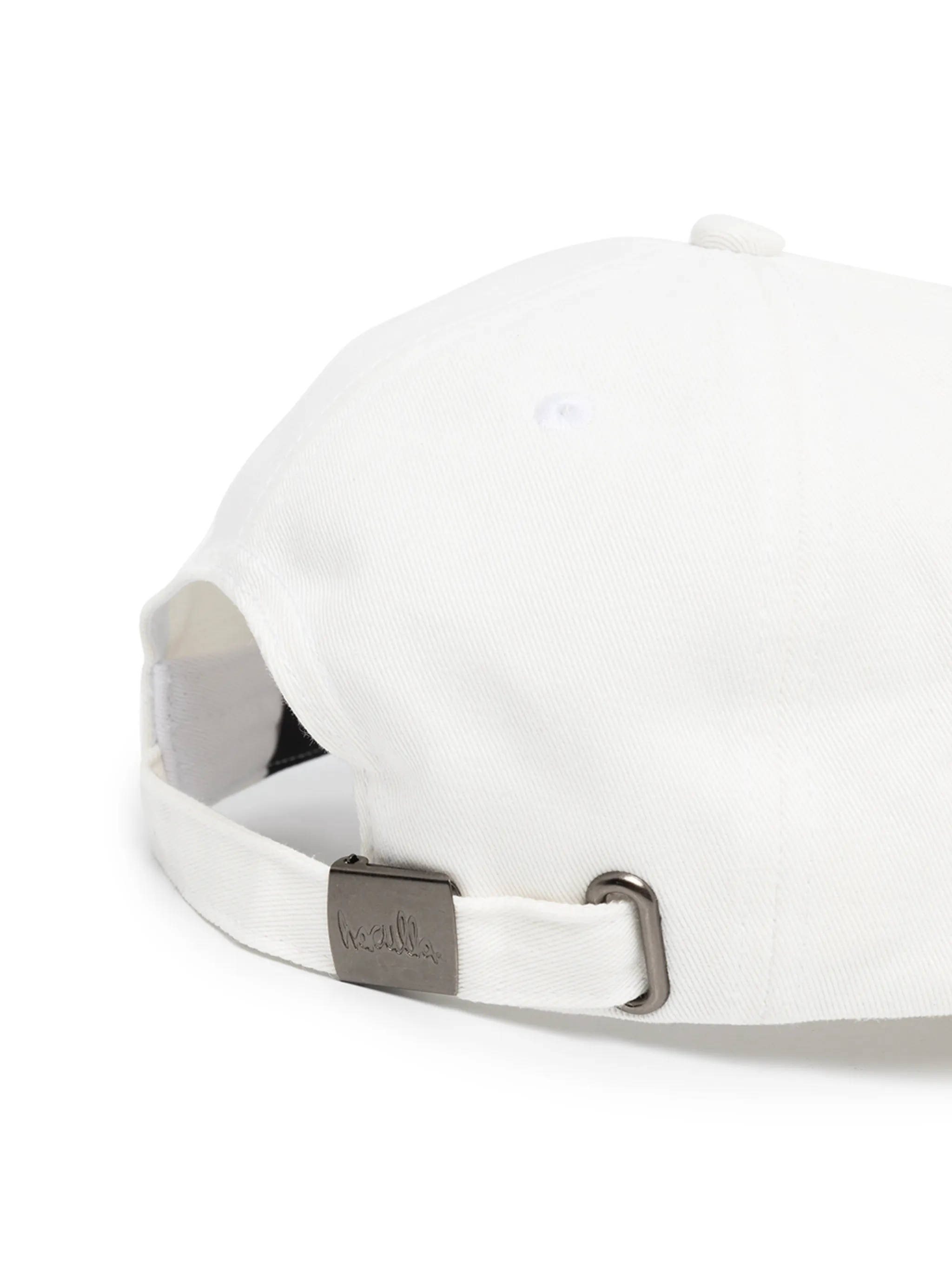 Кремовый, хлопок, декор в виде значка, закругленный козырек и регулируемый ремешок сзади.