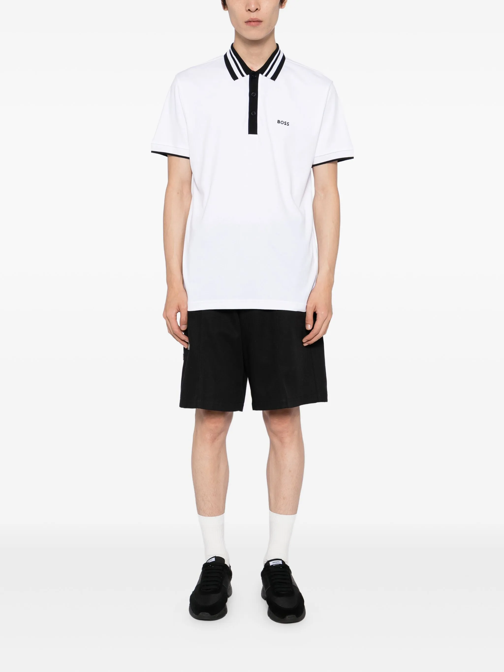 Рубашка поло с полосками на воротнике Boss, белый