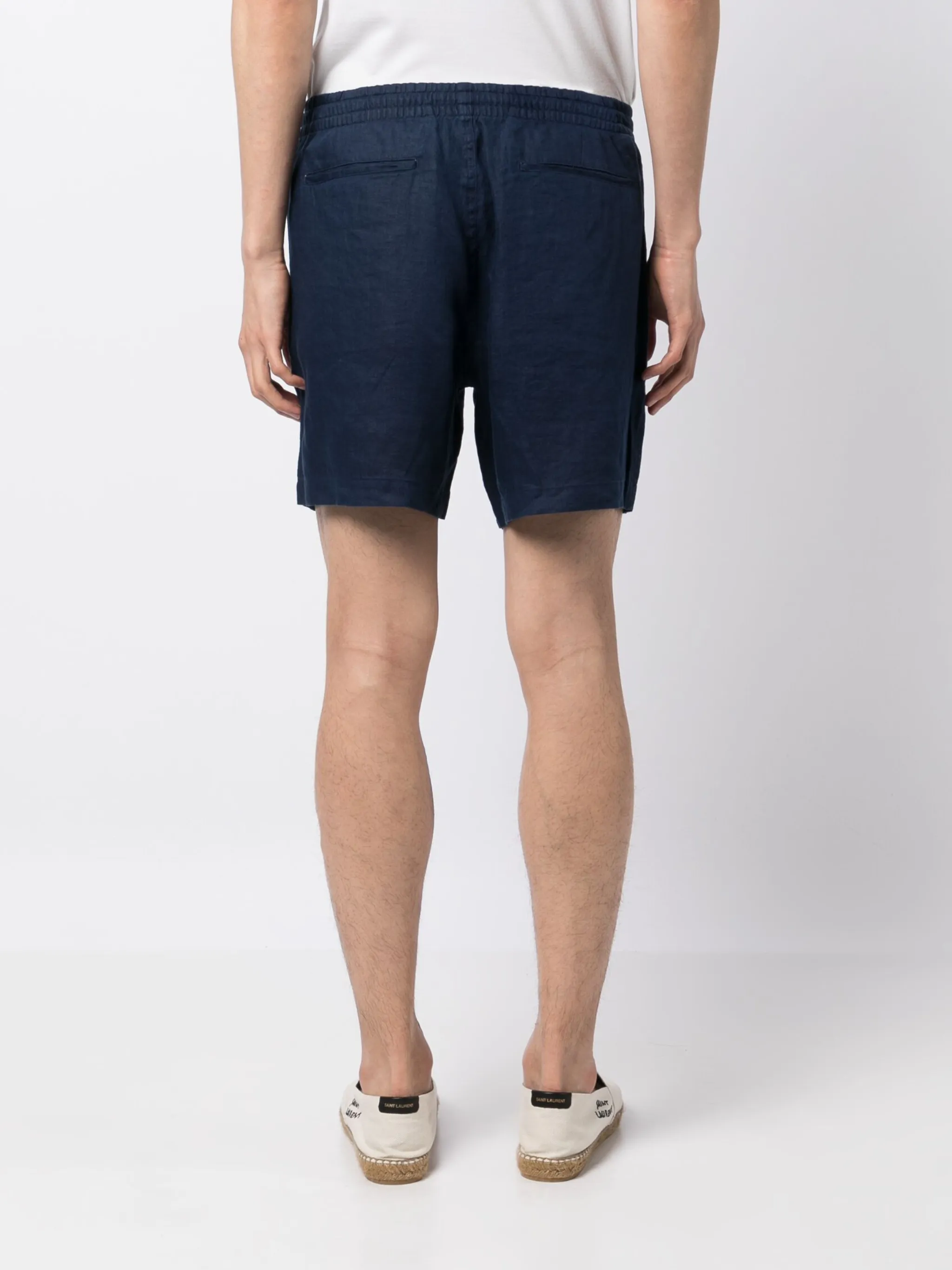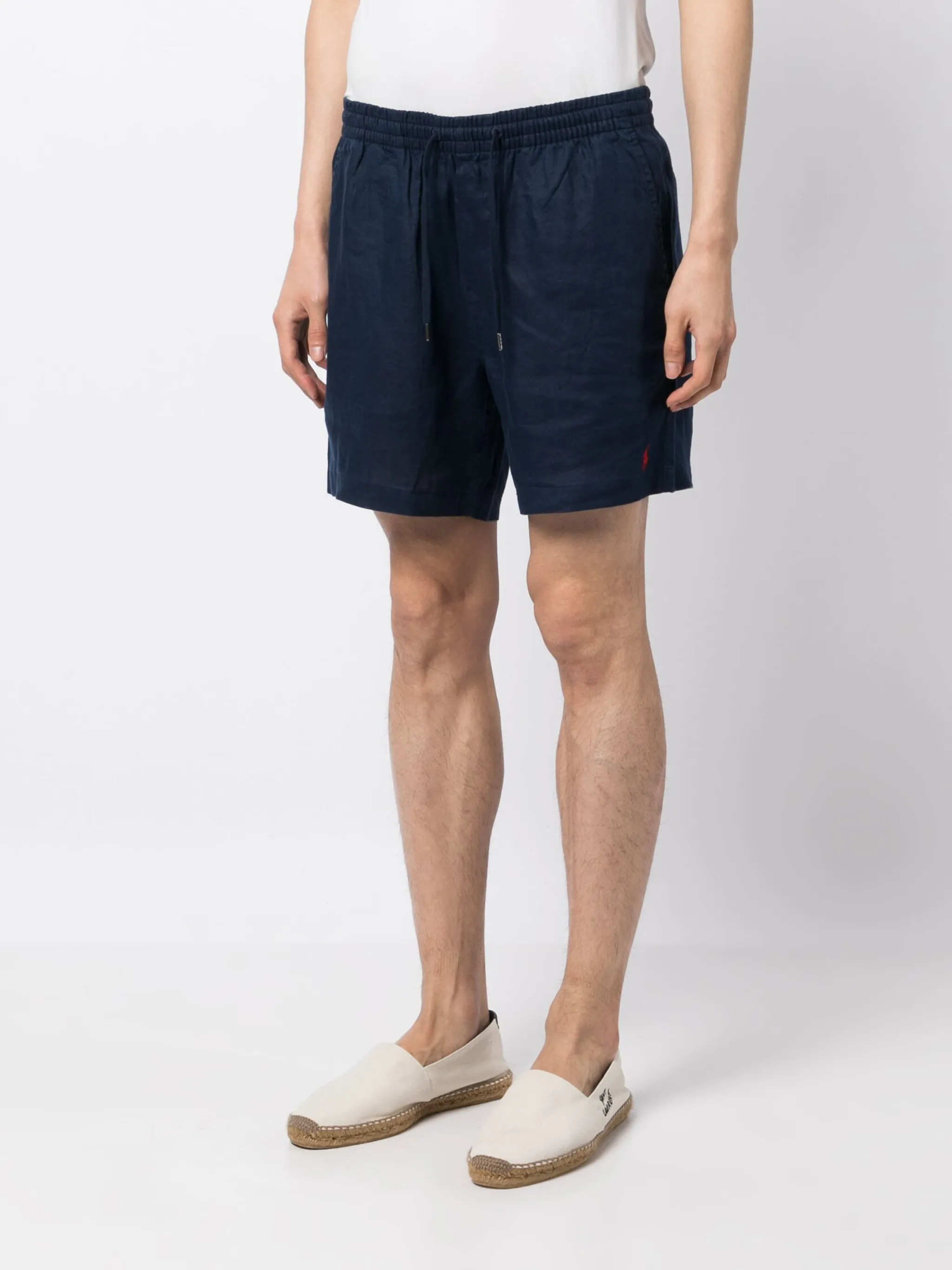 Темно-синий, лен, знаковый логотип Polo Pony, нашивка с логотипом сзади, кулиска на талии, два вшитых кармана по бокам, два прорезных кармана сзади и длина до бедер. Этот товар как минимум на 50% состоит из материалов, которые признаны более безопасными для окружающей среды, и/или произведены с использованием методов, которые помогают сократить потребление воды и химических веществ.