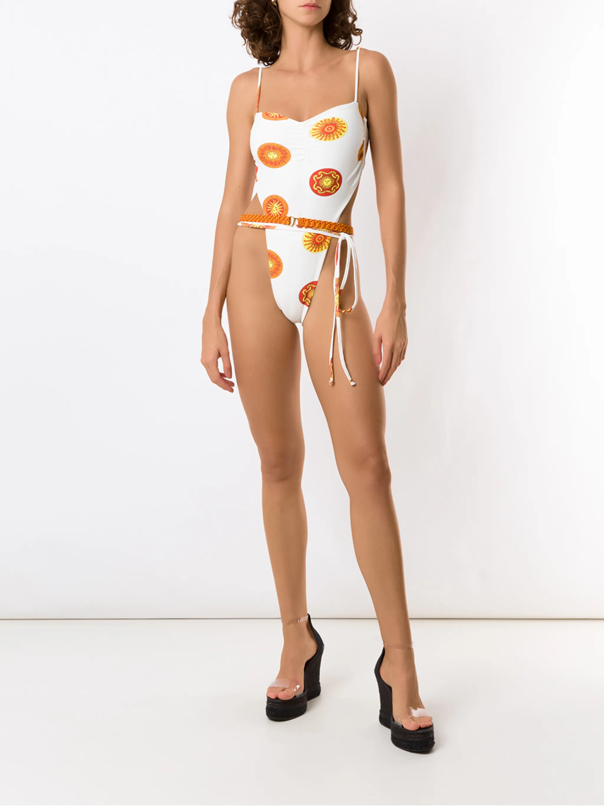Купальник Sol с принтом от Amir Slama. V-образная горловина, застежка на завязке сзади, талия на завязке, сплошной узор, завышенный вырез по ноге и подкладка. Цвет: белый. Размер этой модели соответствует стандарту.