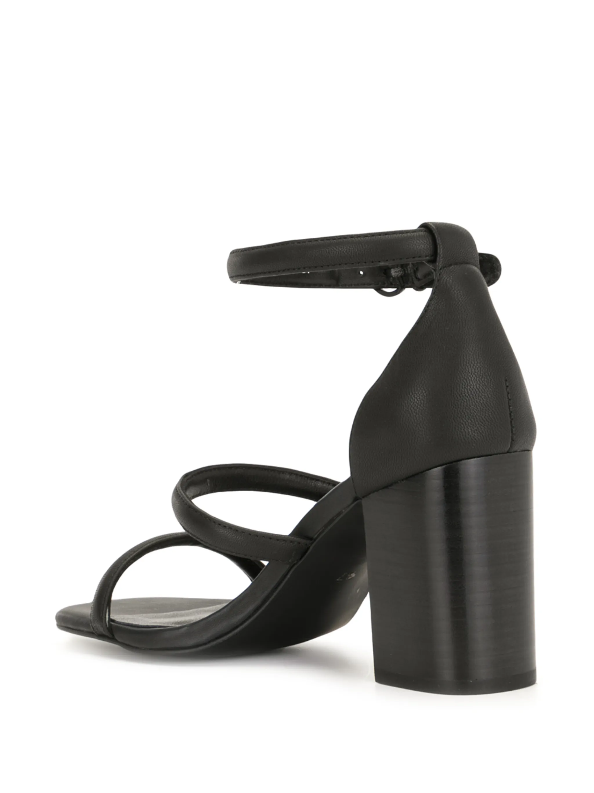 Открытый носок, стелька с логотипом, ремешок на щиколотке с пряжкой и высокий блочный каблук. Цвет: черный.