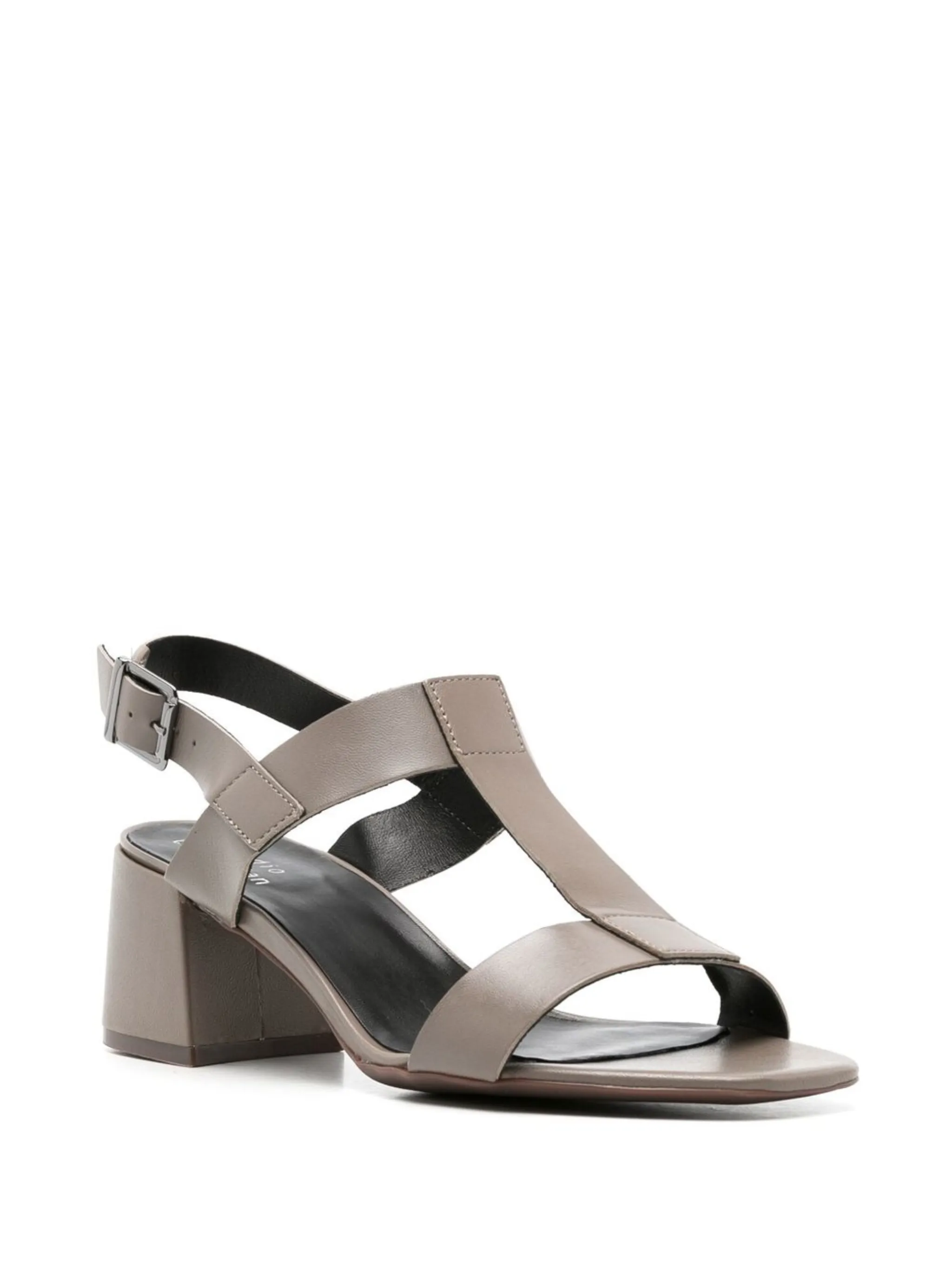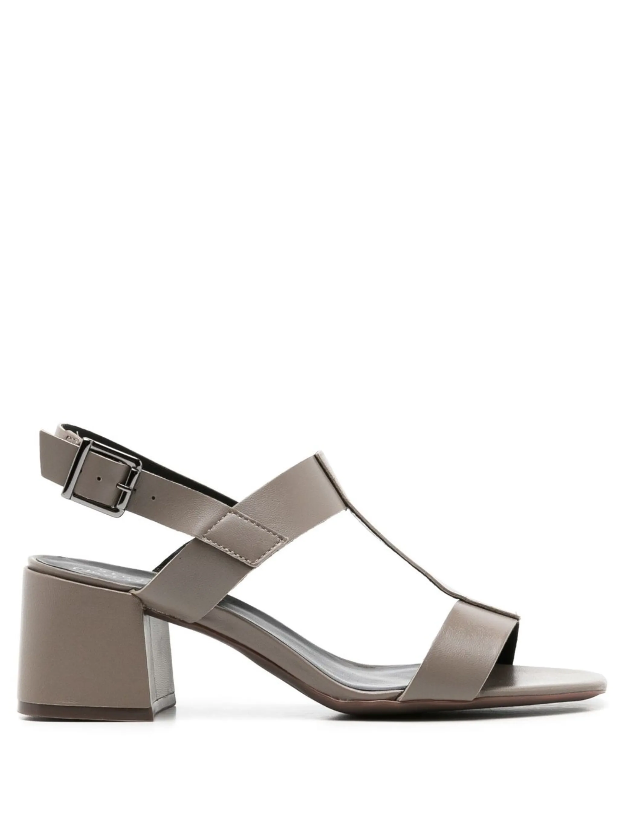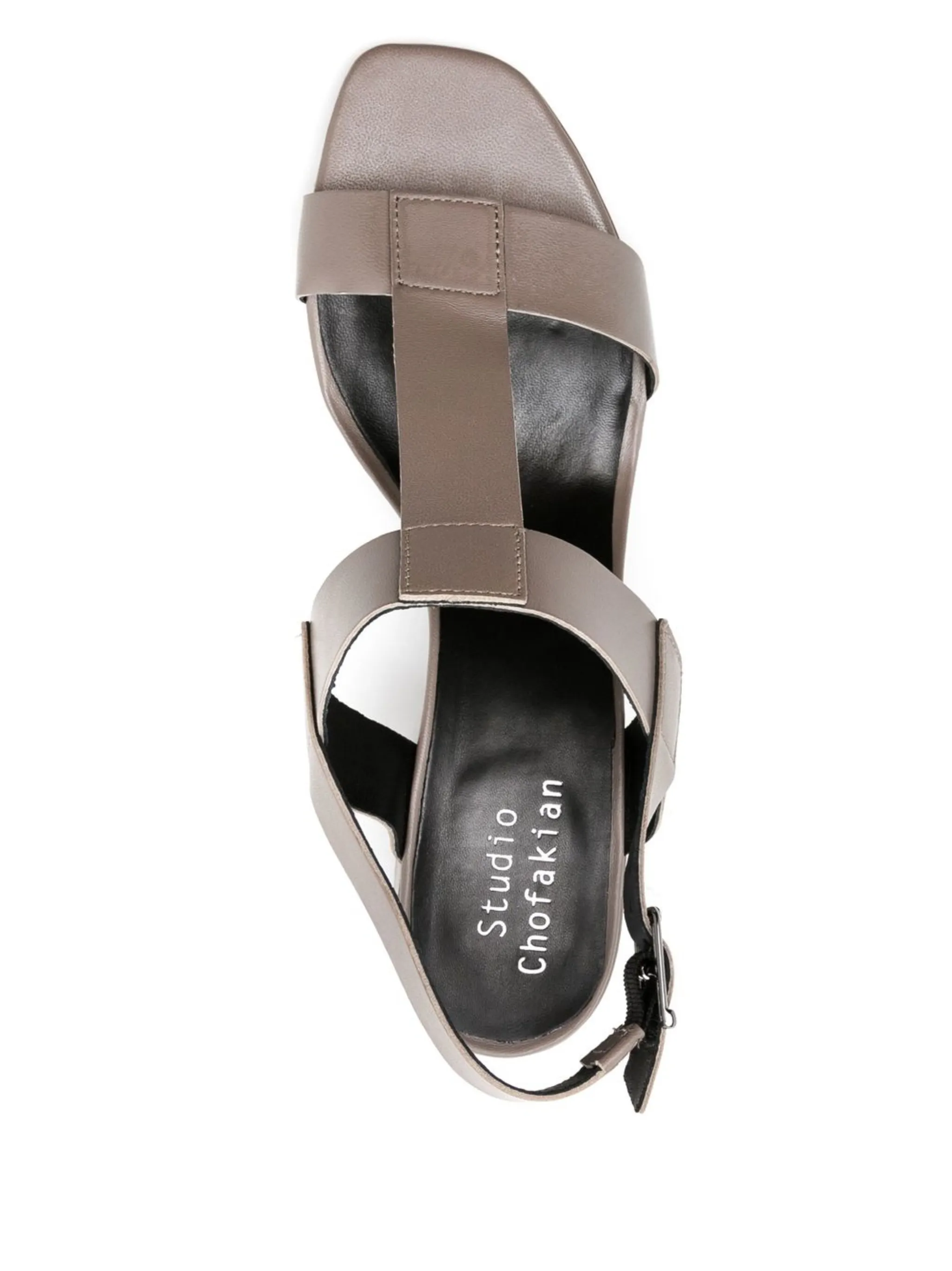 Кожа, ремешок на пятке с пряжкой, открытый носок, Т-образный ремешок и низкий блочный каблук.