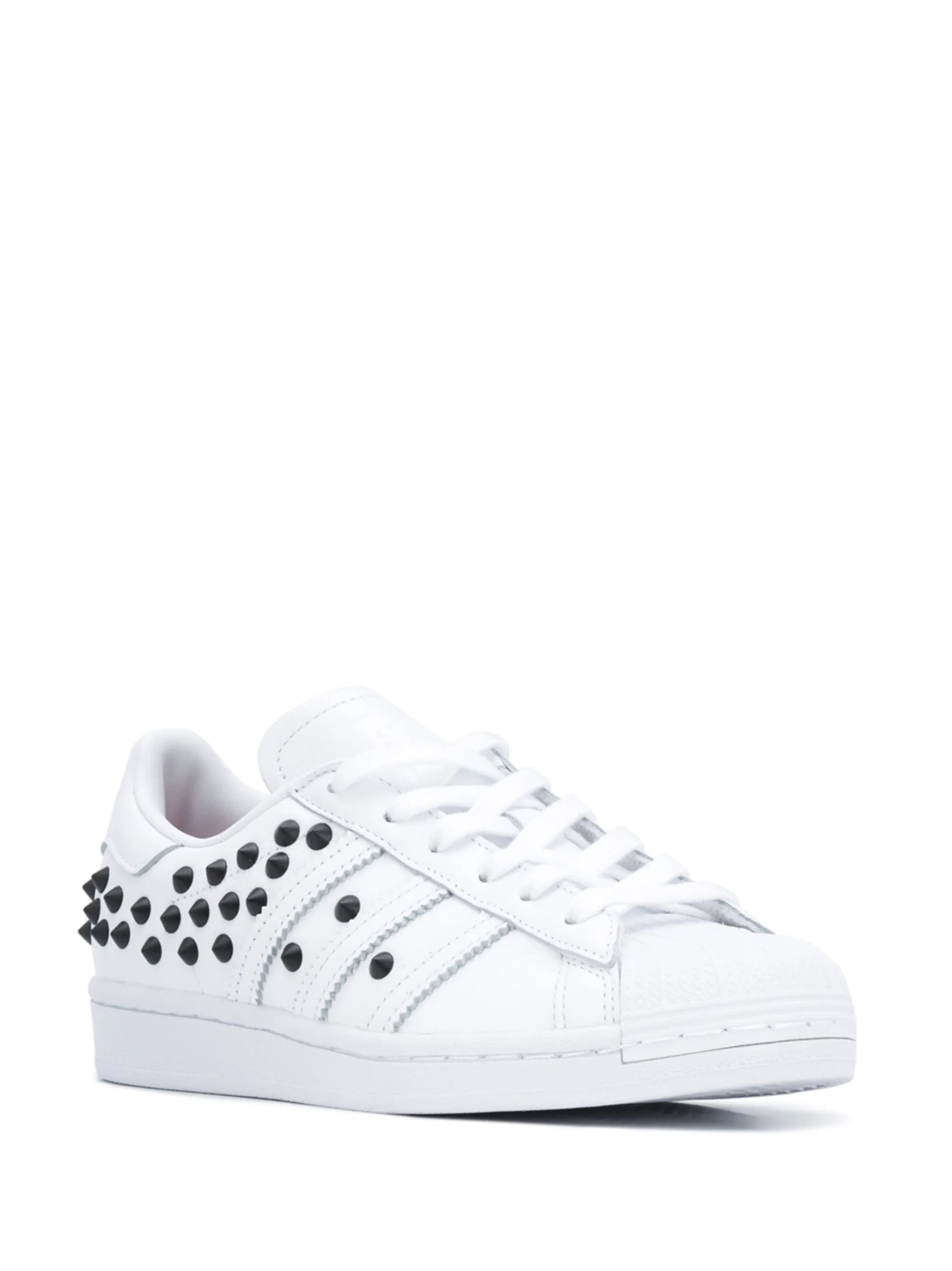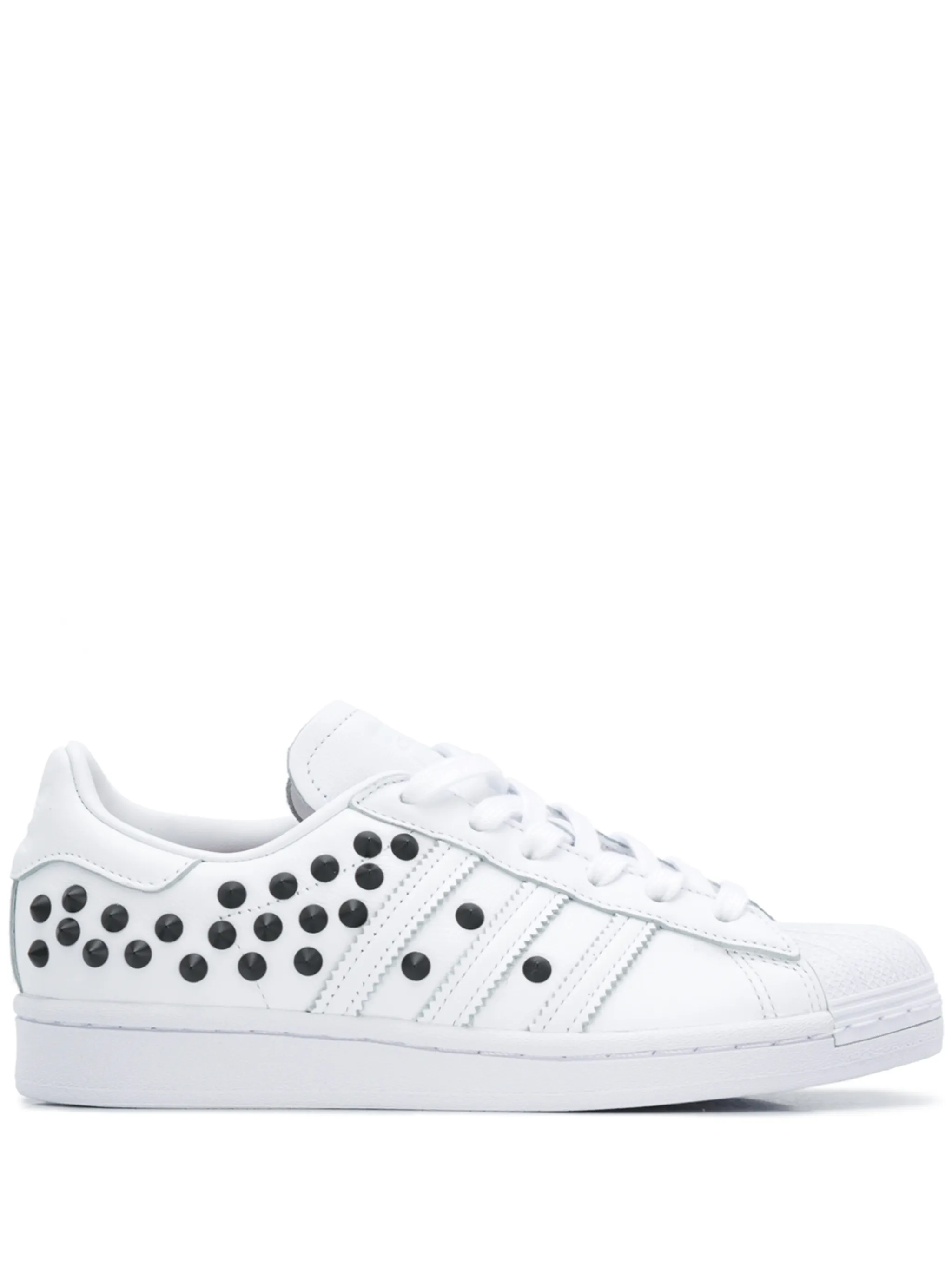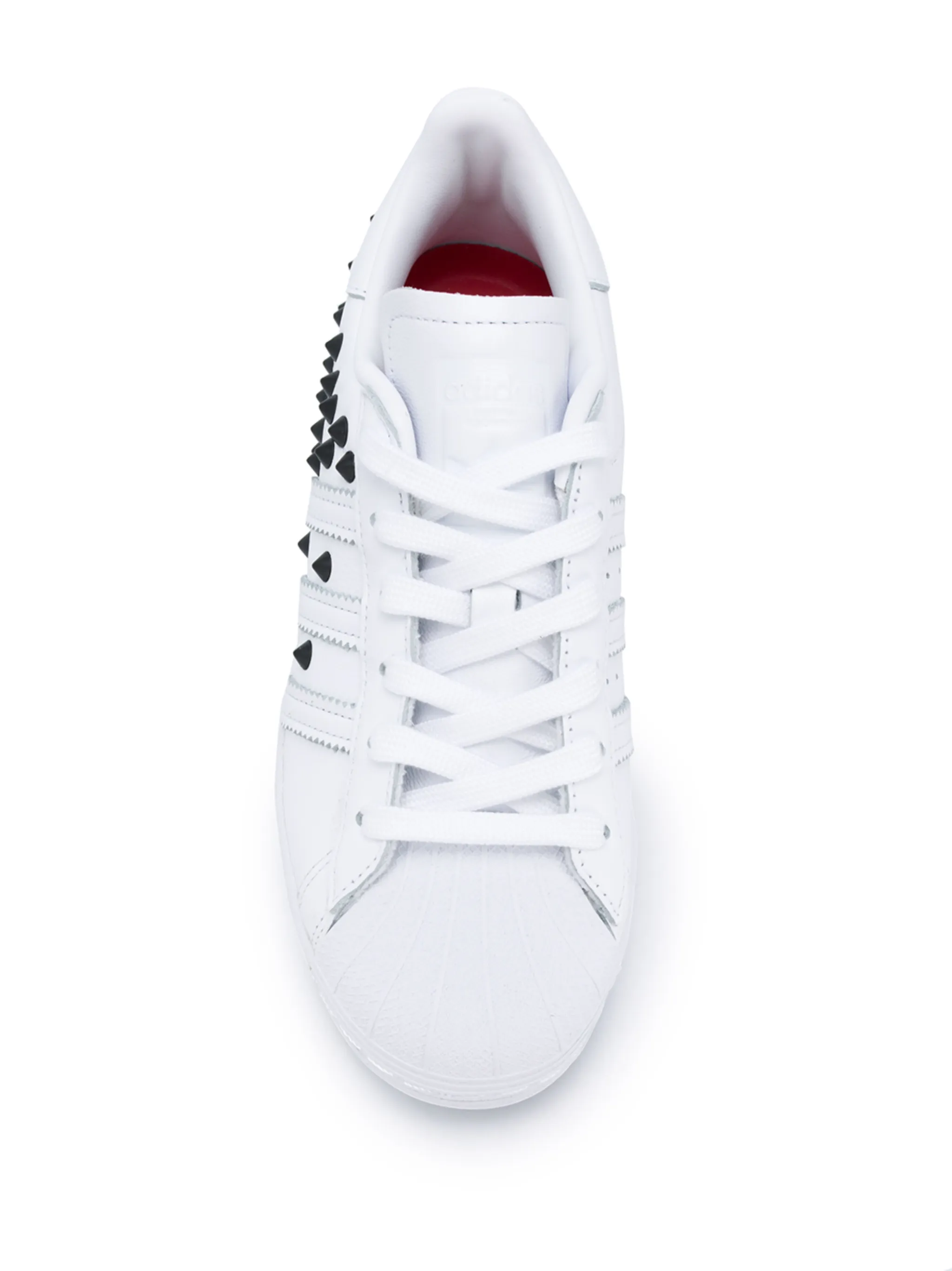 Кеды Superstar от adidas (Адидас). Закругленный носок, шнуровка спереди, детали с заклепками-шипами, дизайн в двух тонах и плоская подошва. Цвет: белый.