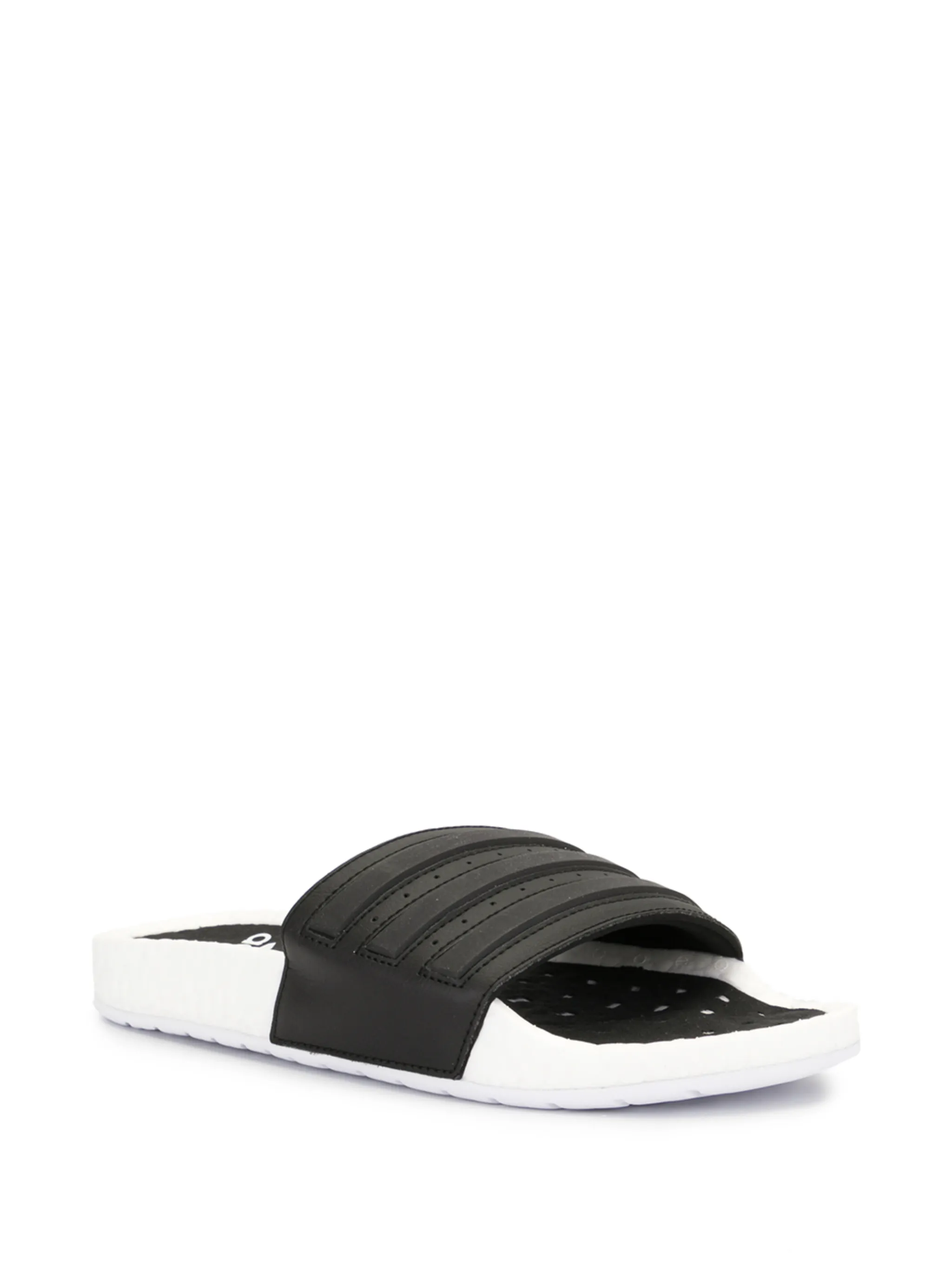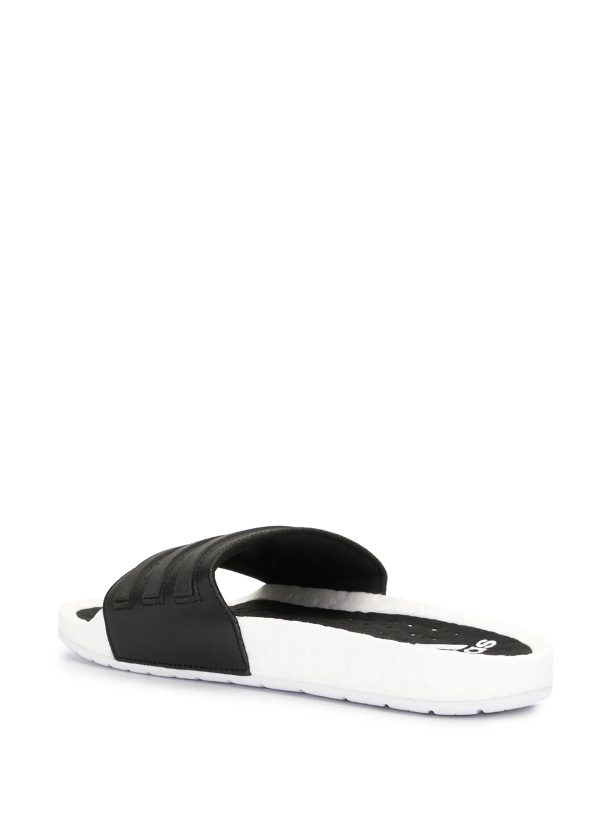 Сандалии Adilette Boost от adidas (Адидас). Модель слип-он, без застежки, открытый носок, плоская подошва, фирменная деталь с тремя полосками и фирменная стелька. Цвет: черный.
