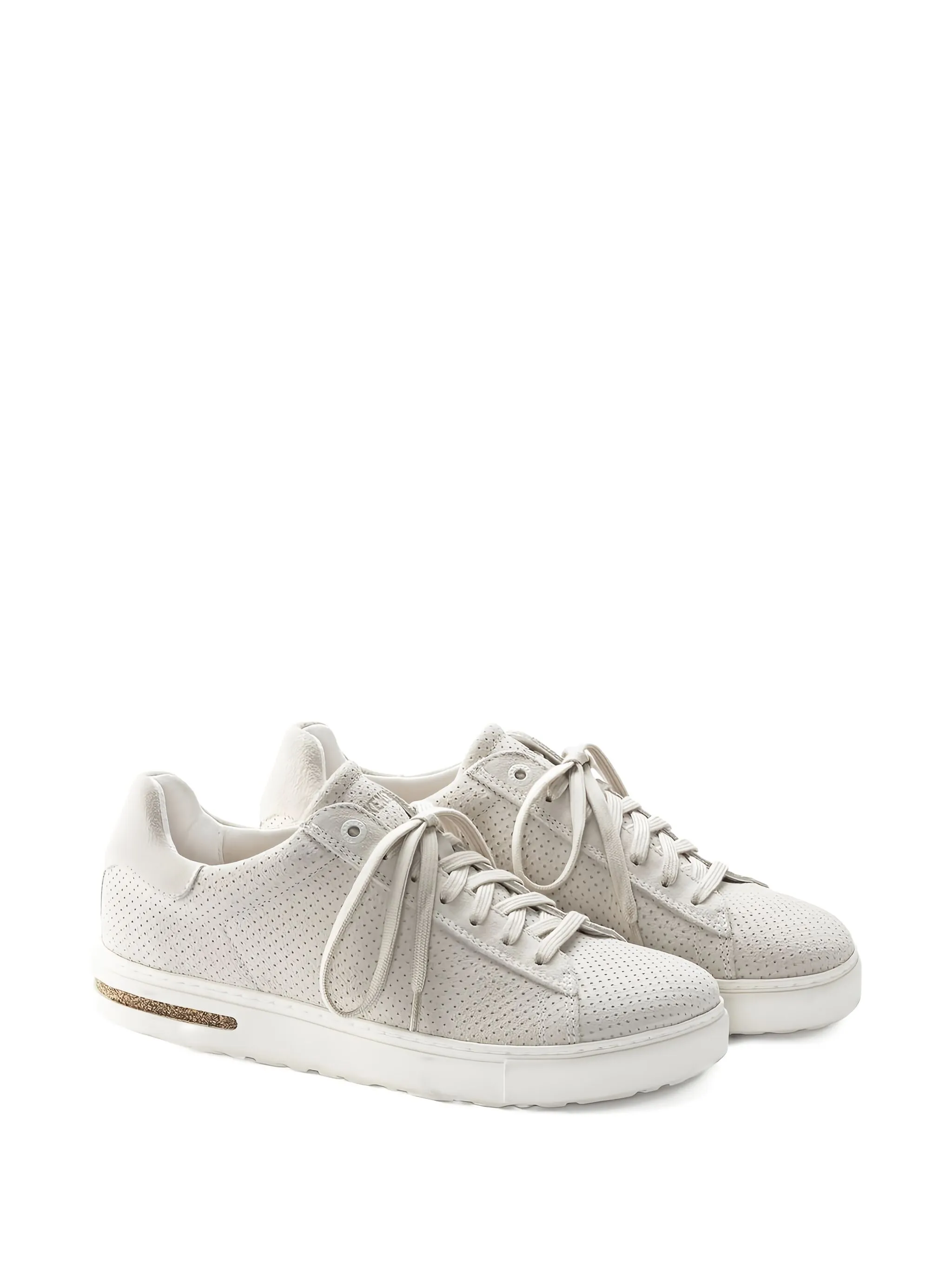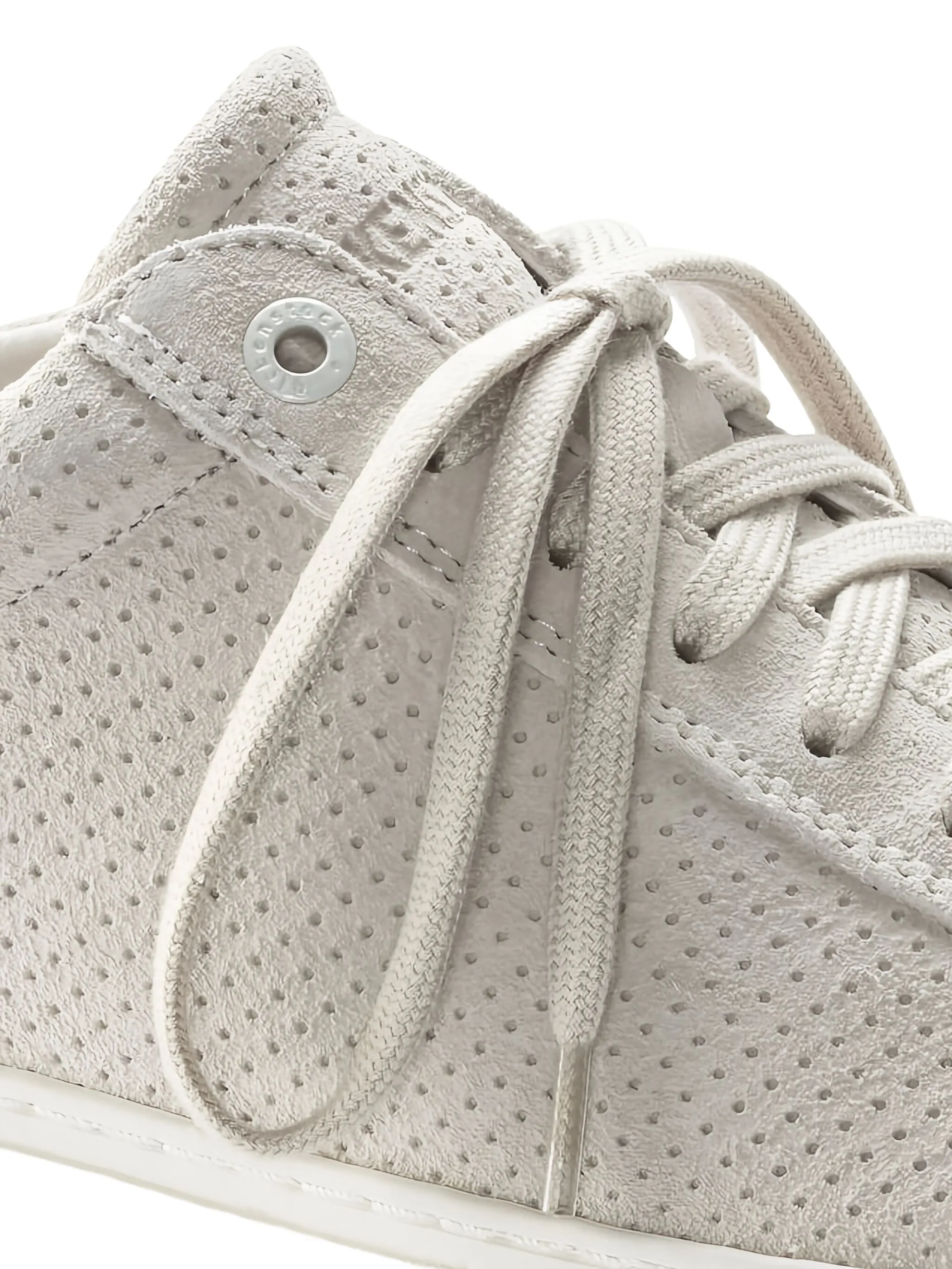 Кремово-белый, замша из телячьей кожи, телячья кожа, матовый эффект, вставки, перфорированная модель, закругленный носок, шнуровка спереди, кожаная стелька с логотипом и массивная резиновая подошва.