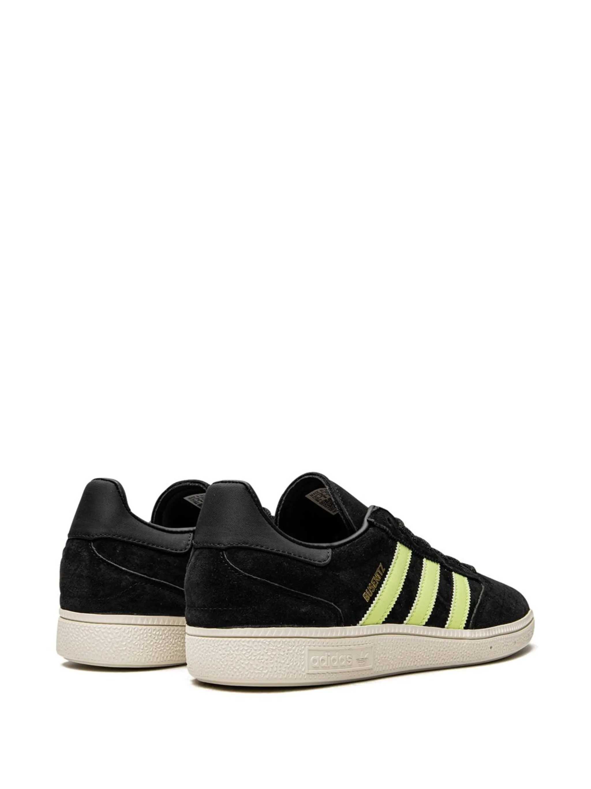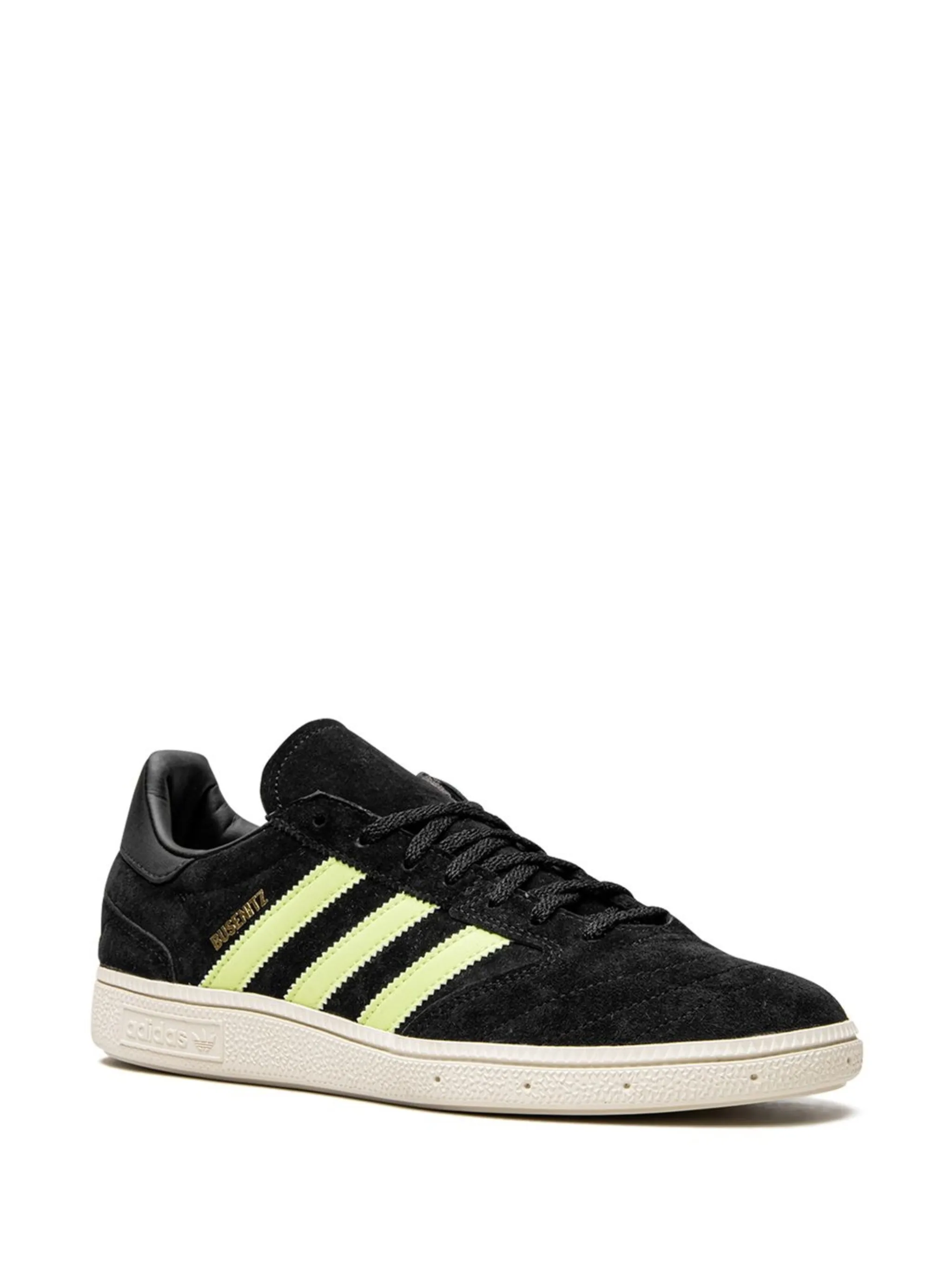 Черный, замша, кожа, логотип сбоку, знаковый логотип 3-Stripes, закругленный носок, шнуровка спереди, стелька с логотипом и плоская резиновая подошва.
