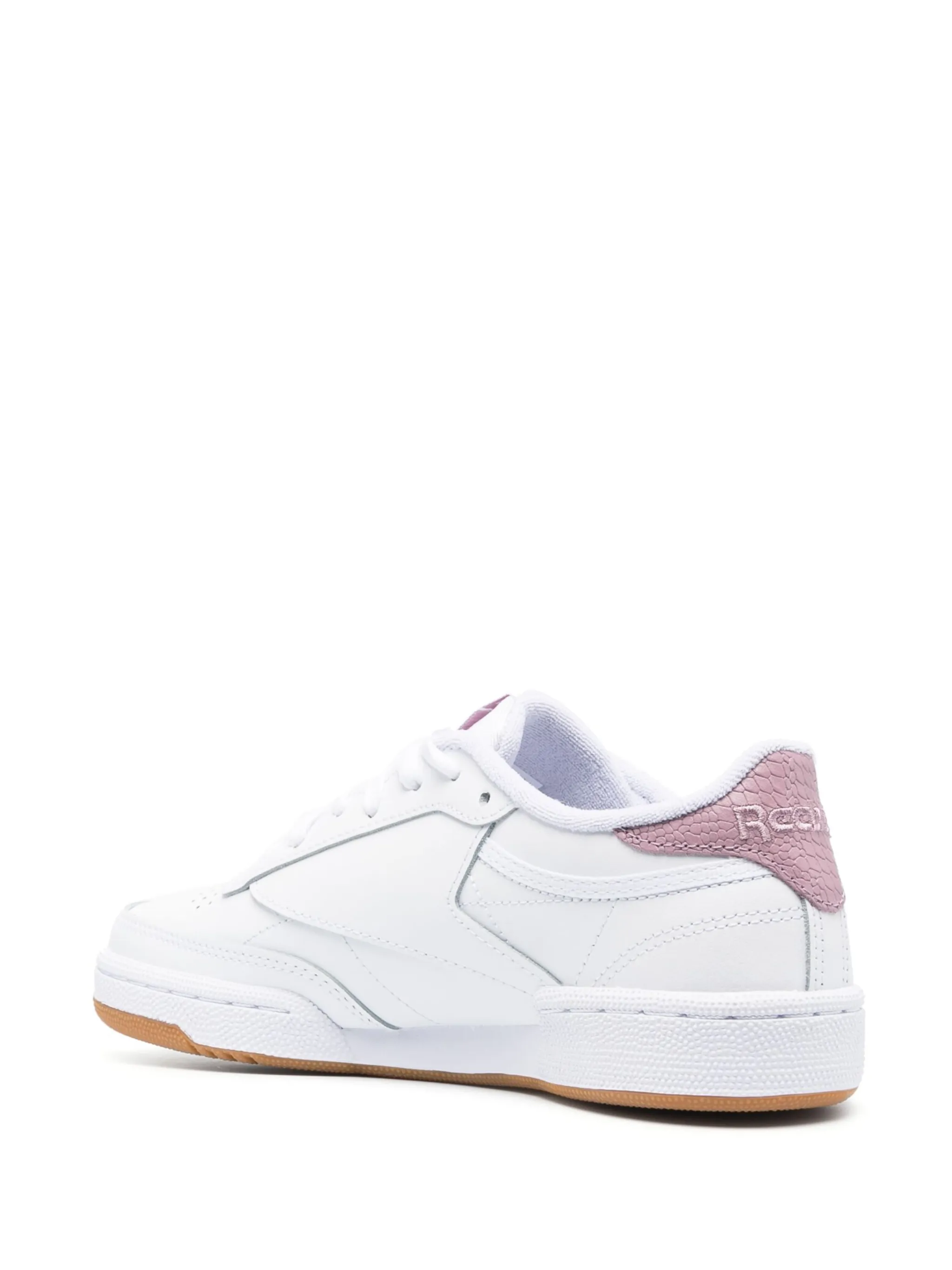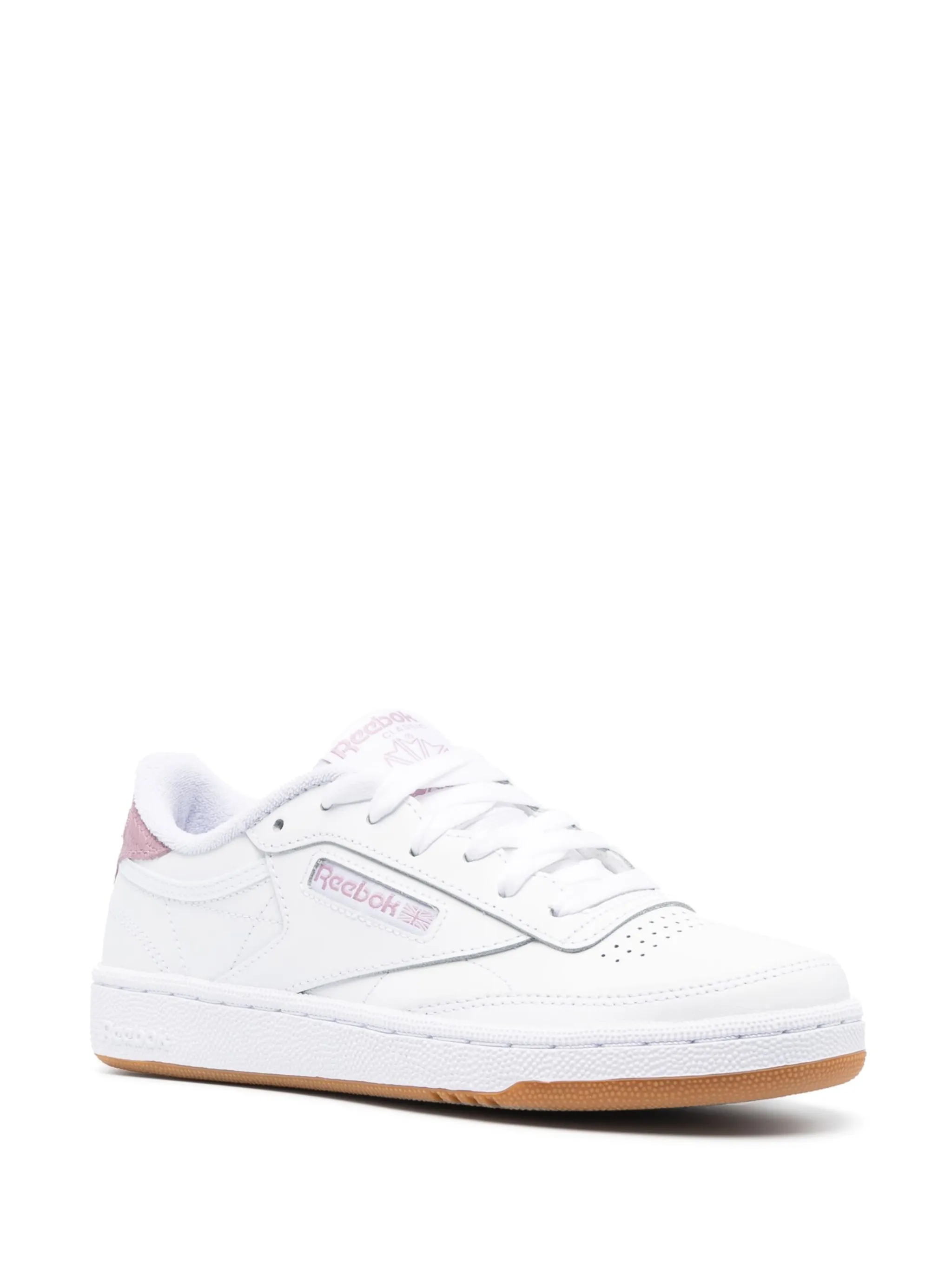 Белый, светло-розовый, телячья кожа, нашивка с логотипом сбоку, контрастный задник, закругленный носок, шнуровка спереди и плоская резиновая подошва.