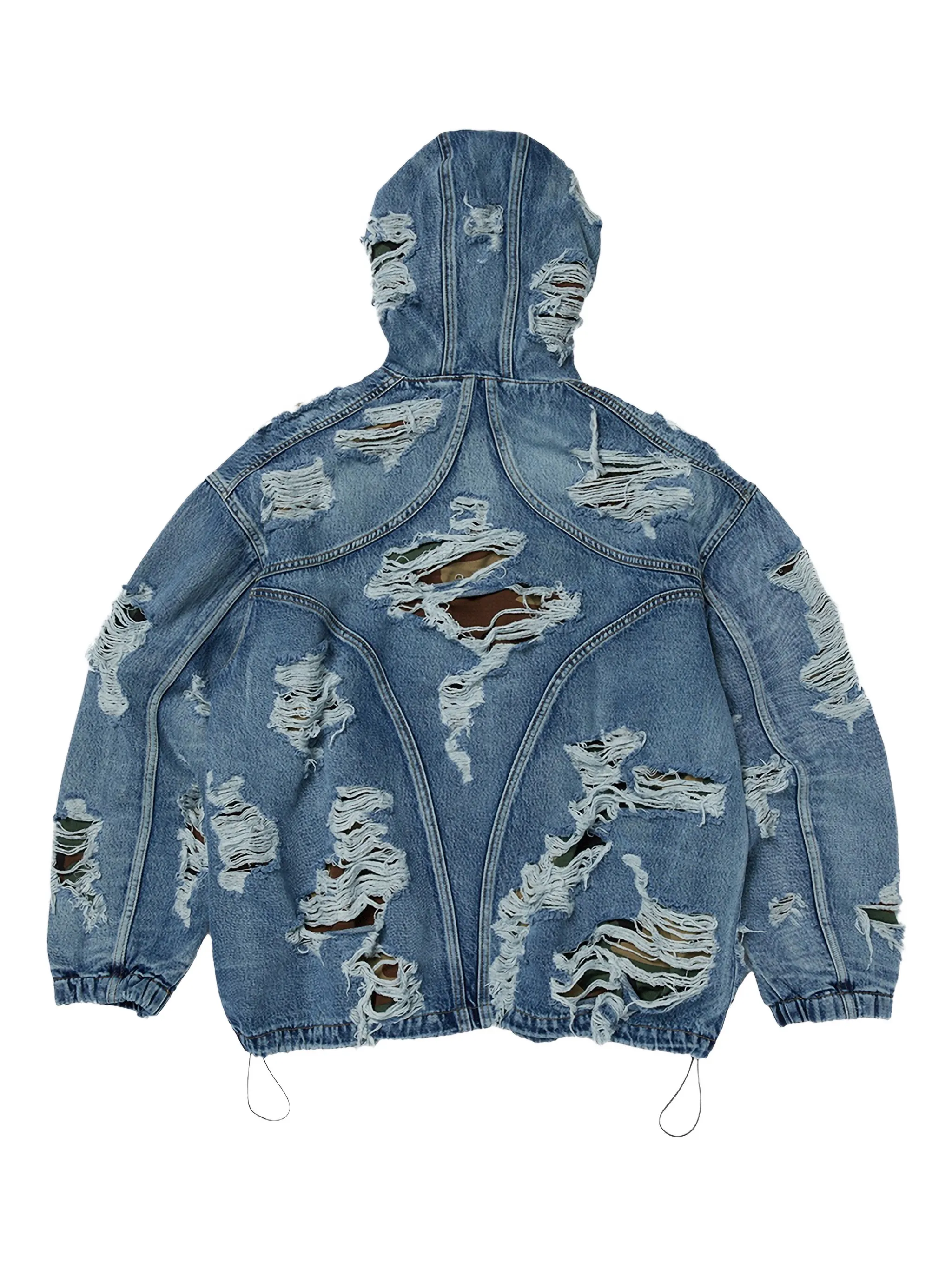 Синий камуфляжный принт с эффектом потертости, застежка на шнурке, застежка на молнию с капюшоном