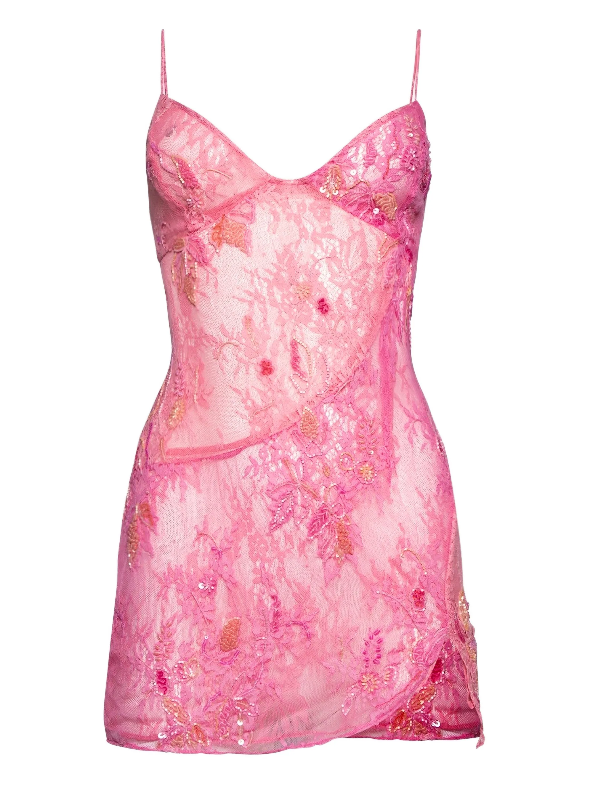 Бретельки на бретельках с v-образным вырезом, украшенные розовым цветочным кружевом, застегиваются на молнию сзади