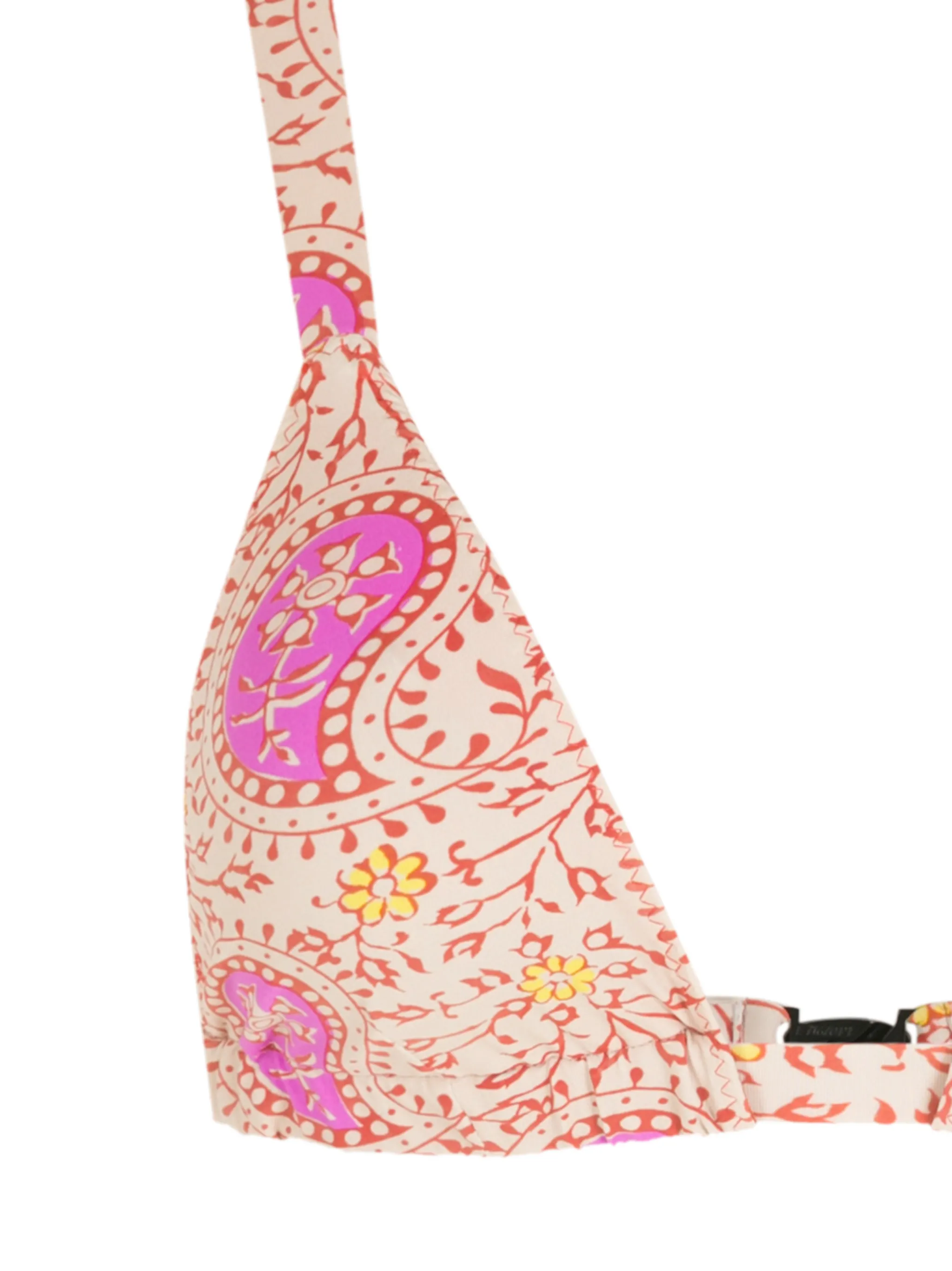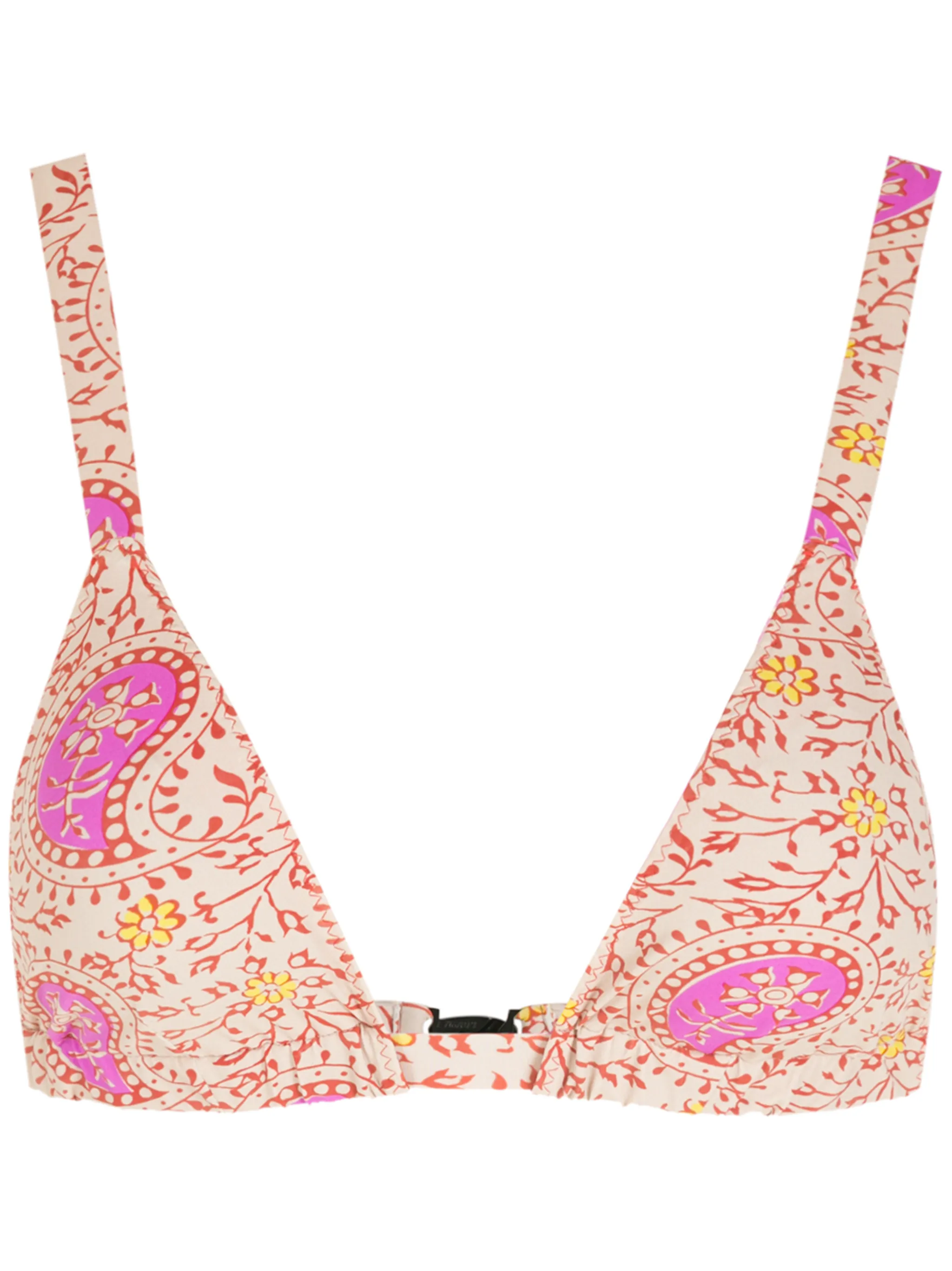 Принт пейсли, треугольная чашка и застежка на зажиме сзади.
