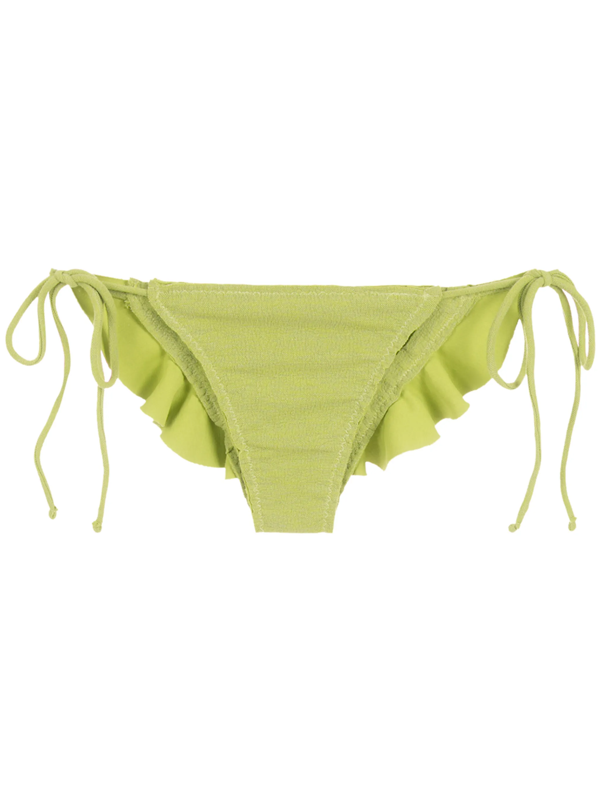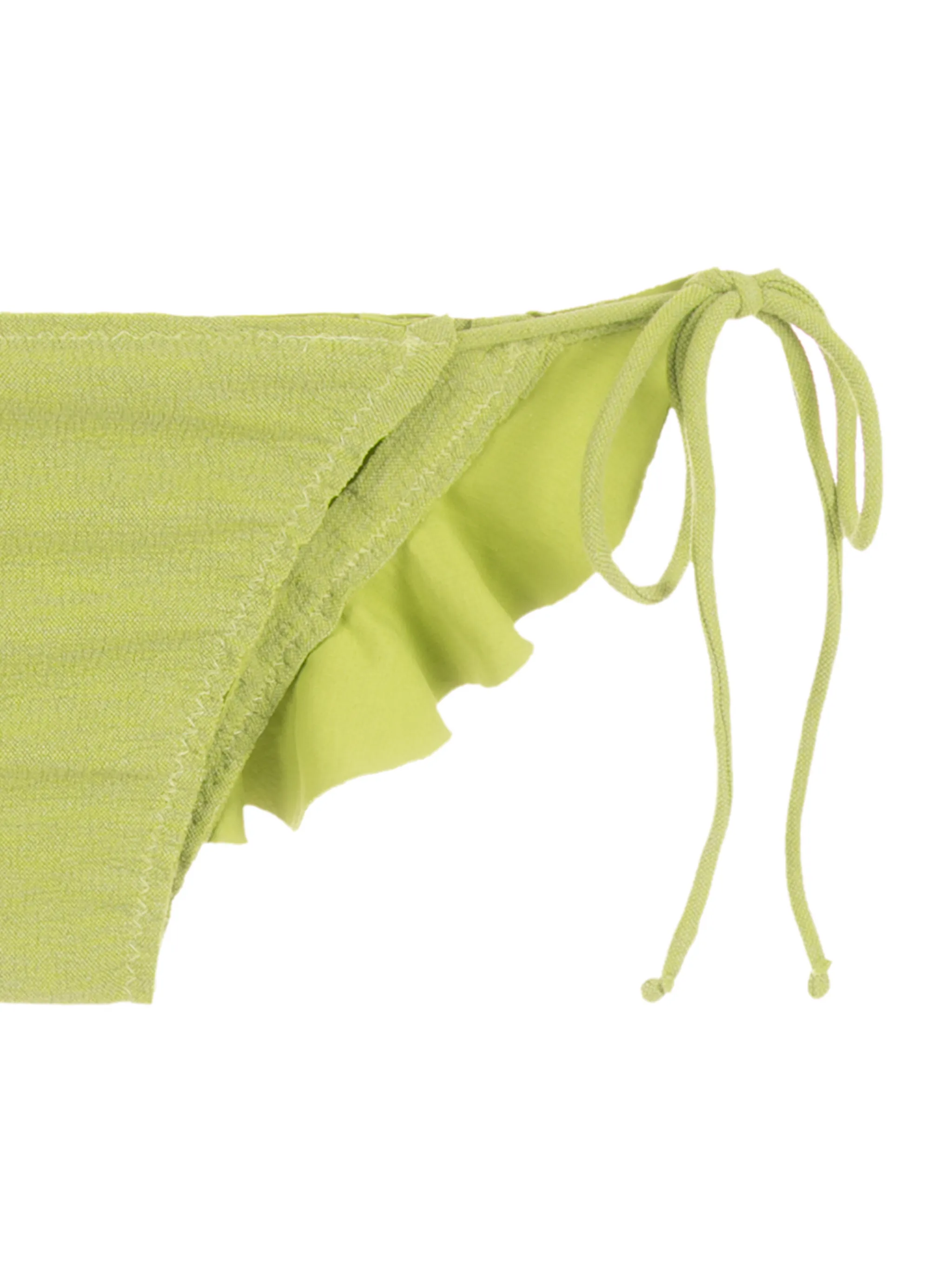 Светло-зеленый, завязки по бокам и вставки с оборками.