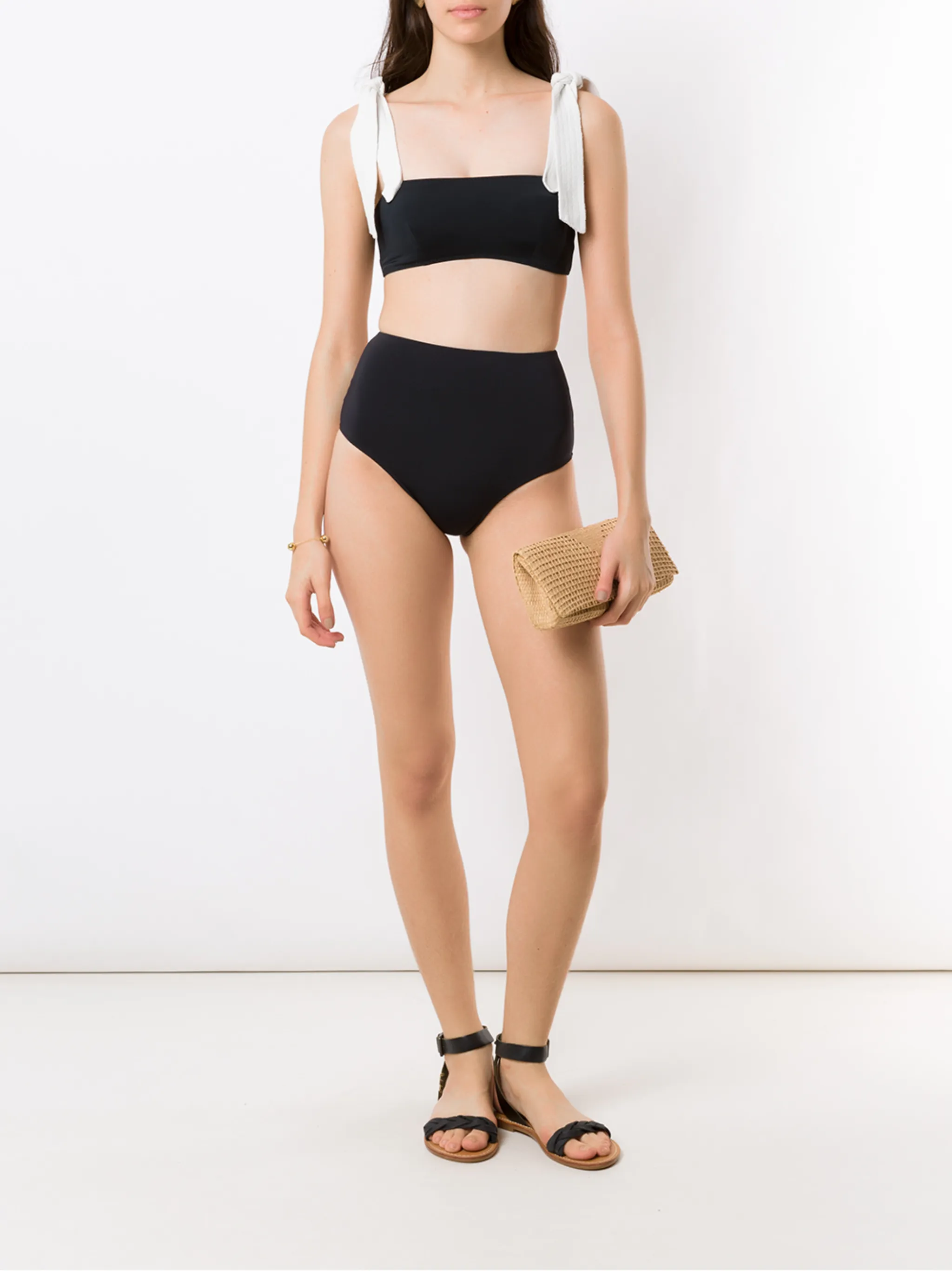Завышенная талия и эластичный пояс. Цвет: черный.