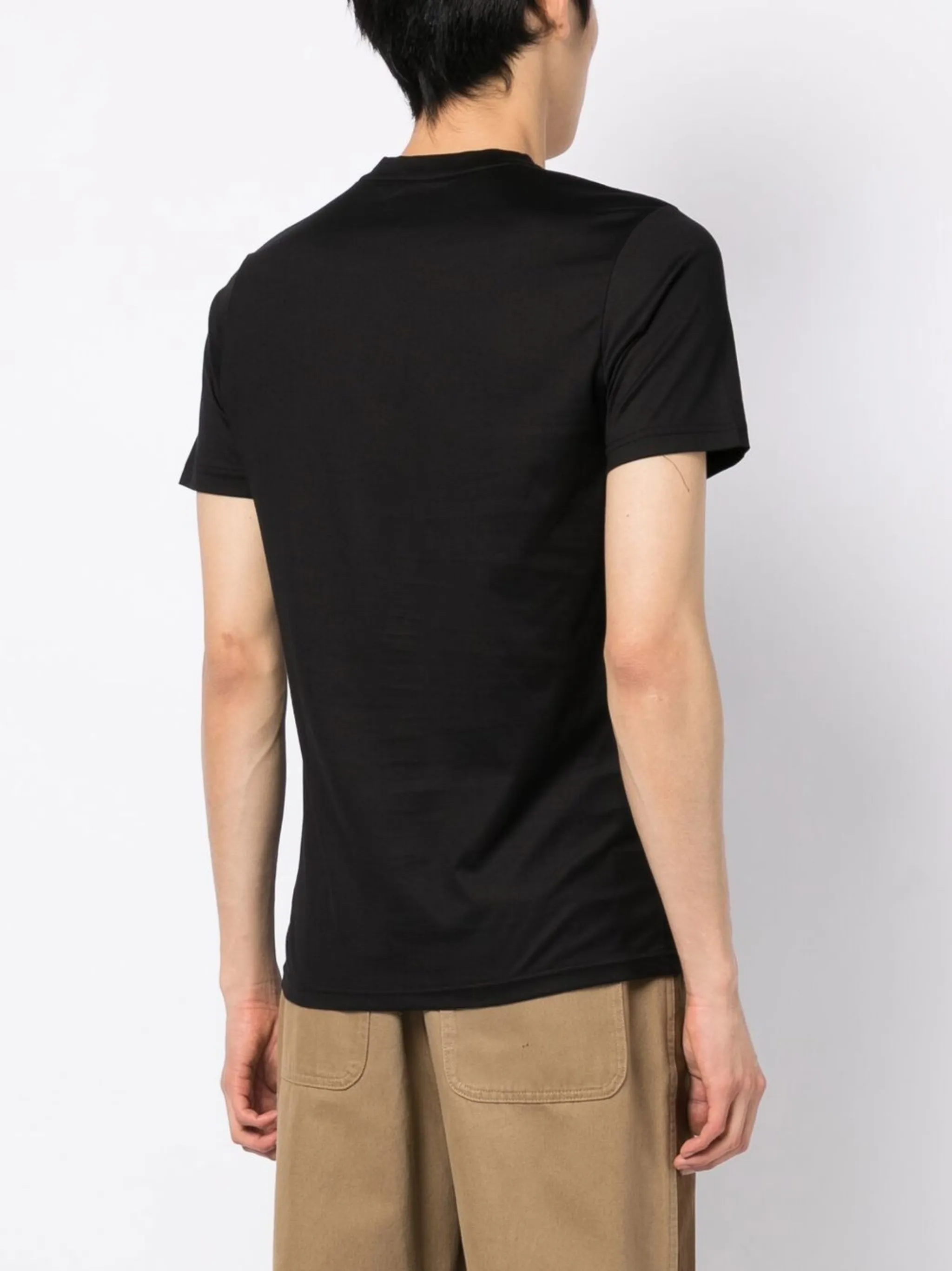Черный, хлопок, графичный принт спереди, круглый вырез, короткие рукава и прямой подол.