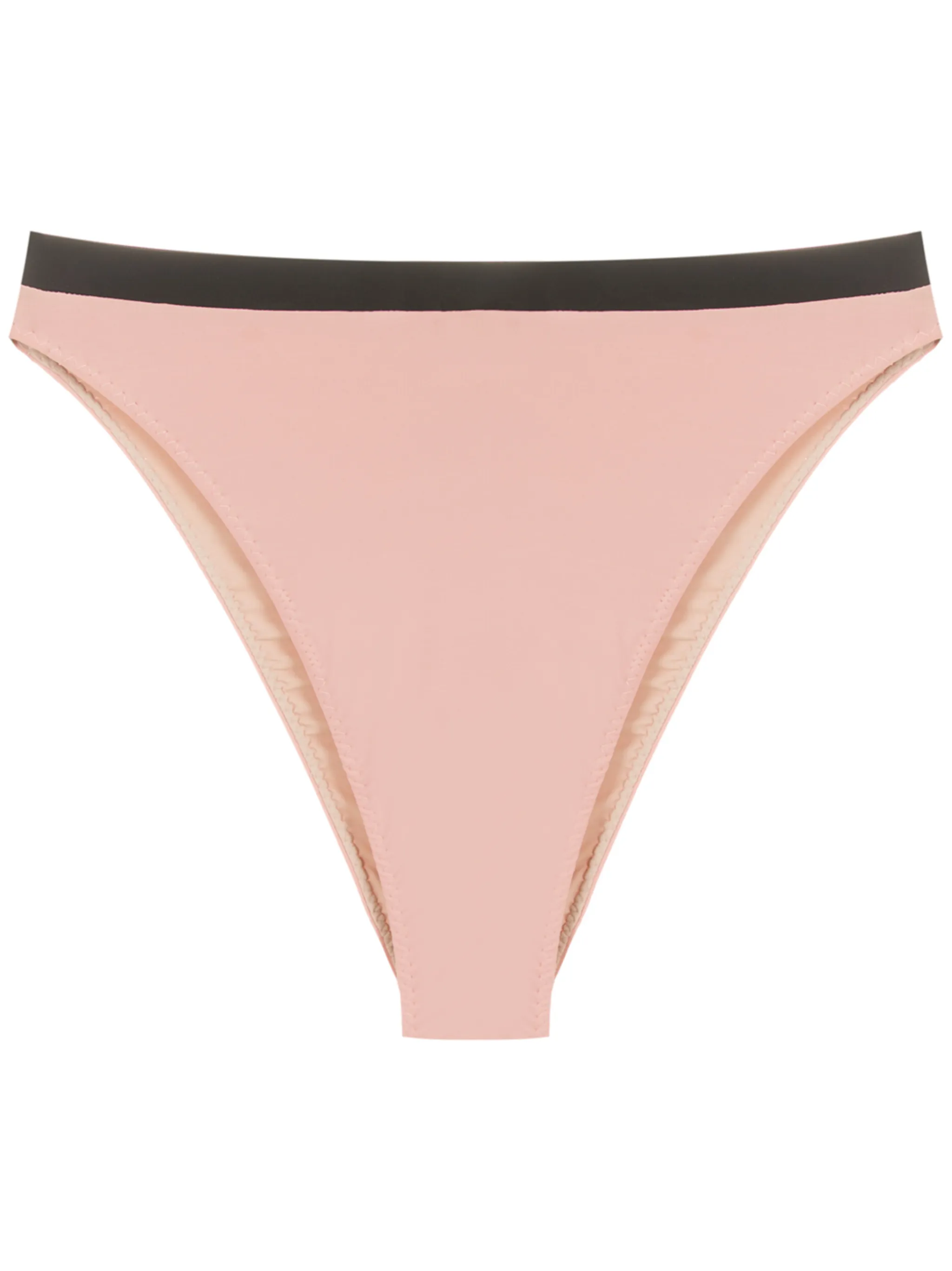 Эластичная модель, завышенная талия и контрастная отделка.