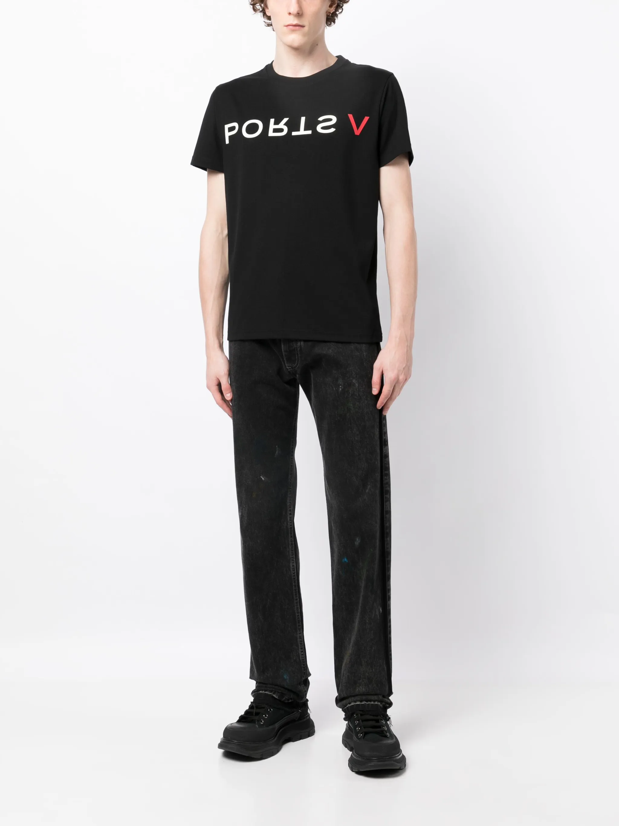 Черный/белый, смесовый хлопок, логотип спереди, круглый вырез, короткие рукава и прямой подол.
