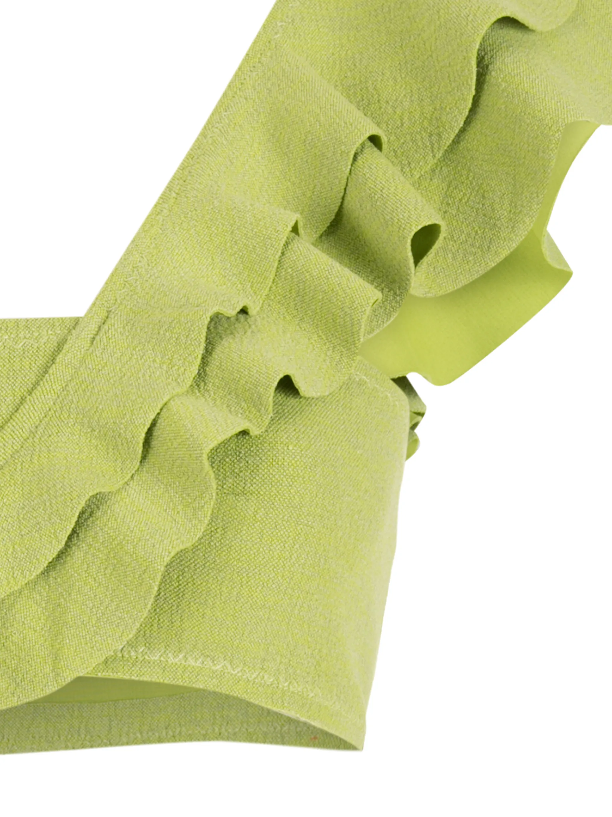 Светло-зеленый, модель на одном плече и вставки с оборками.