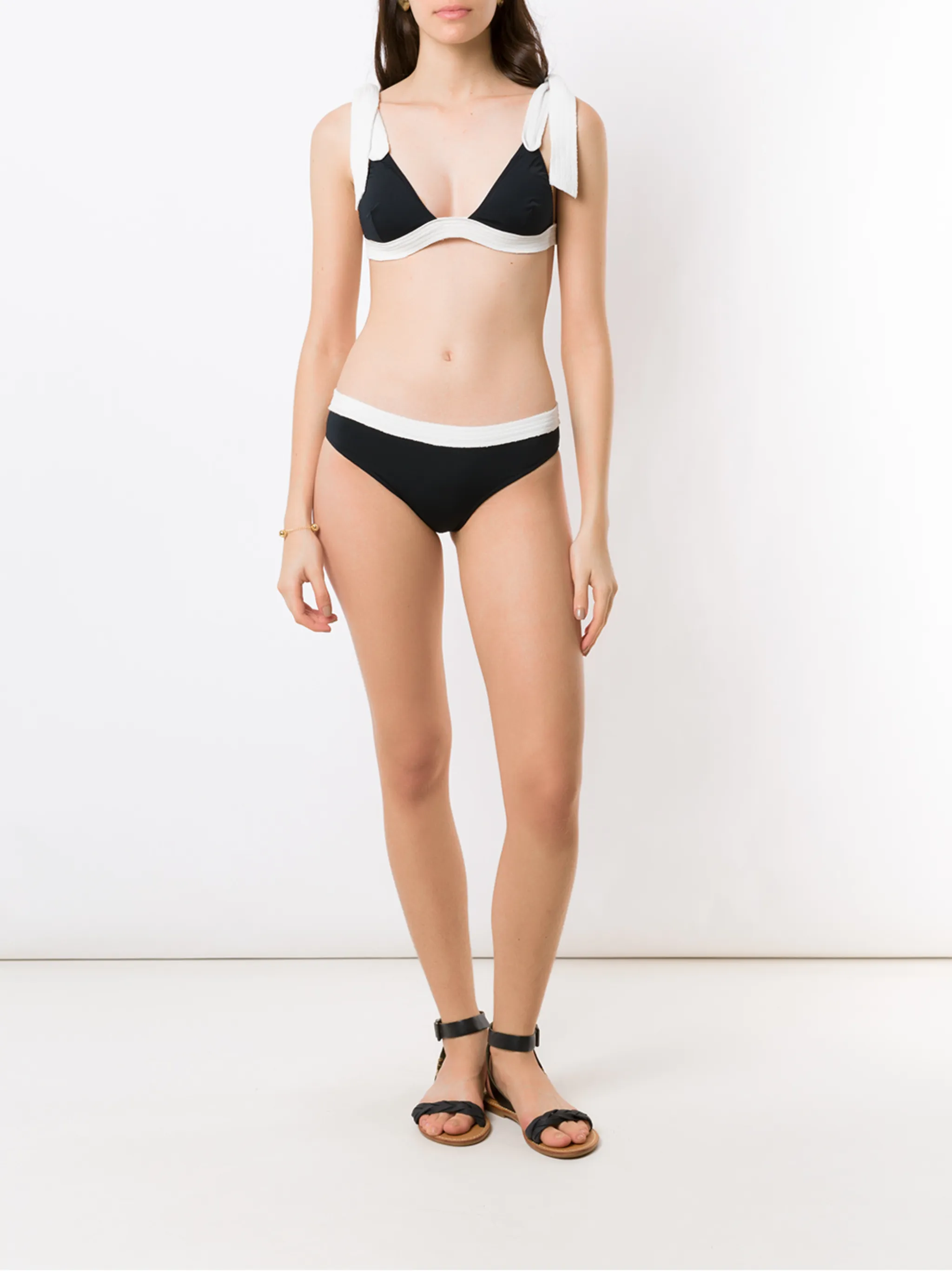 Сочетание двух оттенков, эластичная модель и узкий крой.