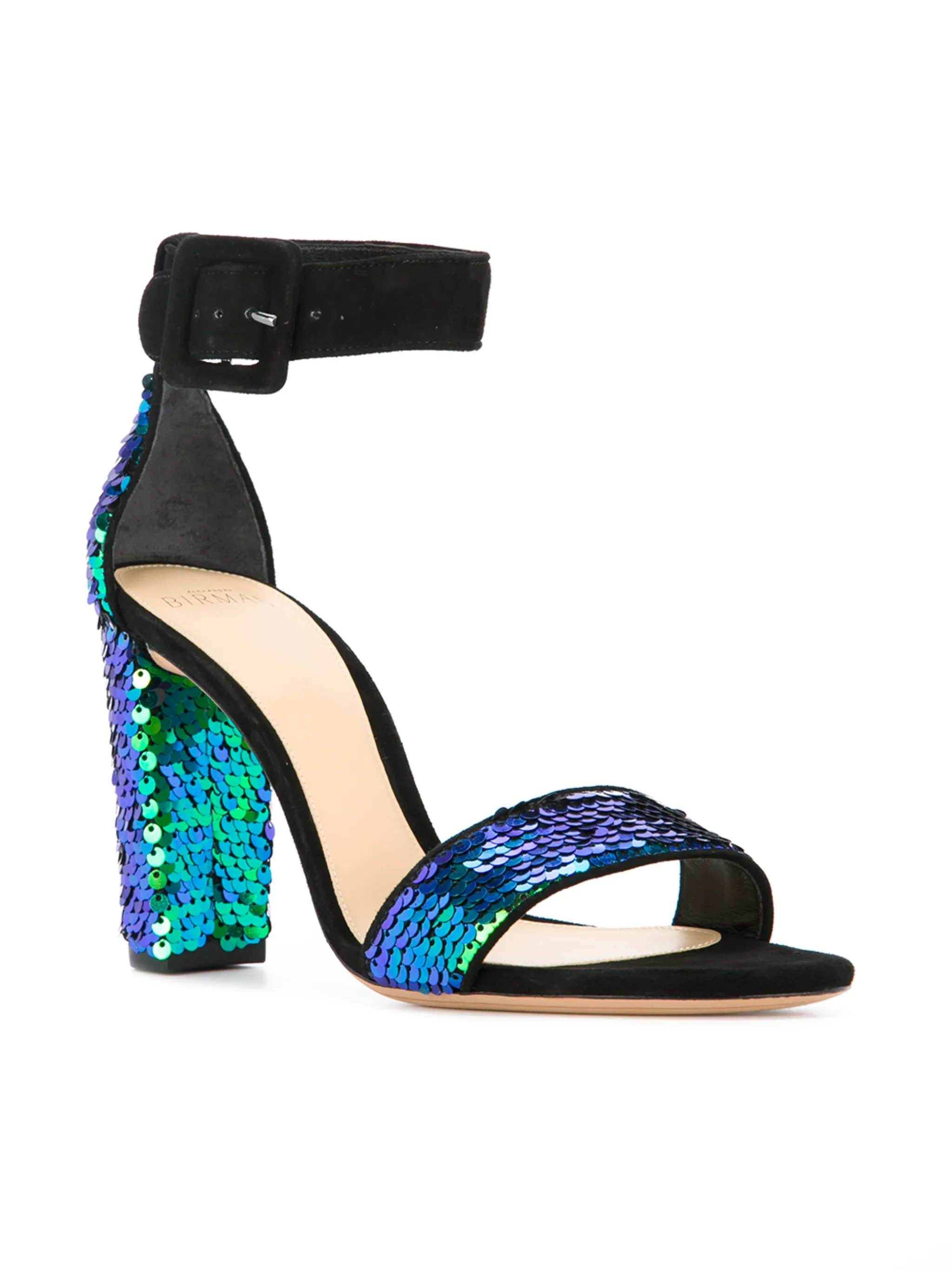 Черные с синим из замши и кожи туфли с пайетками от Alexandre Birman.