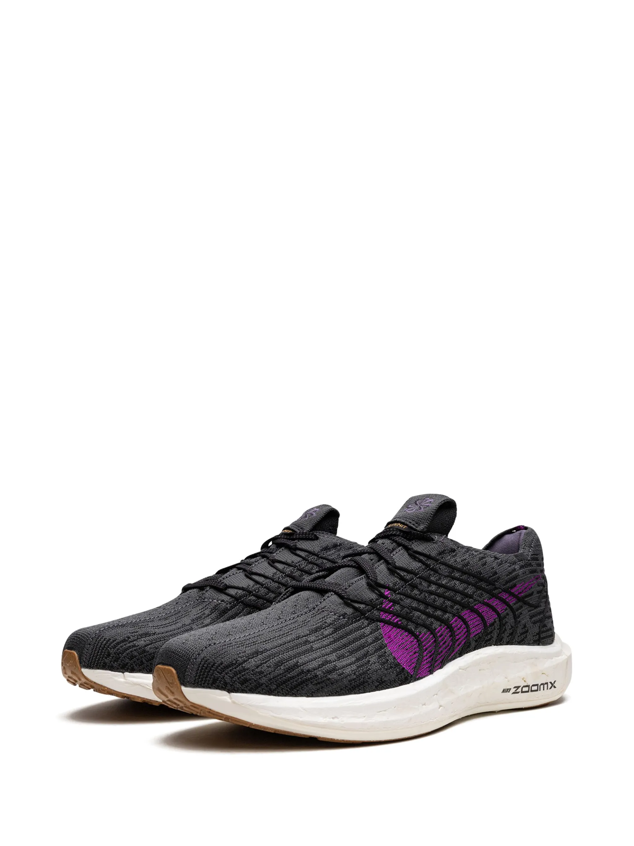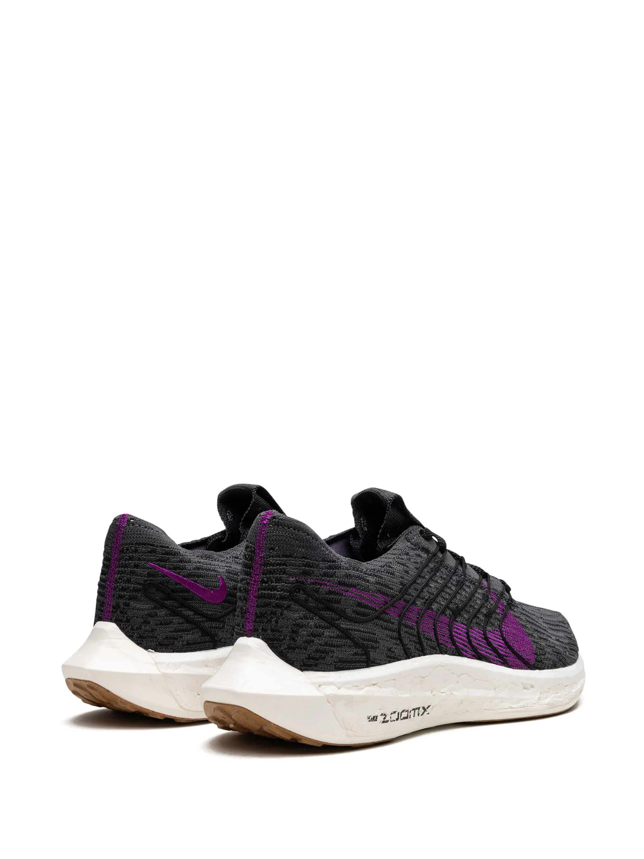 Черный, фиолетовый, сетчатые вставки, логотип Nike Swoosh, закругленный носок, шнуровка спереди, нашивка с логотипом на язычке, стелька с логотипом и резиновая подошва.