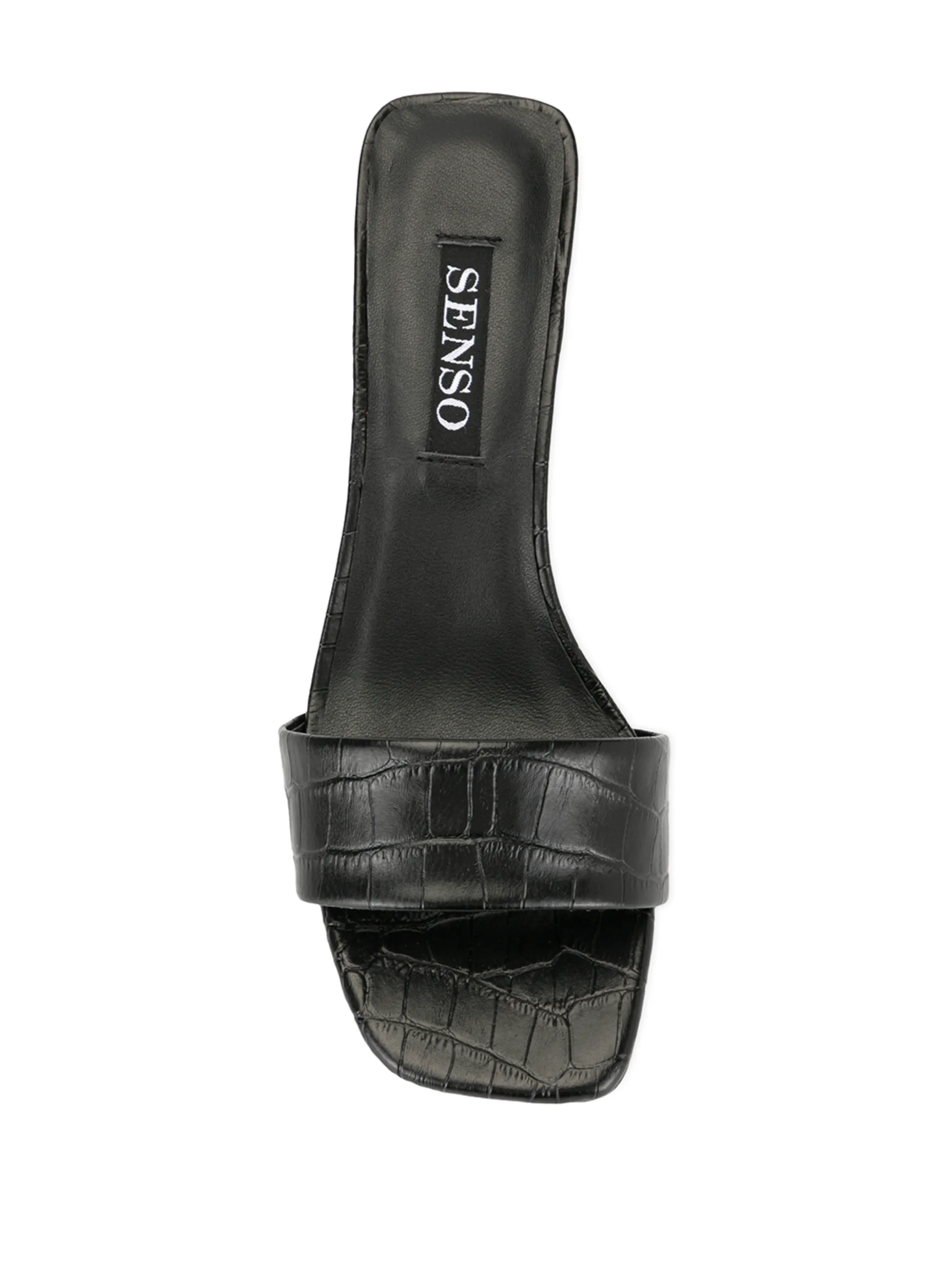 Мюли Maisy I от Senso. Открытый носок, модель слип-он, без застежки, тисненый эффект крокодиловой кожи, фирменная стелька и высокий каблук. Цвет: черный.