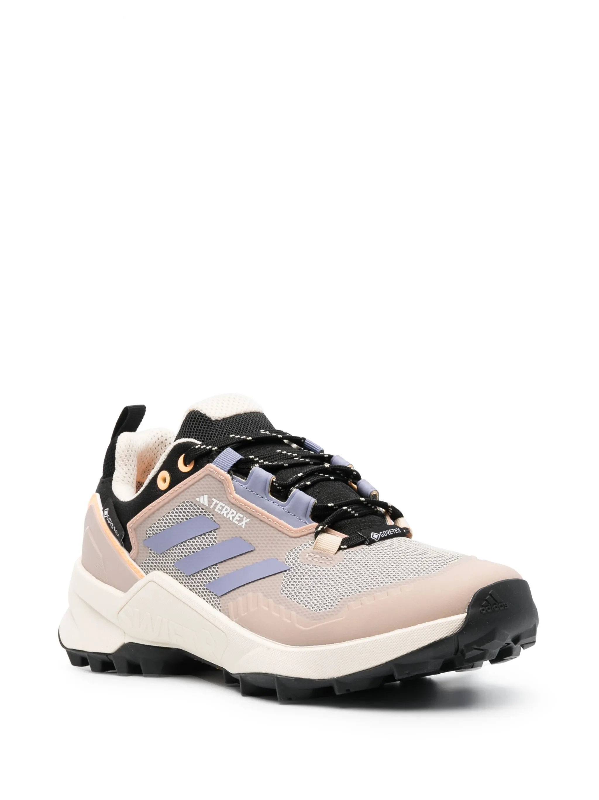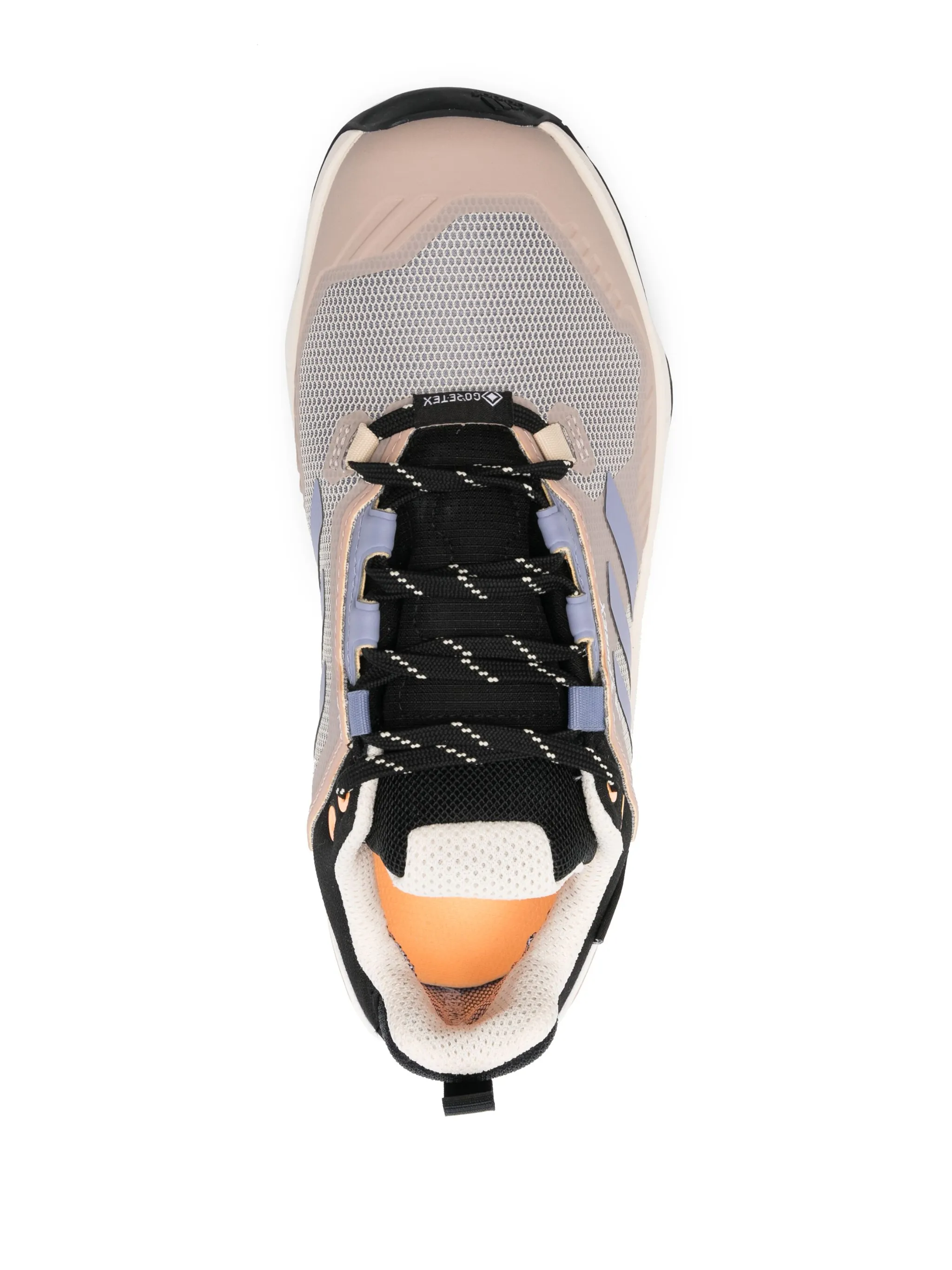 Разноцветный, знаковый логотип 3-Stripes, люверсы, петля для подтягивания сзади, закругленный носок, шнуровка спереди, стелька с логотипом, массивная резиновая подошва и водонепроницаемый материал GORE-TEX.