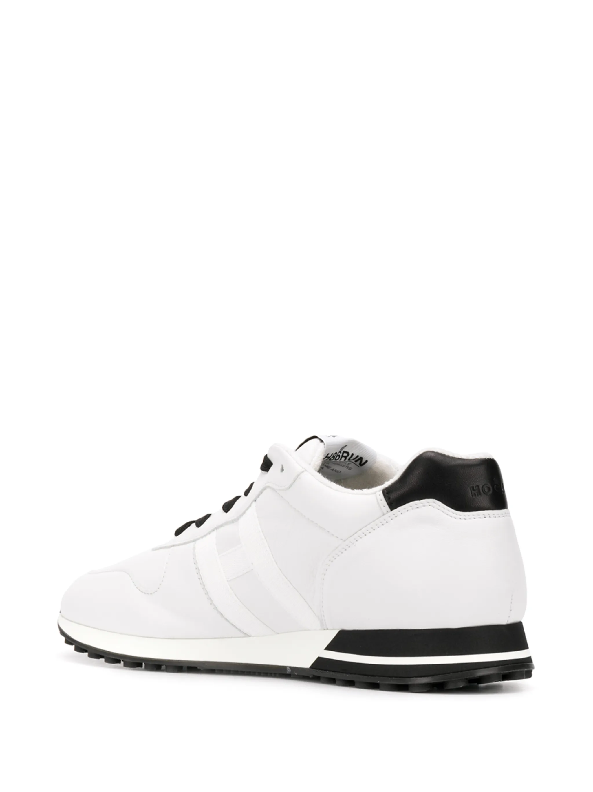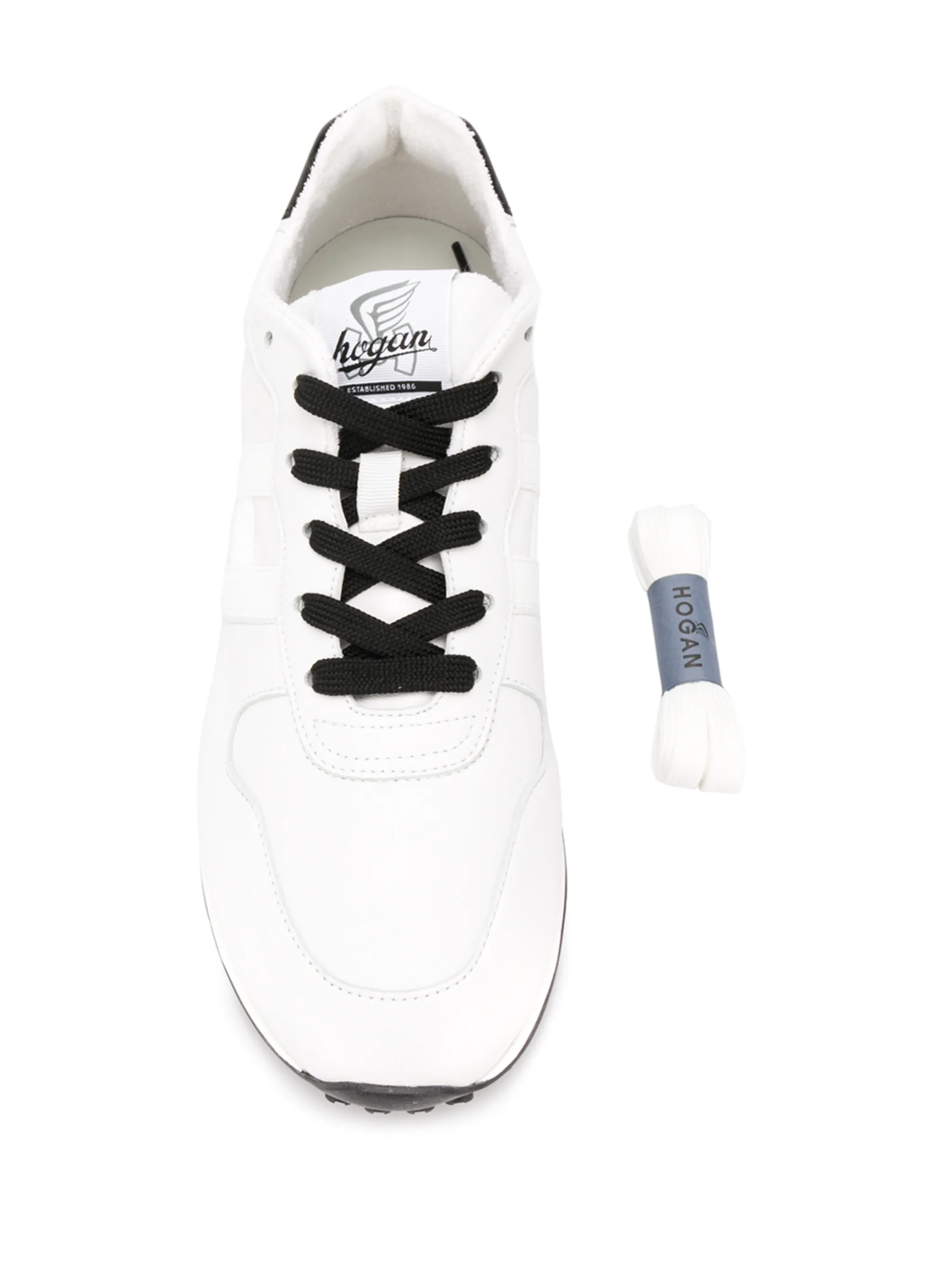 Кроссовки на шнуровке от Hogan (Хоган). Закругленный носок, шнуровка спереди, заплатка с логотипом на язычке, контрастная стойка на каблуке и ребристая резиновая подошва. Цвет: белый.