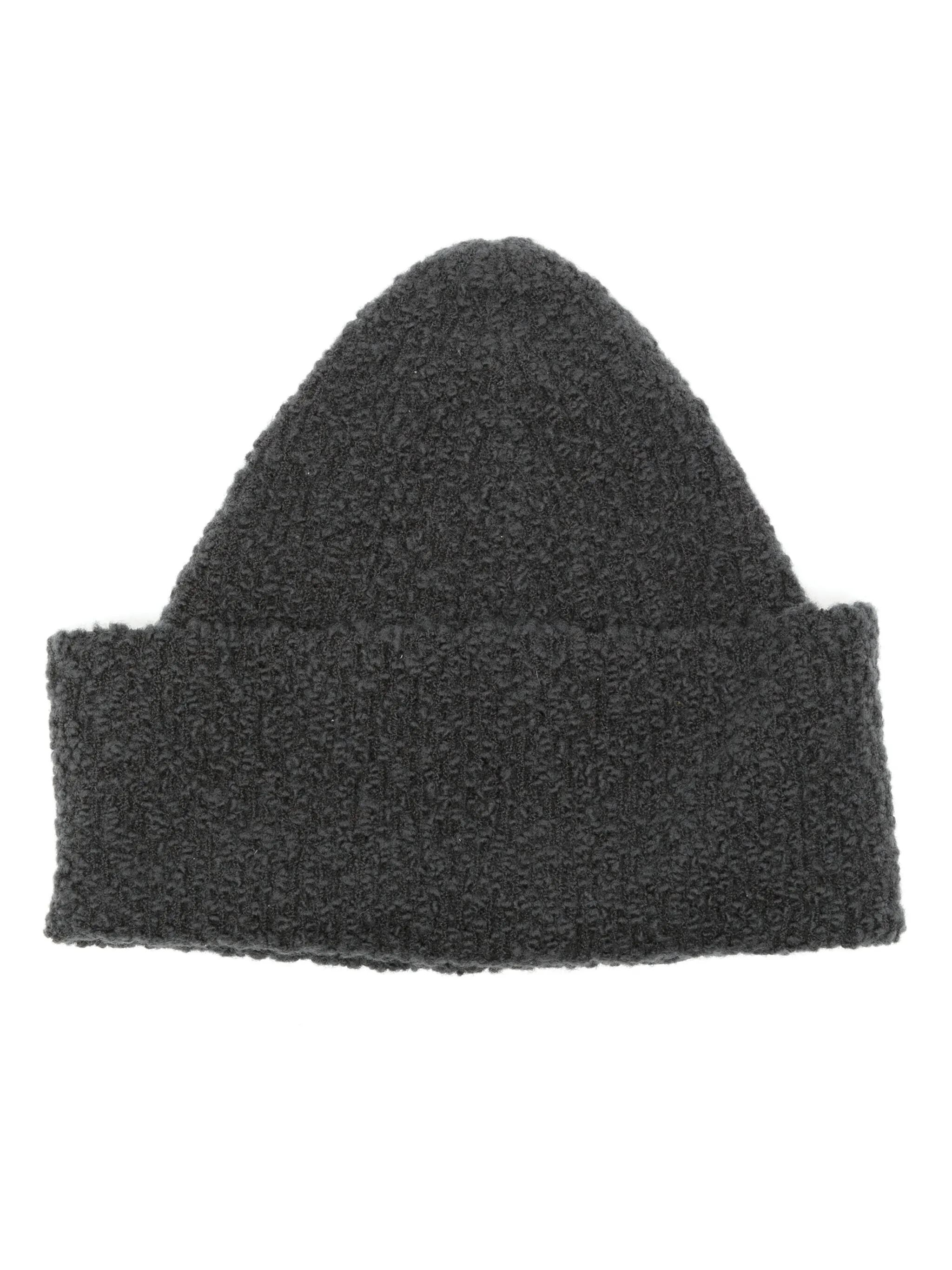 Темно-серый, смесовая шерсть мериноса, трикотажный материал, серебристые заклепки и подвороты.
