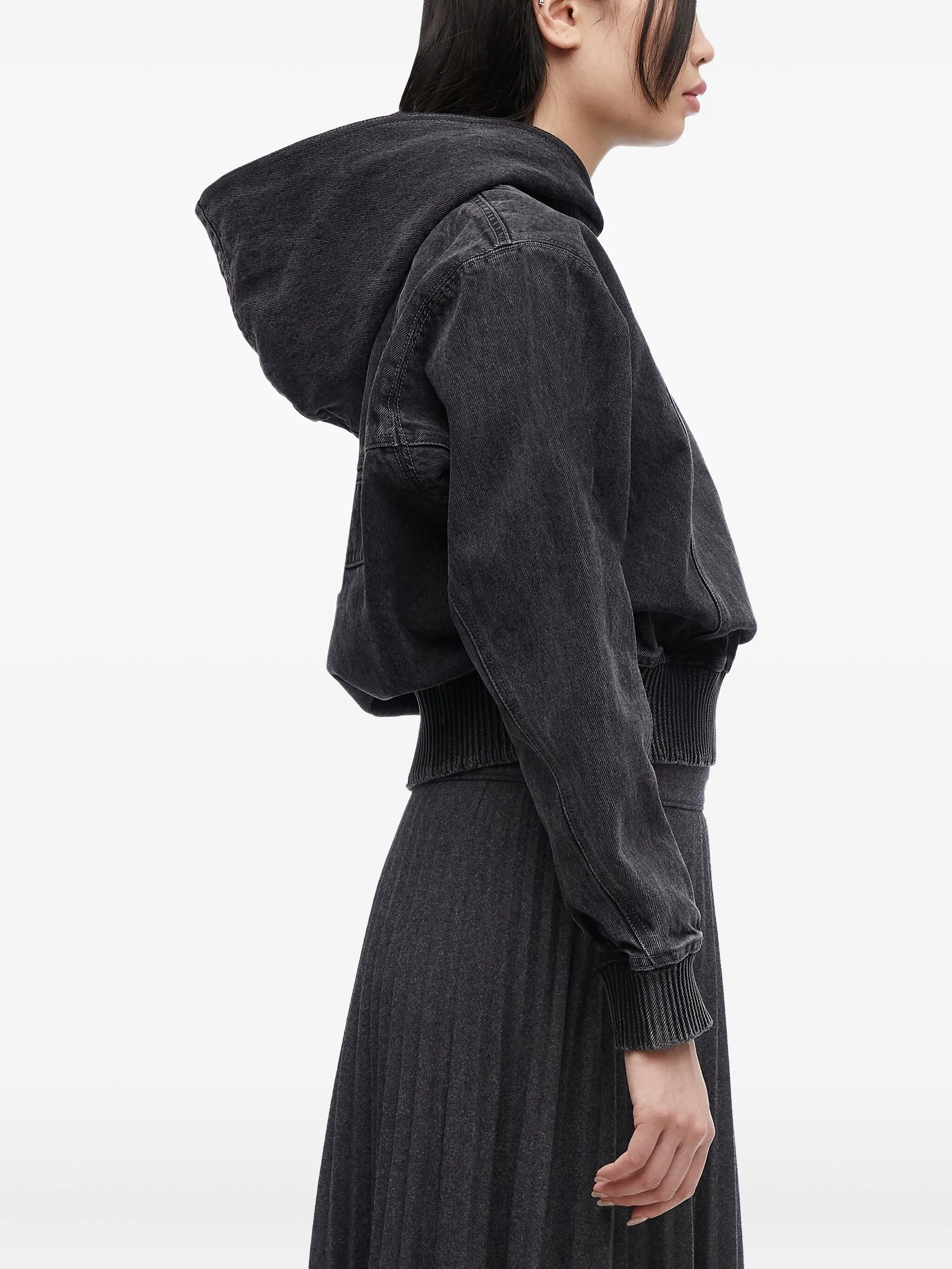 Джинсовое худи с подолом в рубчик 3.1 Phillip Lim, черный 29 387₽