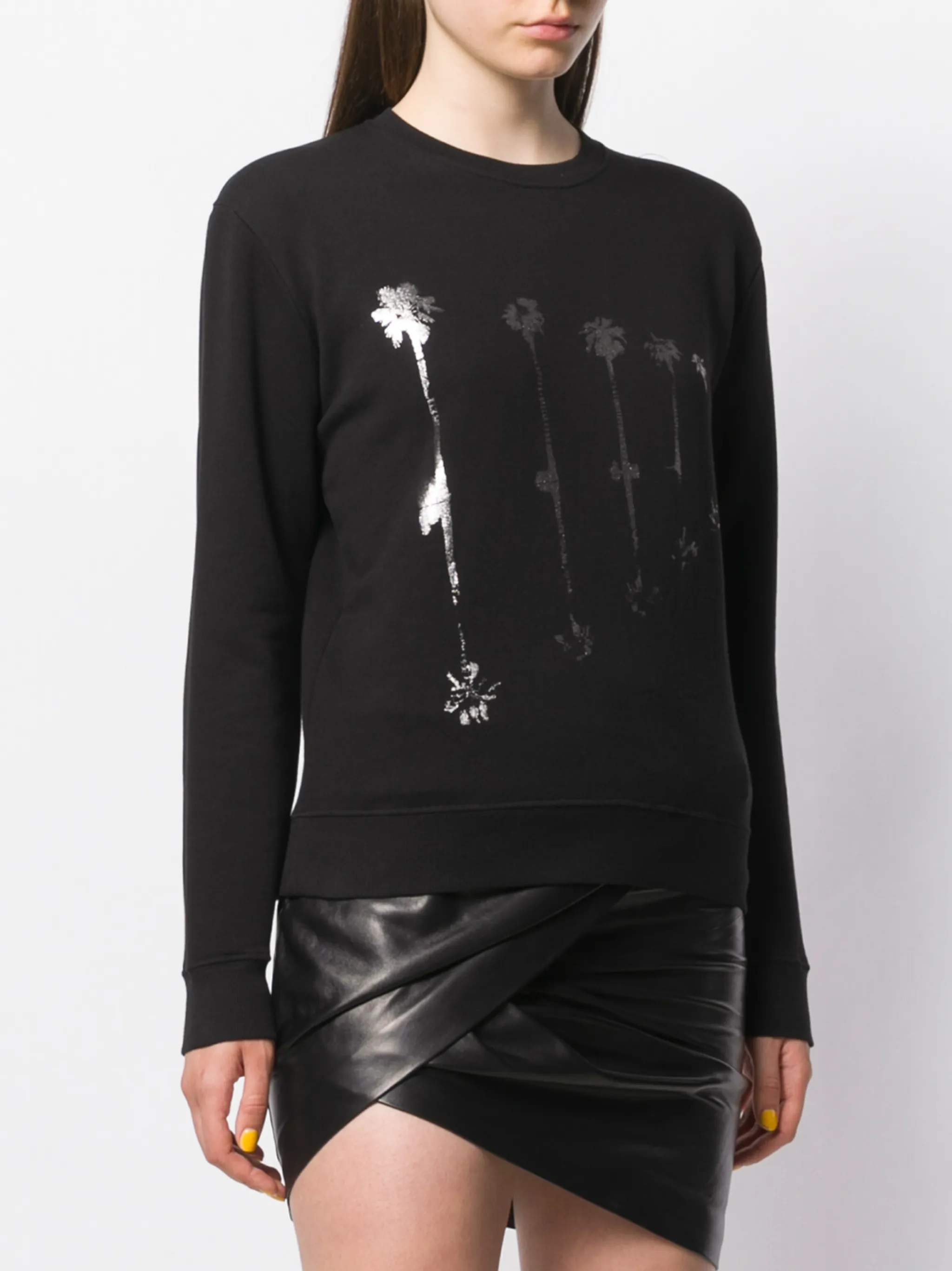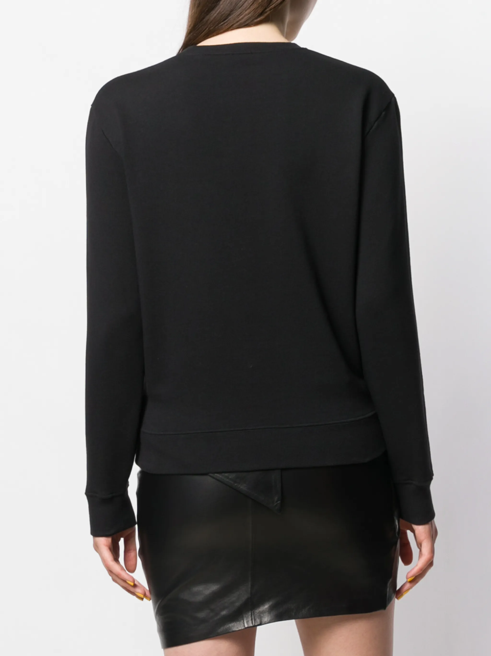 Толстовка с принтом от Saint Laurent (Сен Лоран). Круглый вырез, приспущенные плечи, длинные рукава и подол и манжеты в рубчик. Цвет: черный.