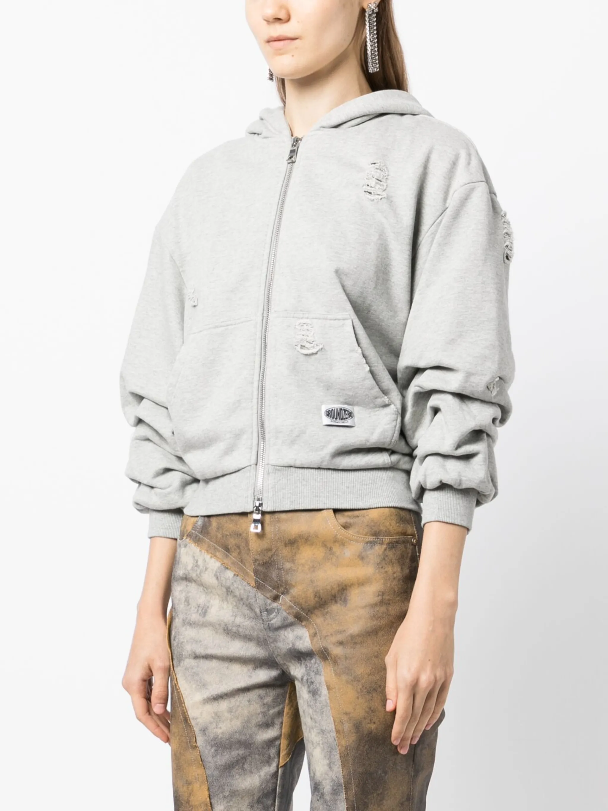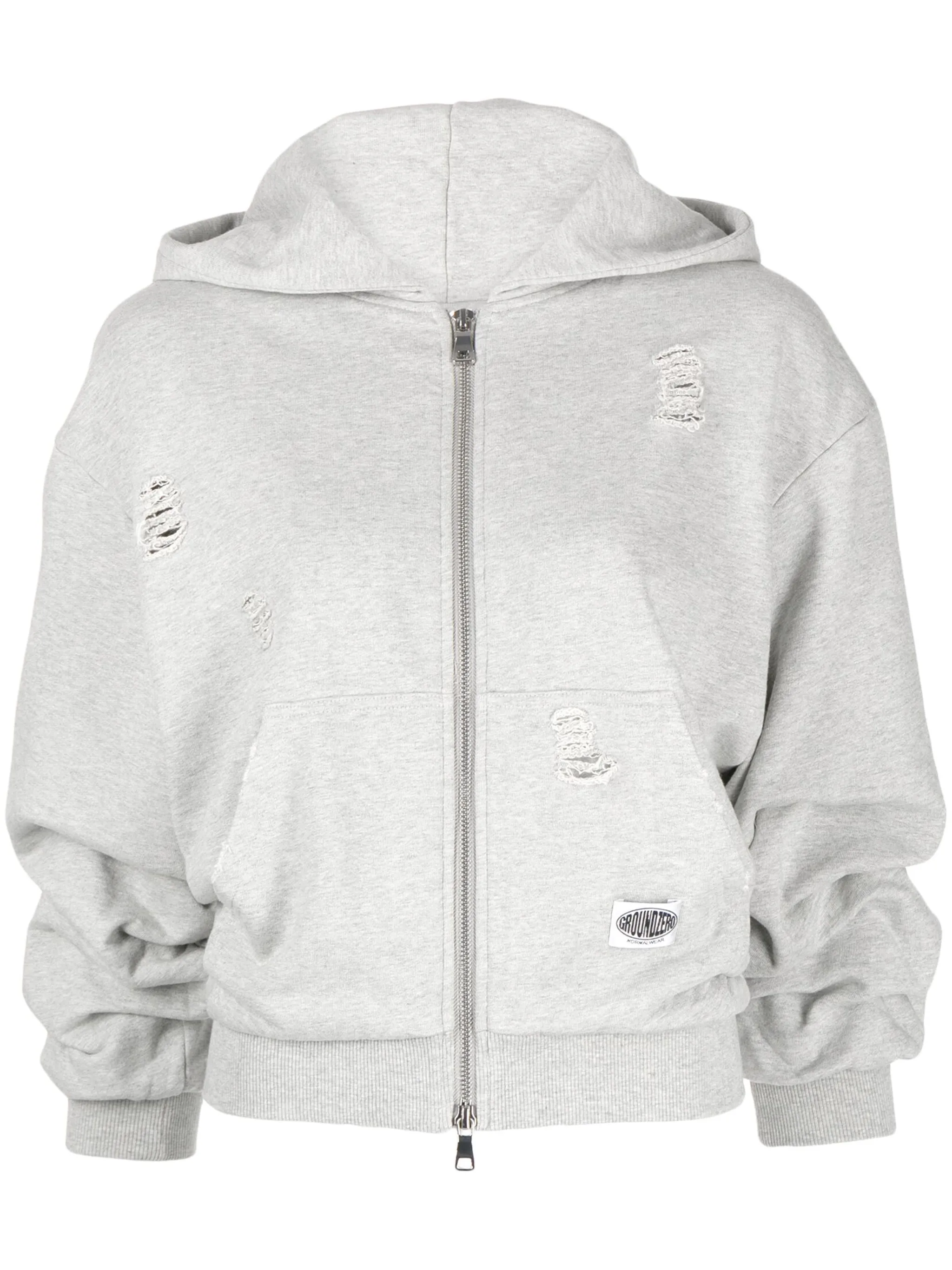 Худи на молнии с эффектом потертости Ground Zero, серый