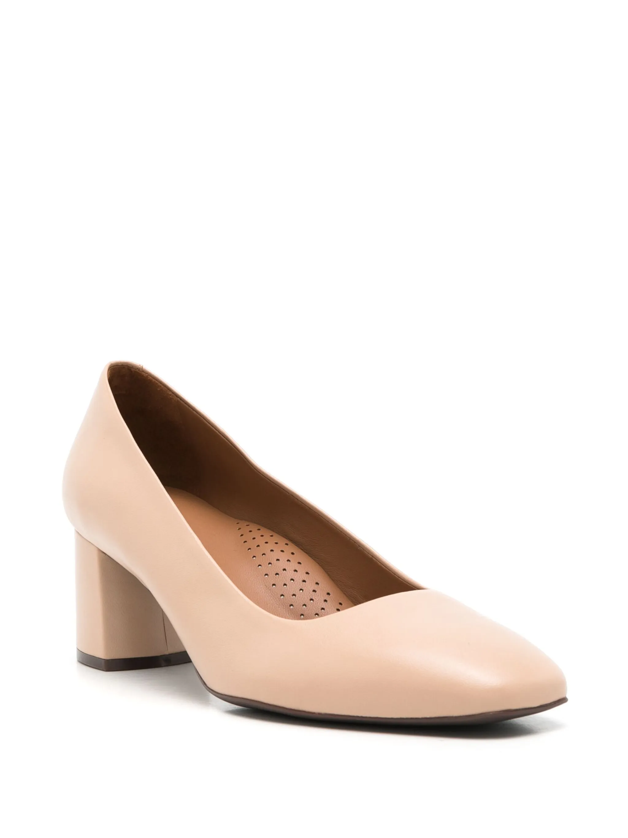 Бежевый, кожа, кожаная стелька с логотипом, квадратный носок, модель без застежки и высокий блочный каблук.