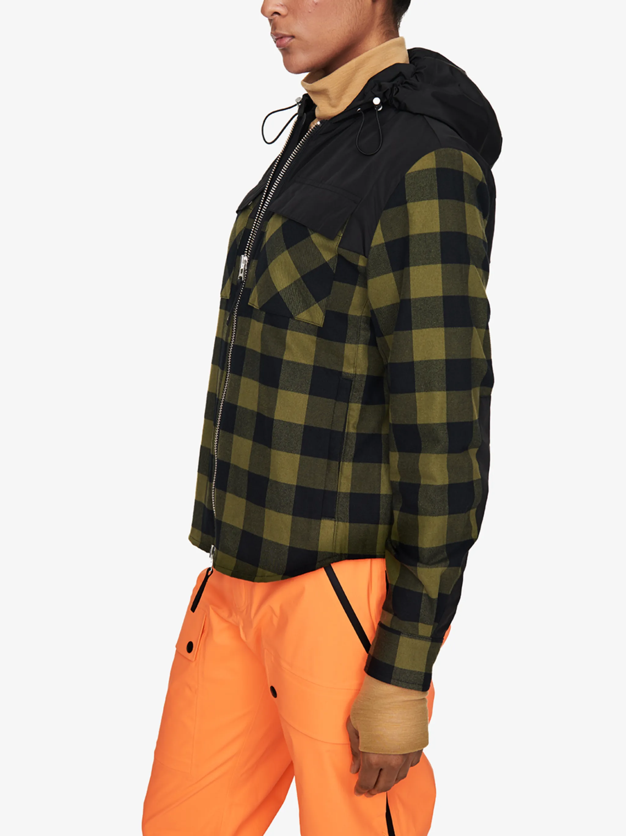 Принт в клетку, классический капюшон, застежка на молнии спереди, длинные рукава, два нагрудных кармана с клапанами и два прорезных кармана по бокам.