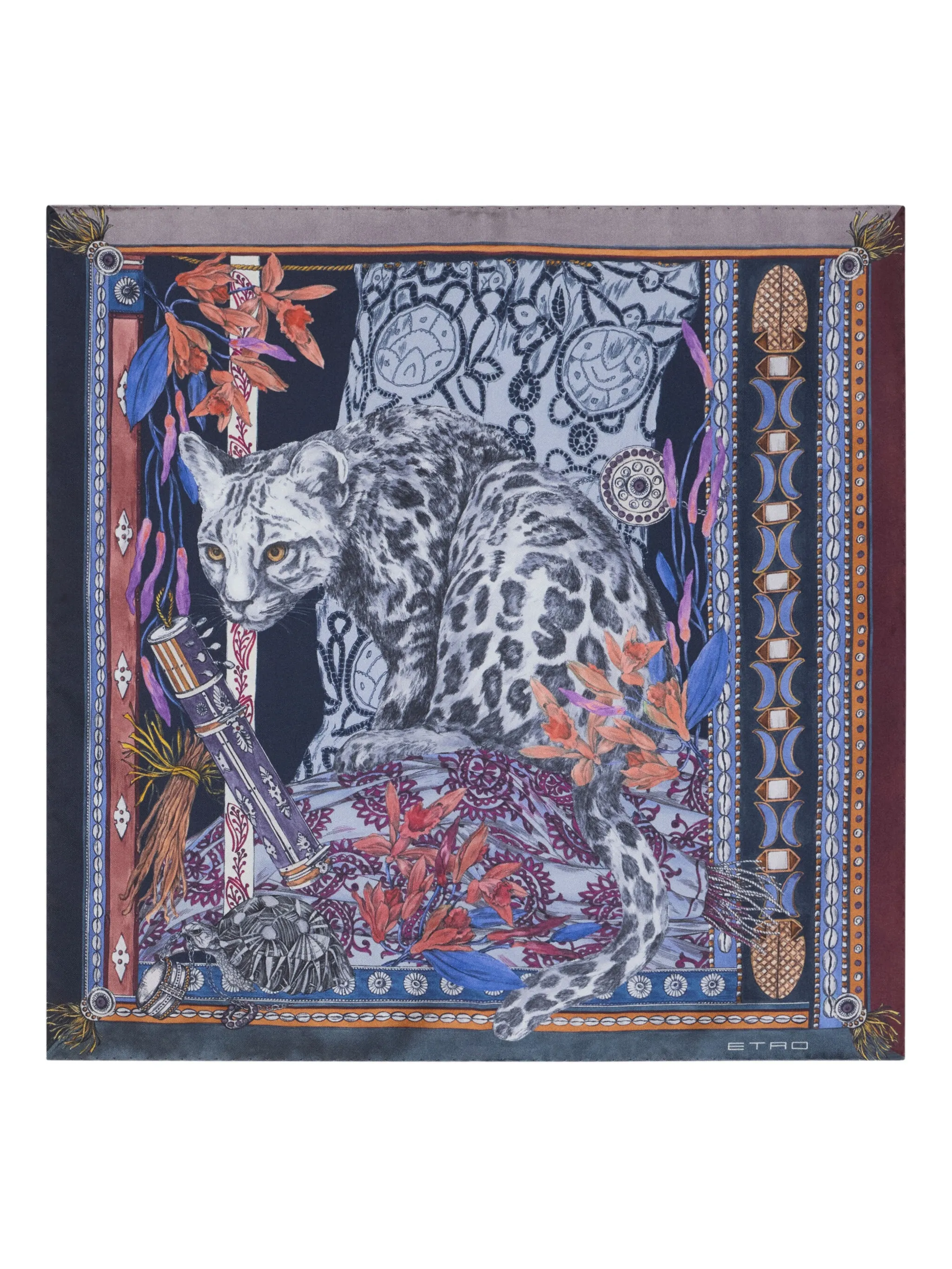 Шелковый платок-паше с леопардовым принтом Etro, синий 22 861₽