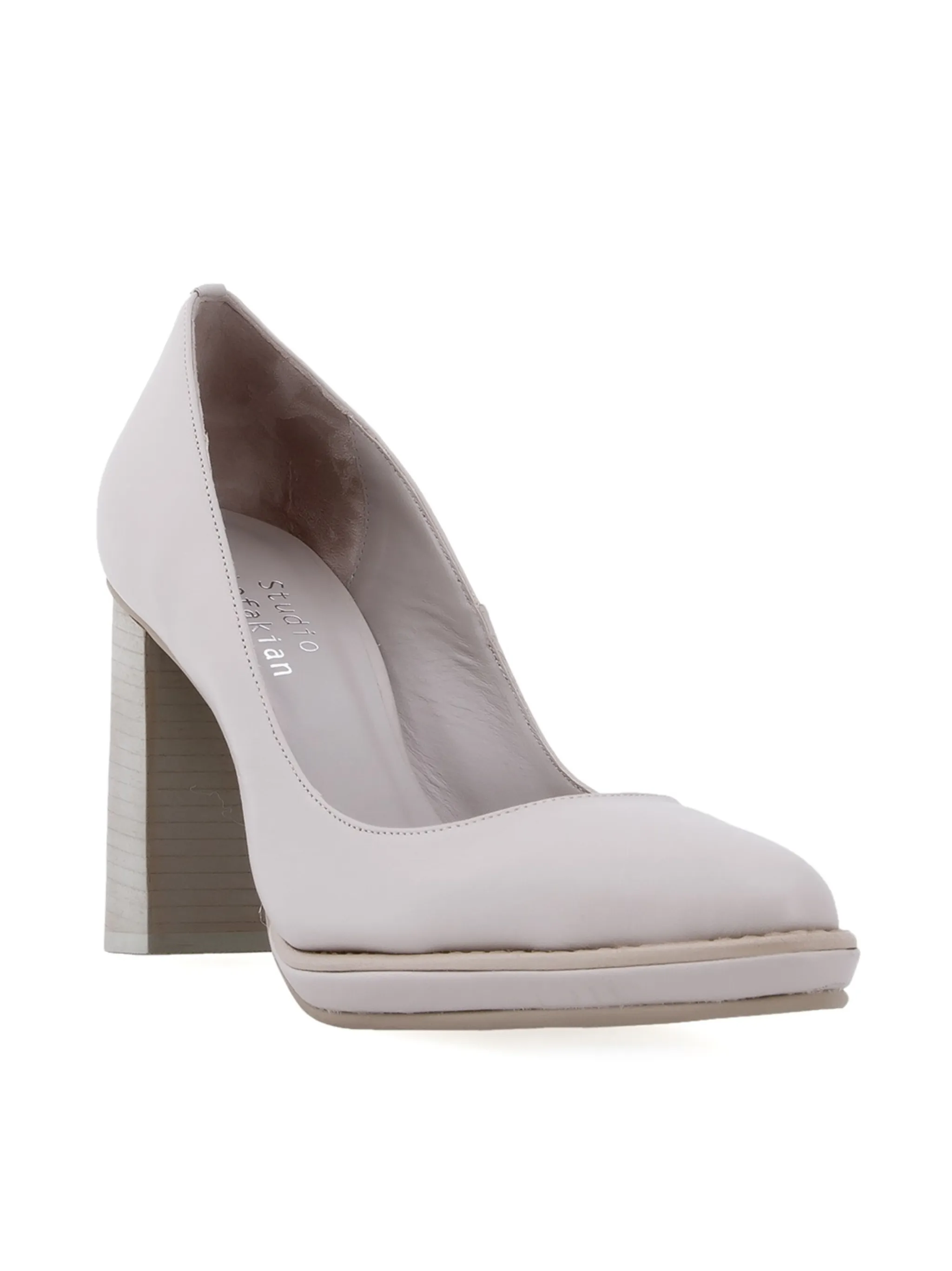 Кожаные лодочки кремового оттенка от STUDIO CHOFAKIAN. Заостренный носок, массивный высокий каблук.