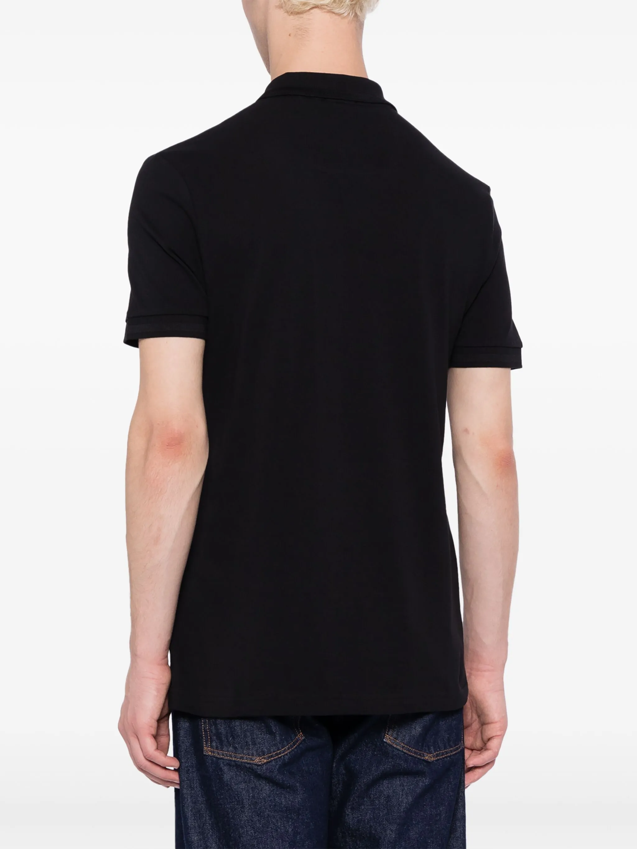 Черный, хлопок, ткань пике, вышитый логотип на груди, воротник поло, планка на пуговицах спереди, короткие рукава и прямой подол.