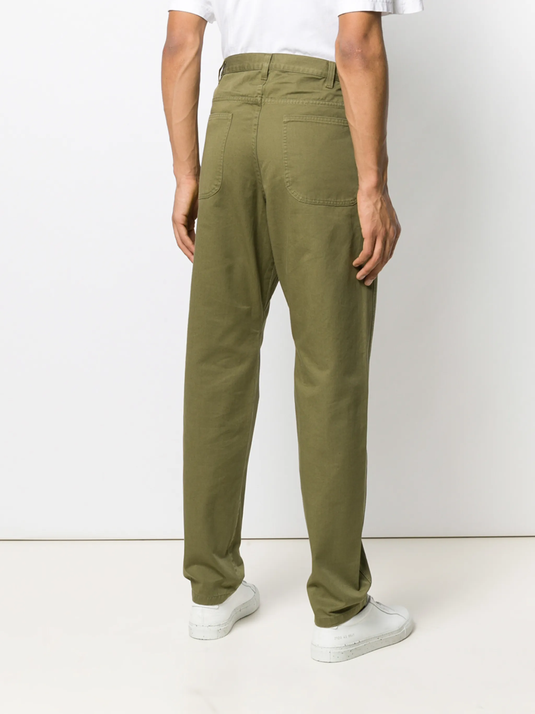 Брюки чинос от A.P.C. Ширинка на молнии с пуговицей, пояс с петлями для ремня и классическая пятикарманная модель. Размер этой модели соответствует стандарту.