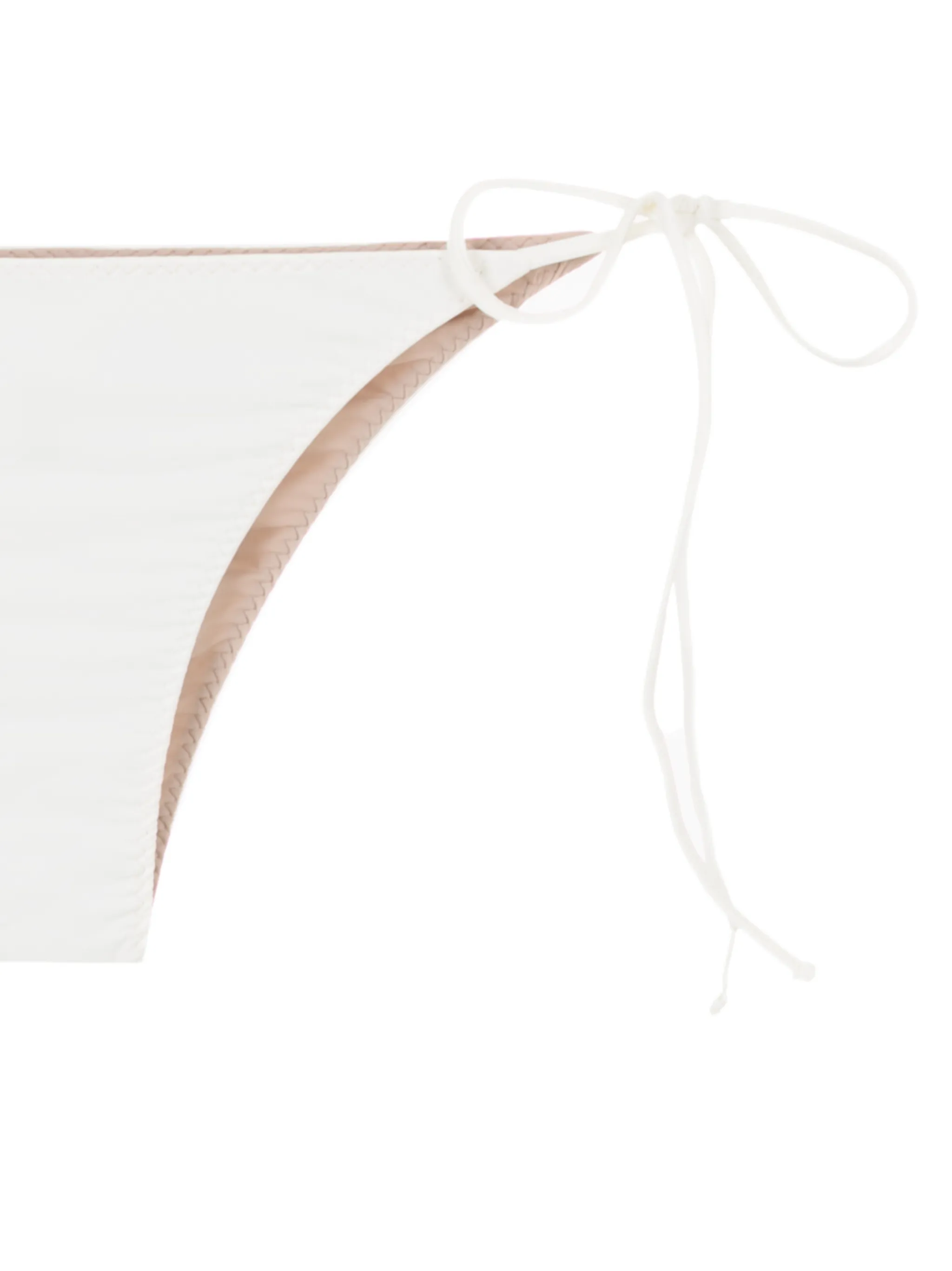 Эластичная ткань, завязки по бокам, низкая посадка и тональная строчка.