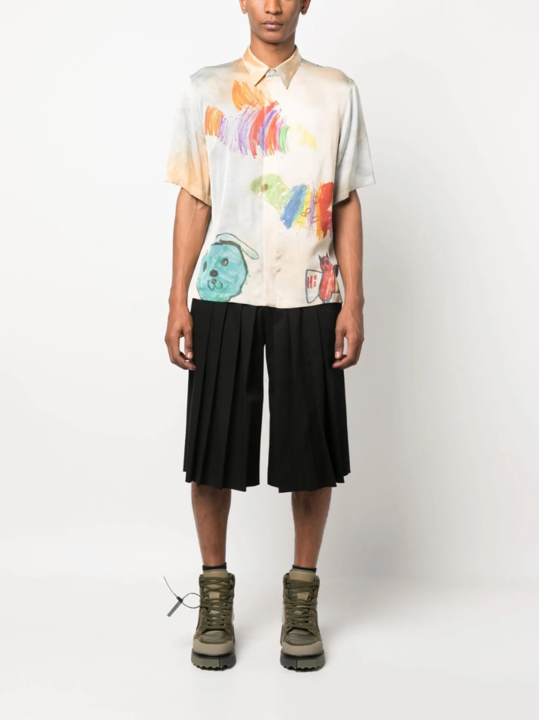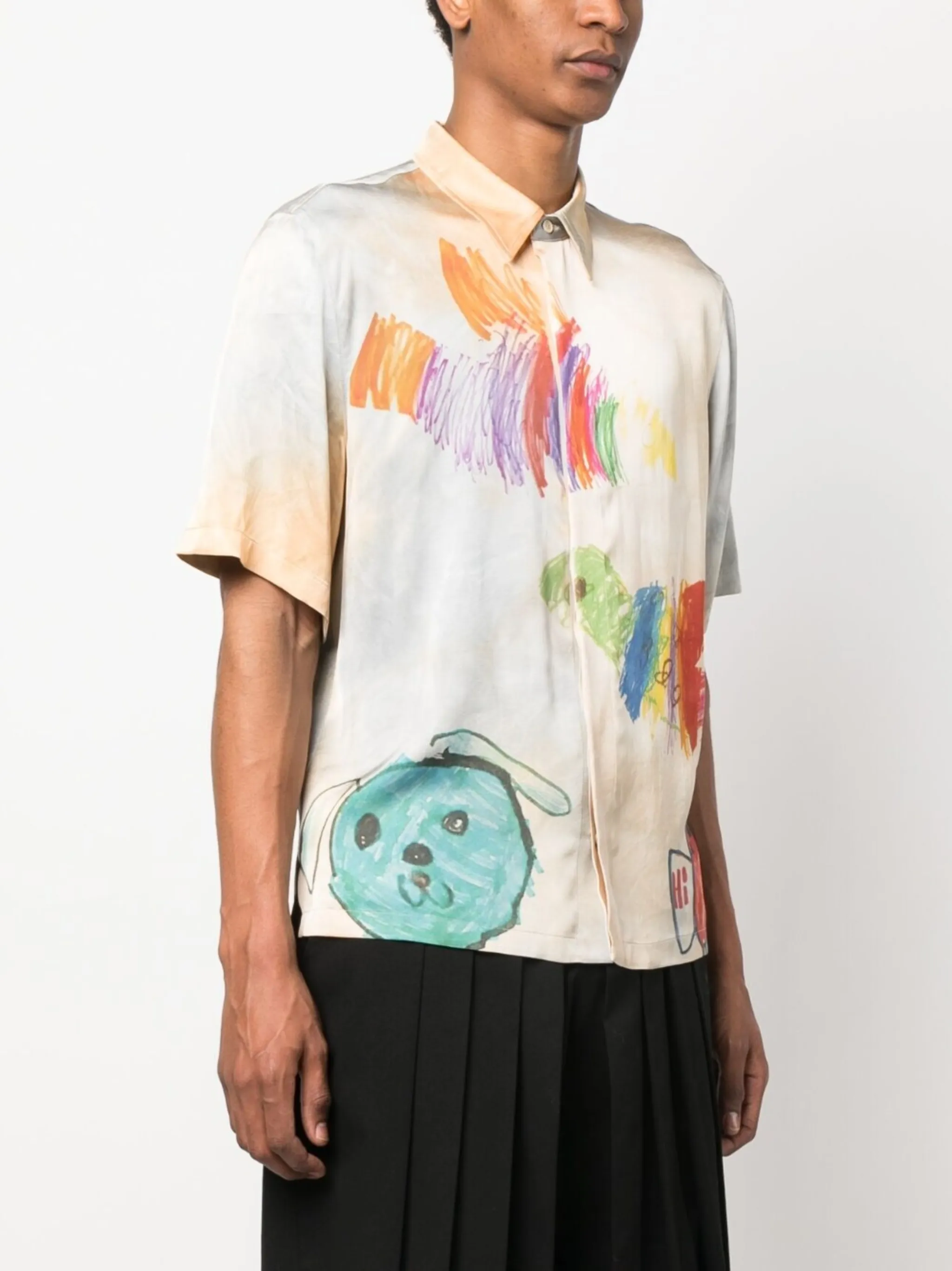 Разноцветный, мультипликационный принт, логотип Arrows, классический воротник, застежка на пуговицах спереди, короткие рукава и прямой подол.