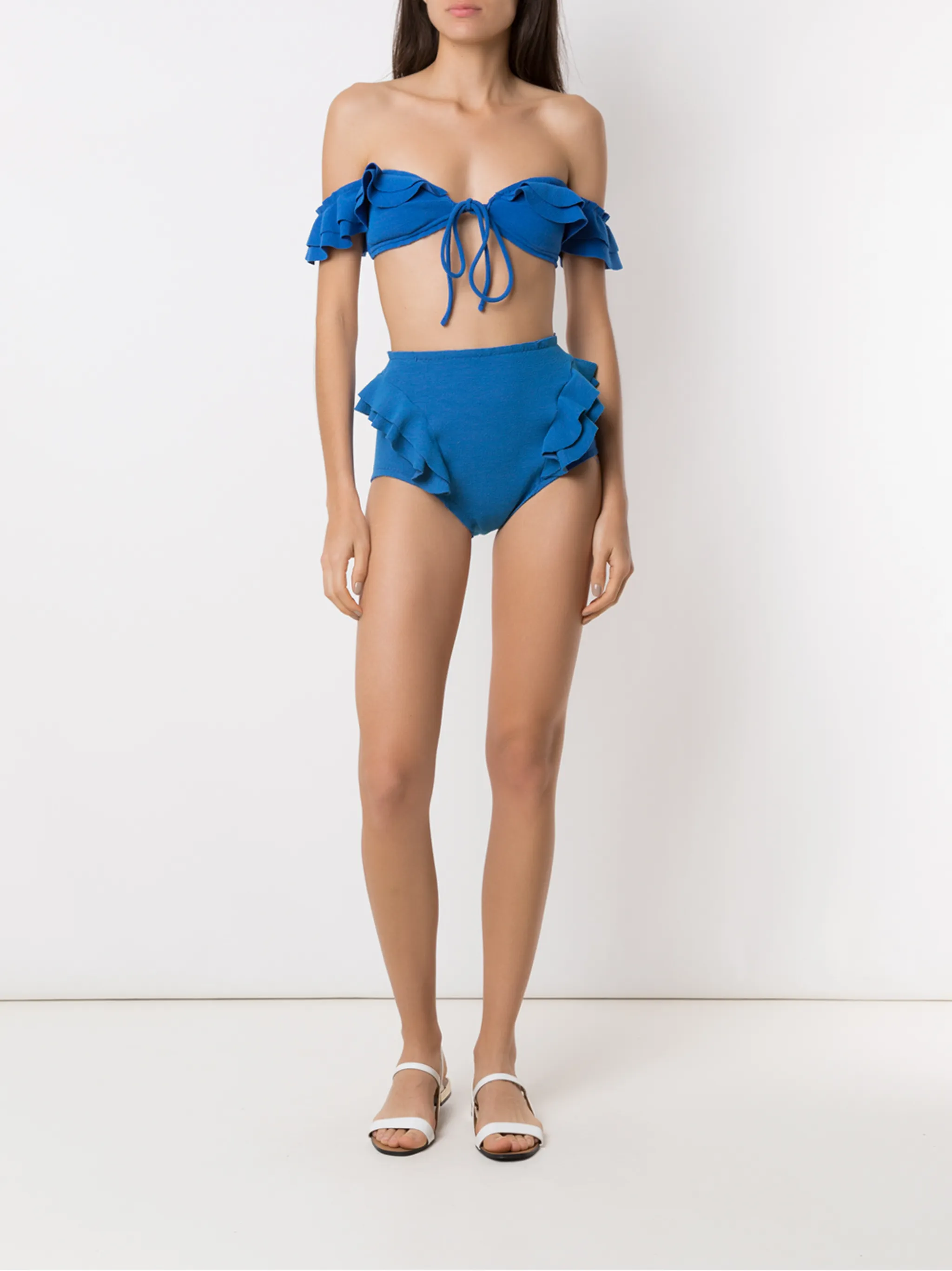 Плавки бикини Hopi от Clube Bossa. Завышенная талия, отделка с гофром, эластичная отделка и фактурная модель. Цвет: синий.