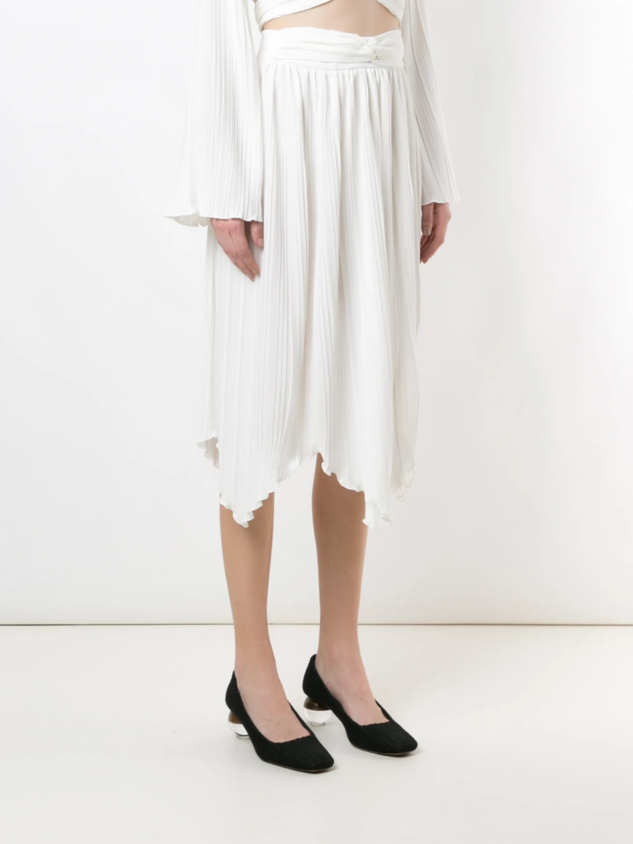 Юбка миди Camelia от Olympiah. Завышенная посадка, изогнутая деталь, тонально-градиентный эффект, средней длины, асимметричный подол и прямой крой. Цвет: белый.