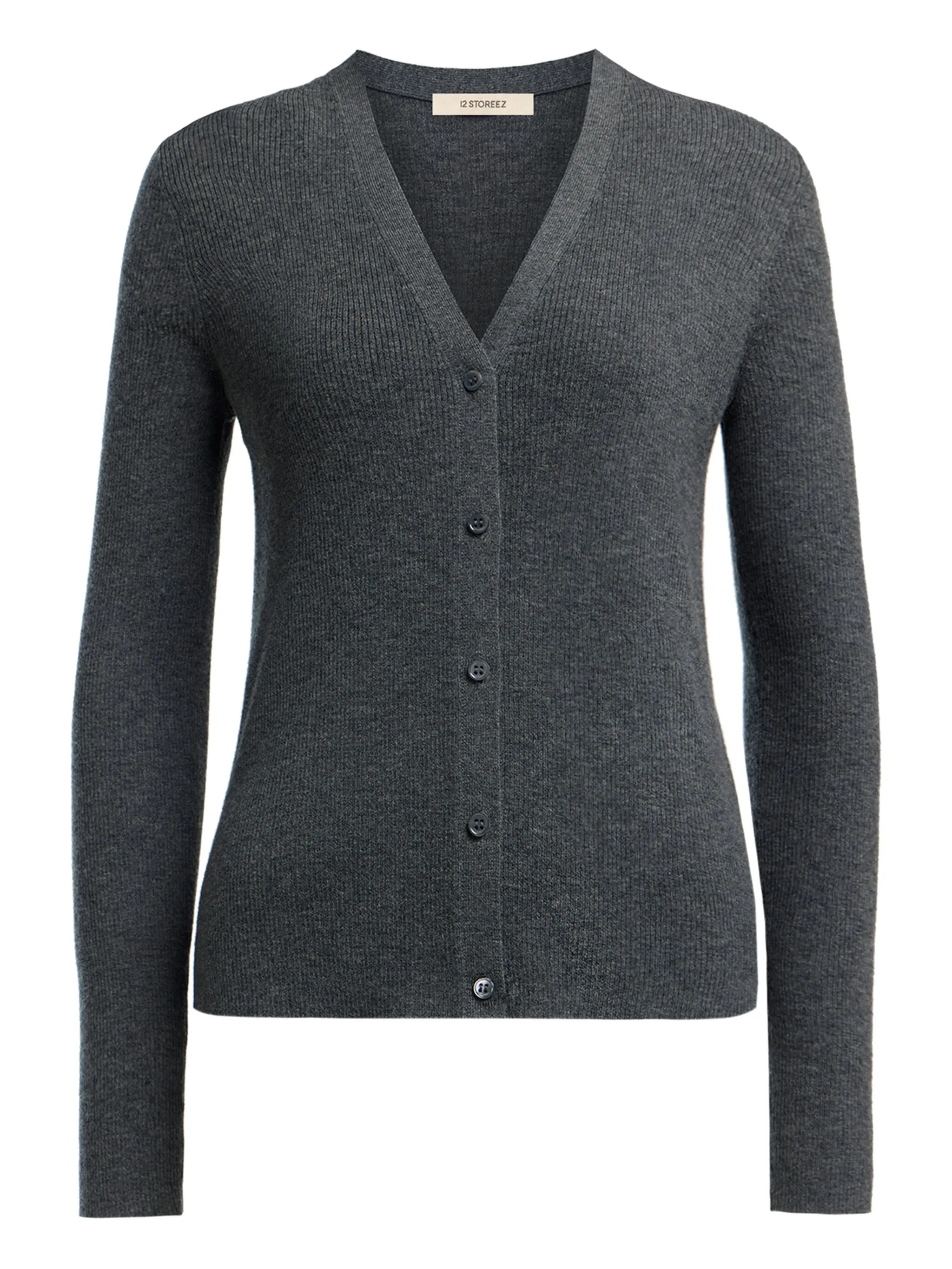 Кардиган в рубчик с V-образным вырезом 12 Storeez, серый